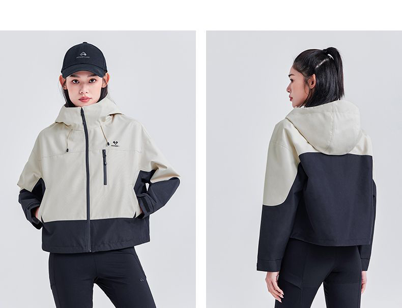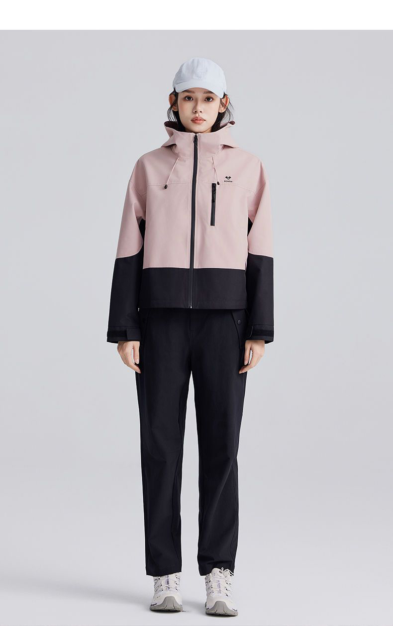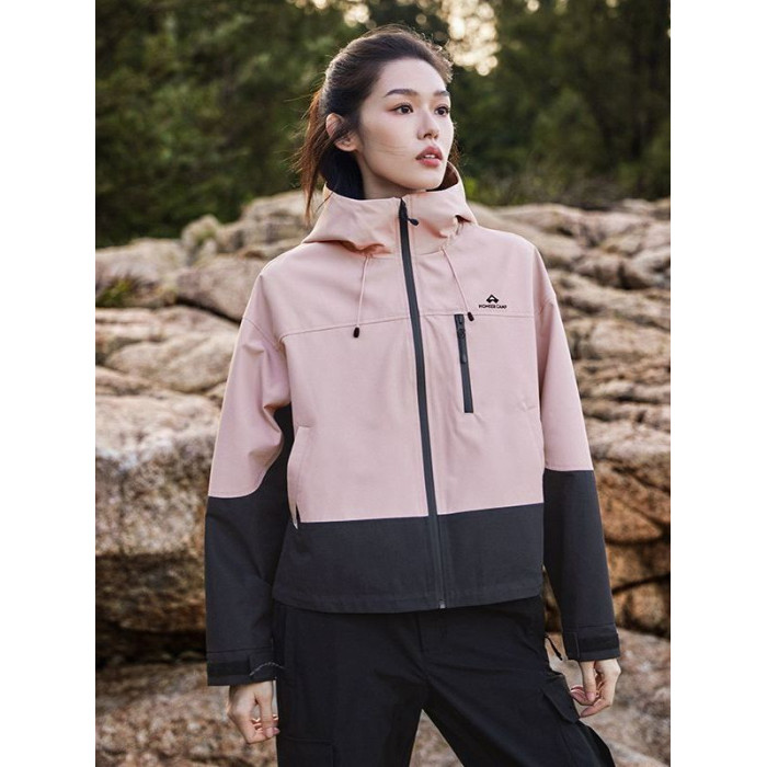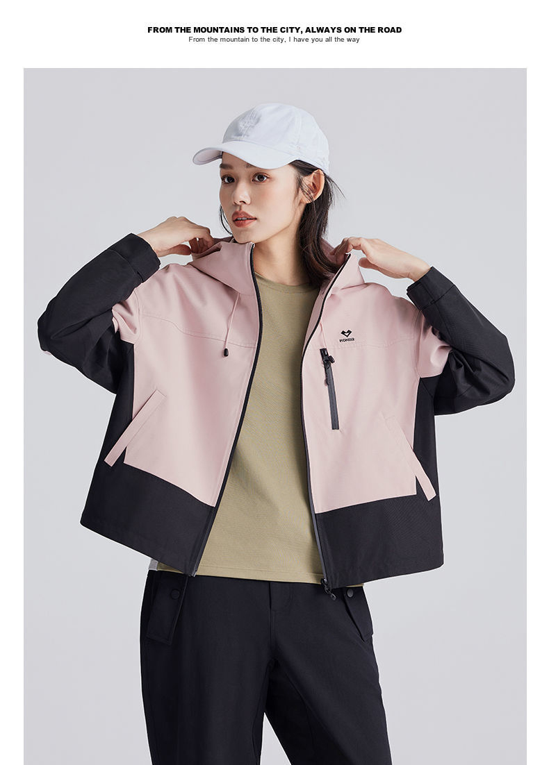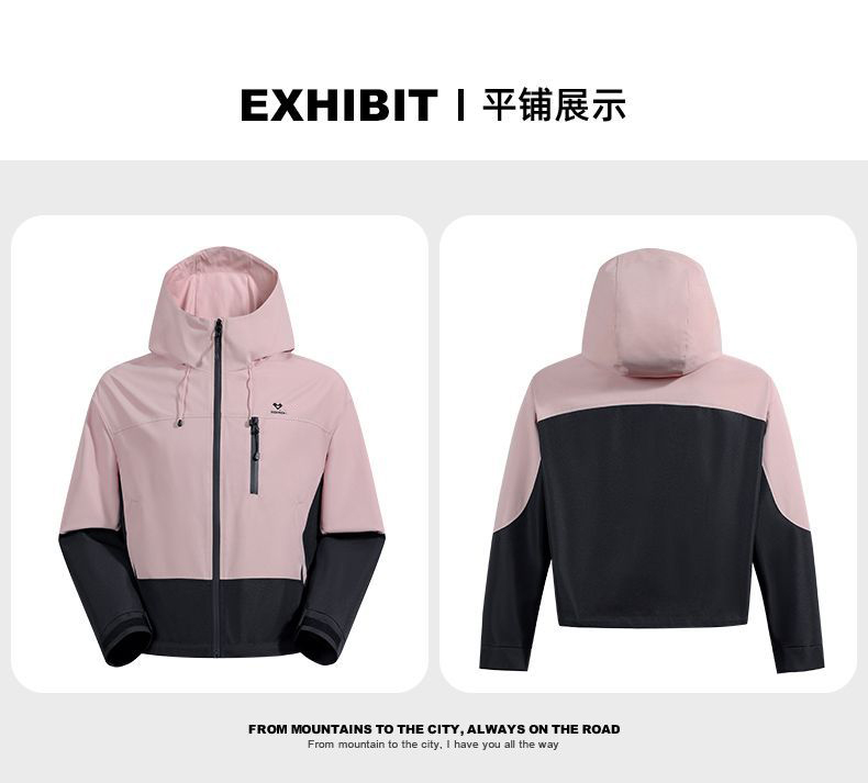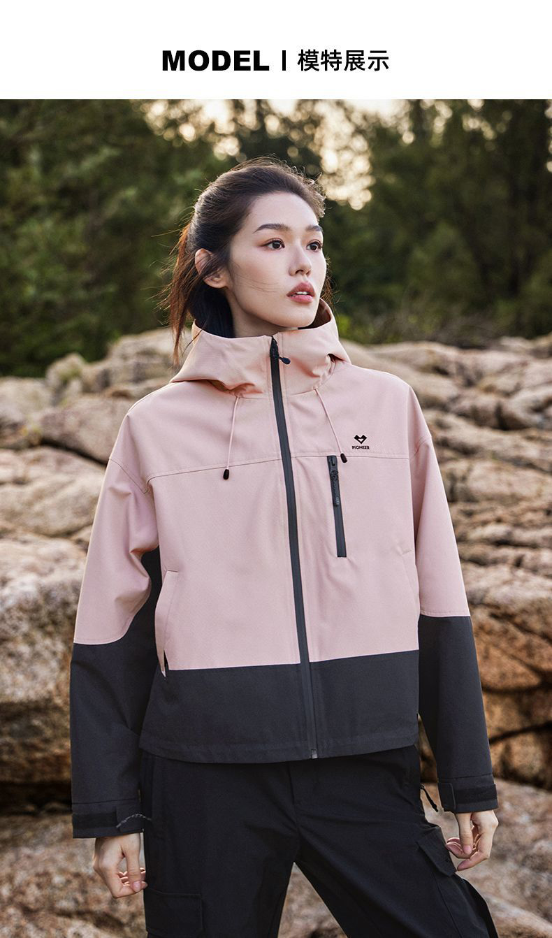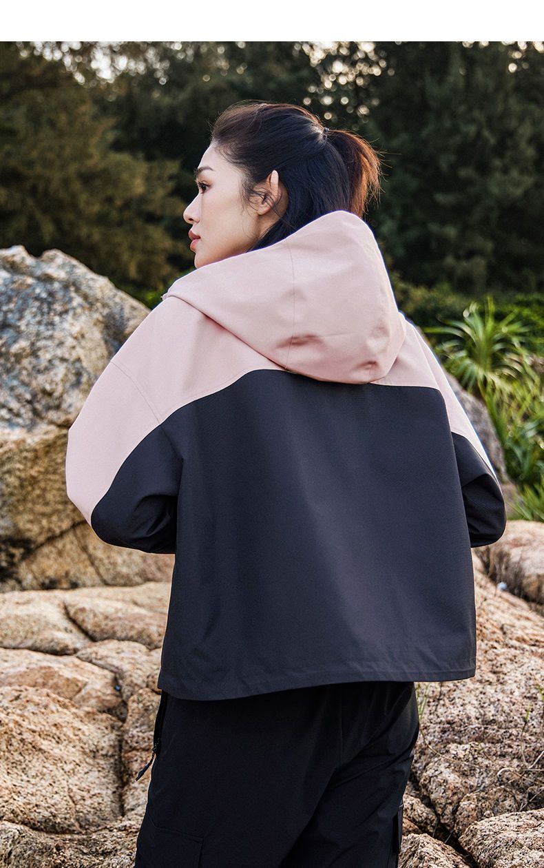 防潑水戶外沖鋒衣女款25年春季連帽徒步登山外套夾克修身運動撞色
