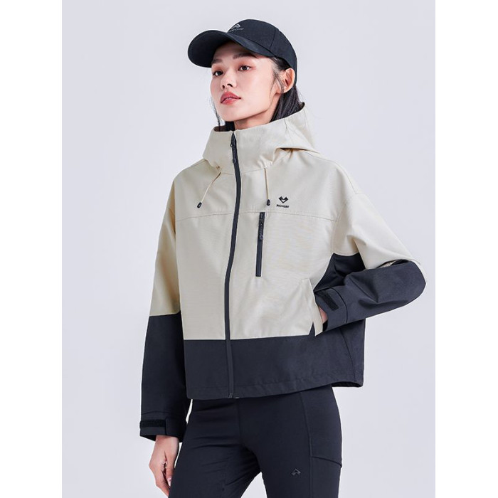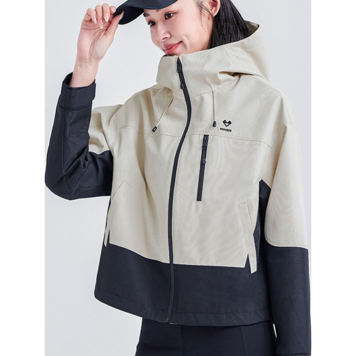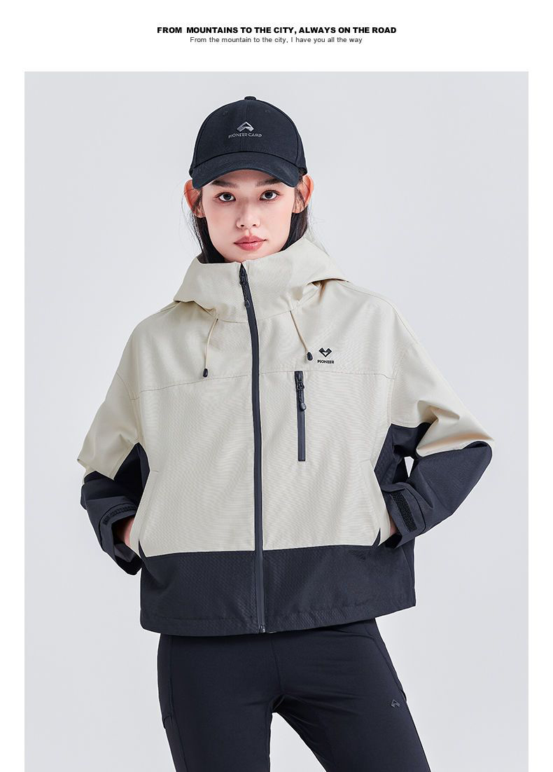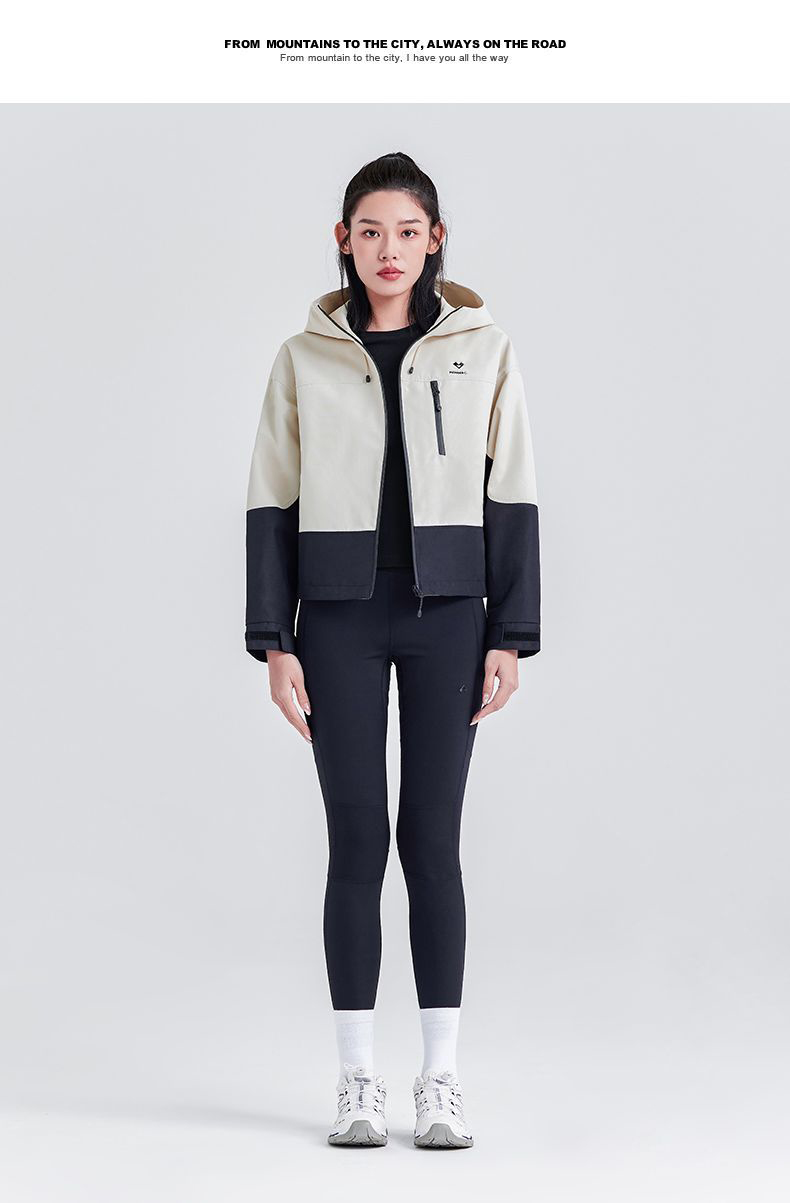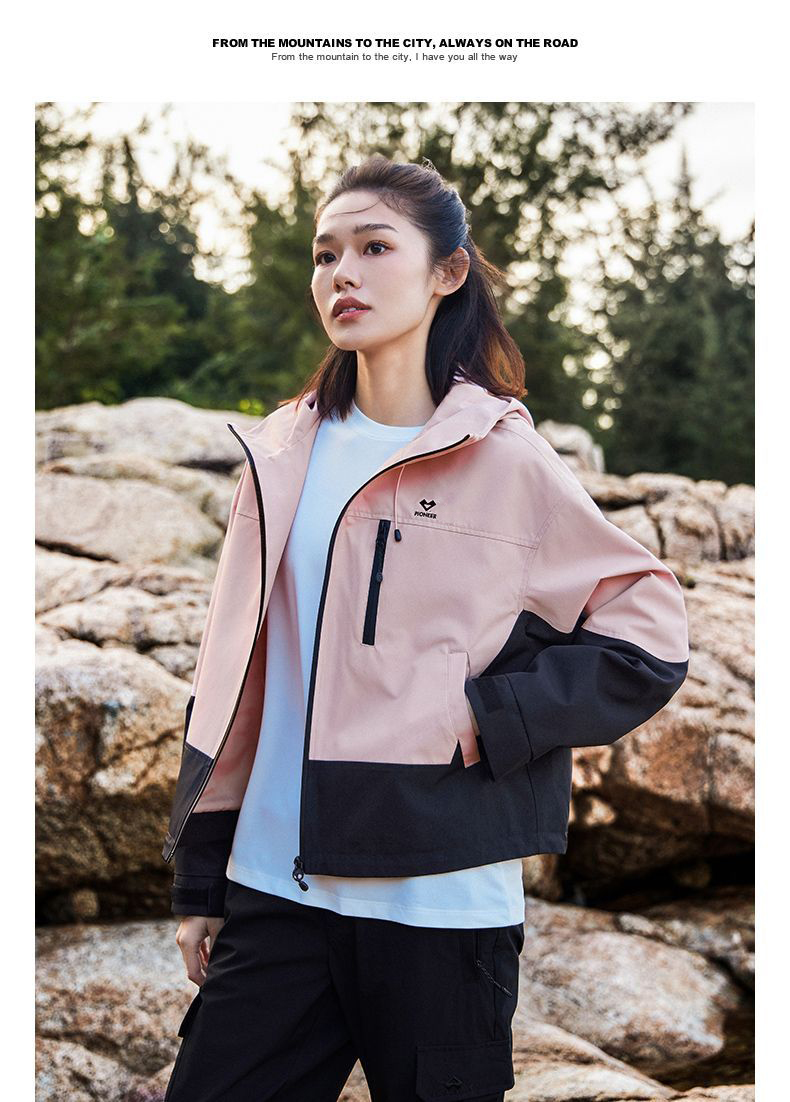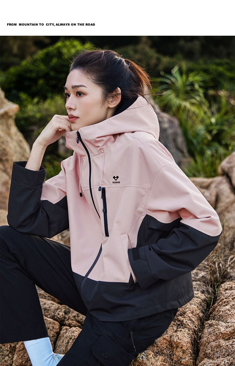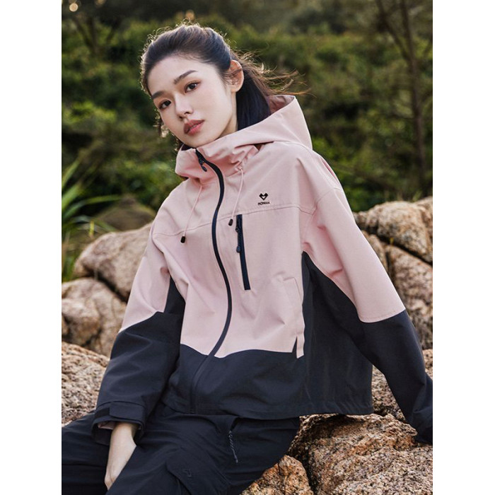 防潑水戶外沖鋒衣女款25年春季連帽徒步登山外套夾克修身運動撞色