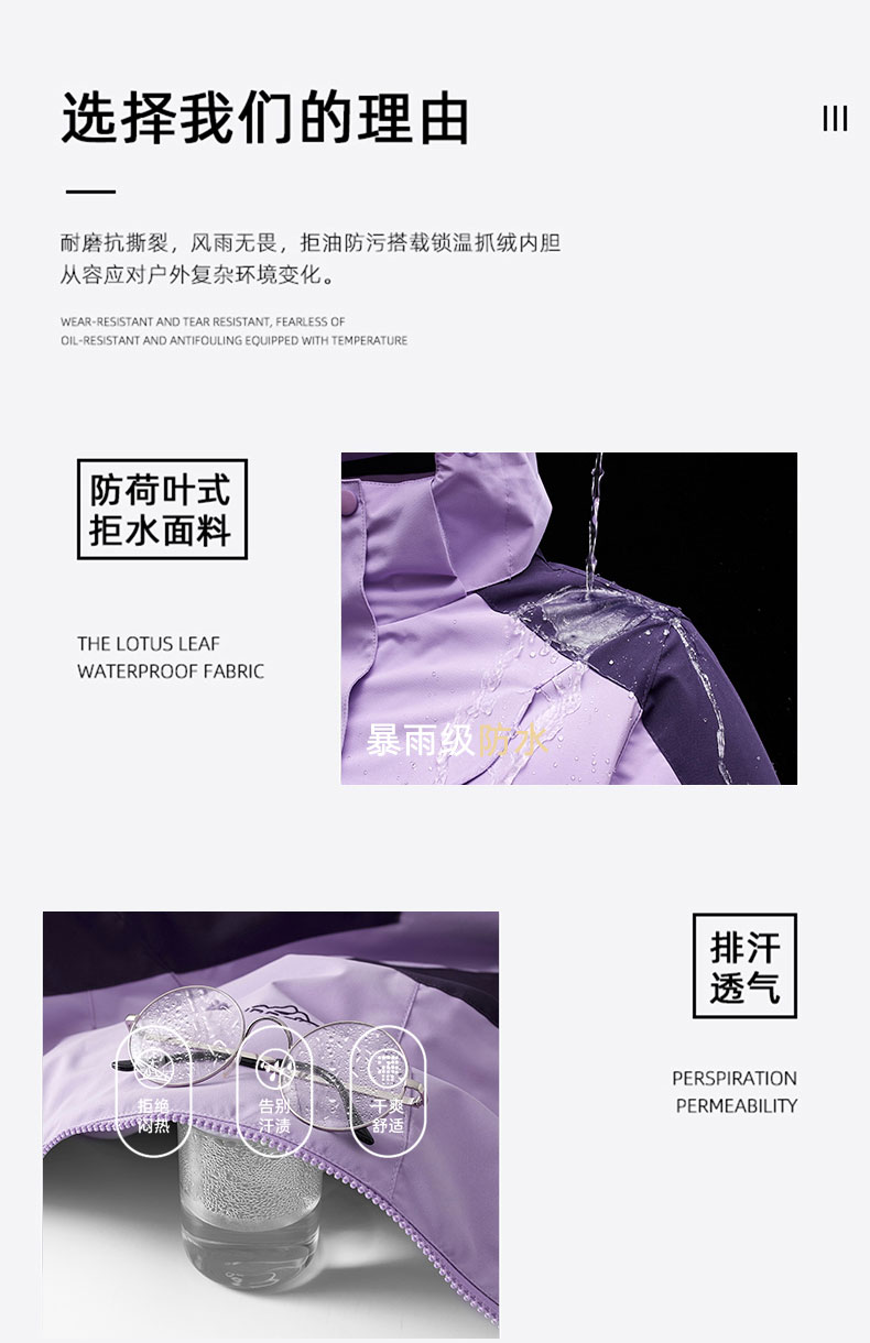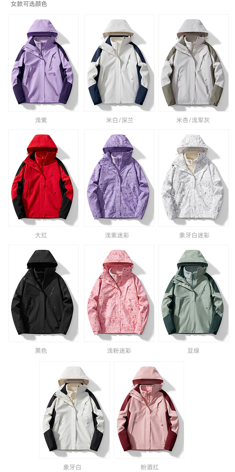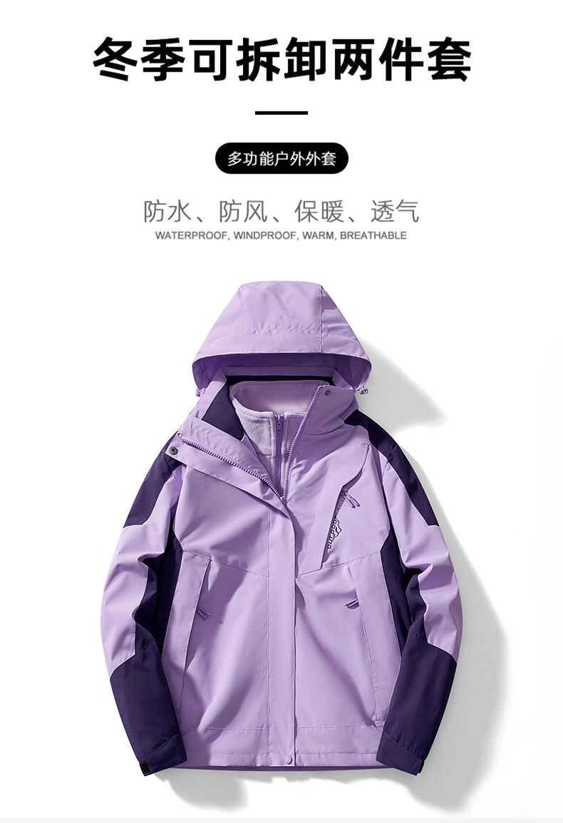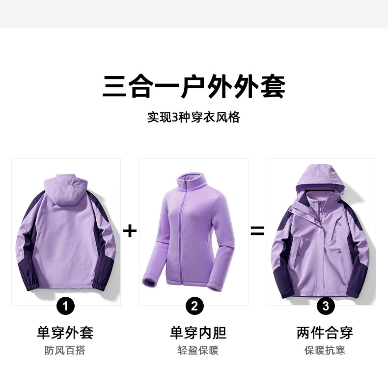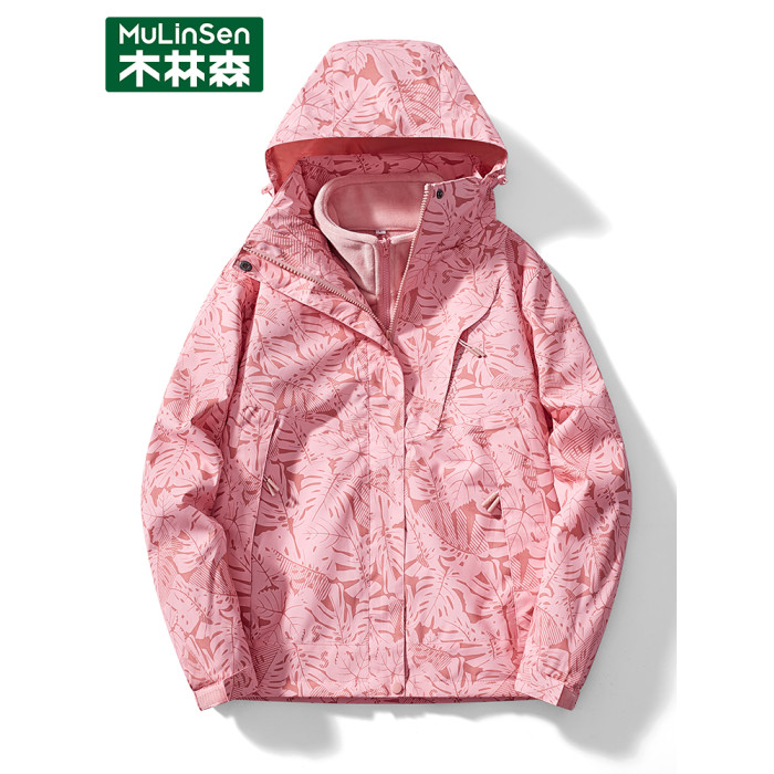 木林森戶外迷彩沖鋒衣女士2025新款三合一兩件套防風防水保暖外套