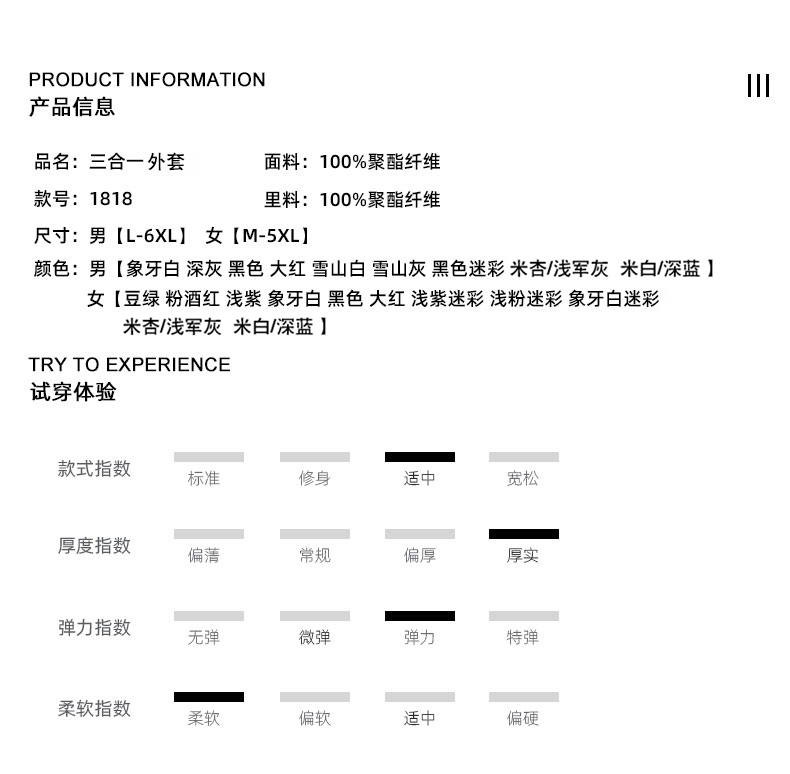 款式及尺寸: