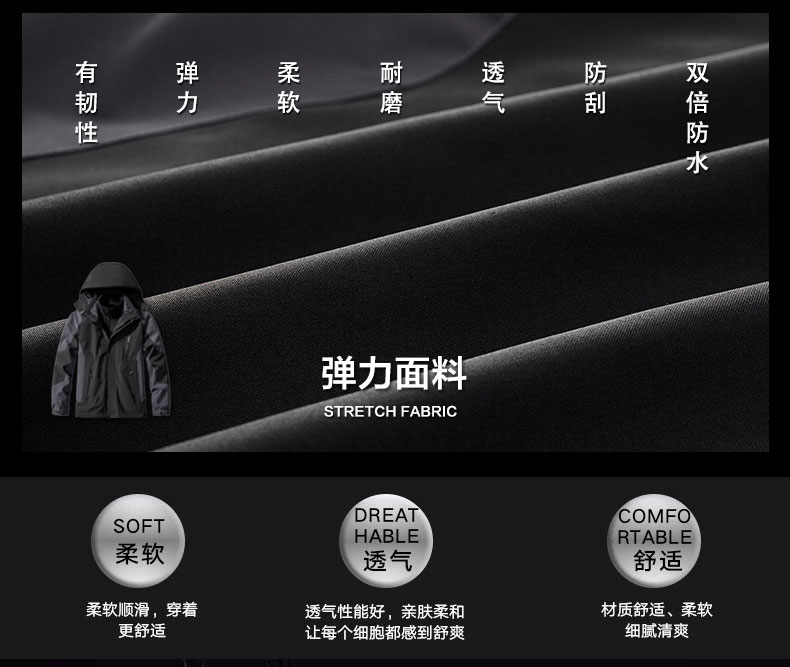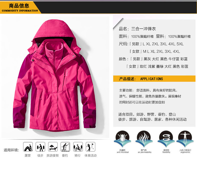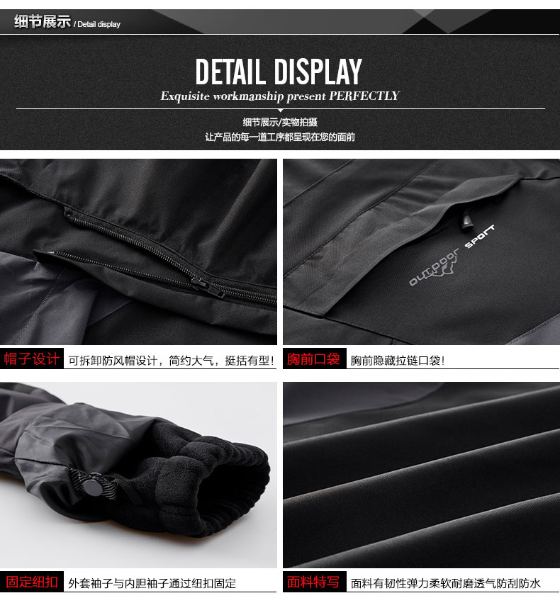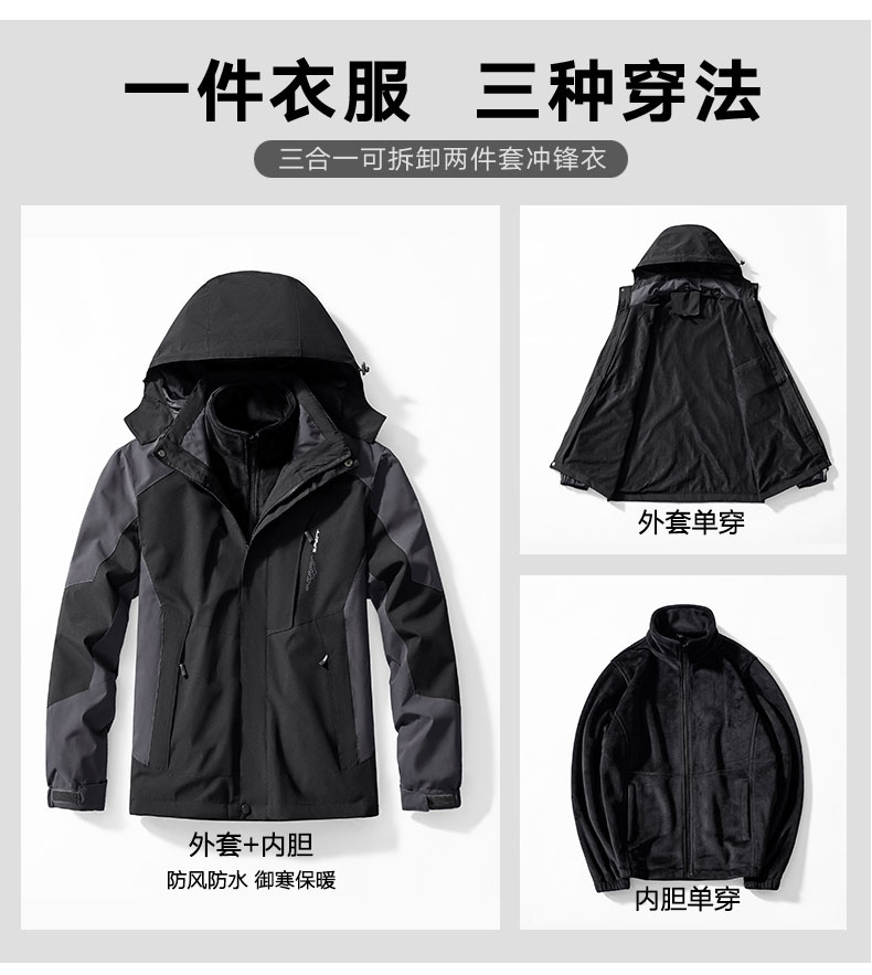 NASA戶外秋冬季三合一防風防水防潮男女同款情侶沖鋒衣上衣外套