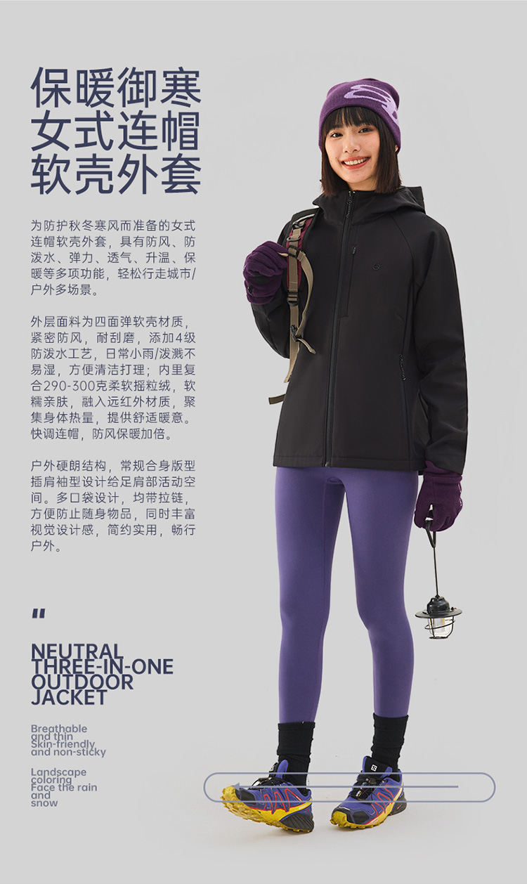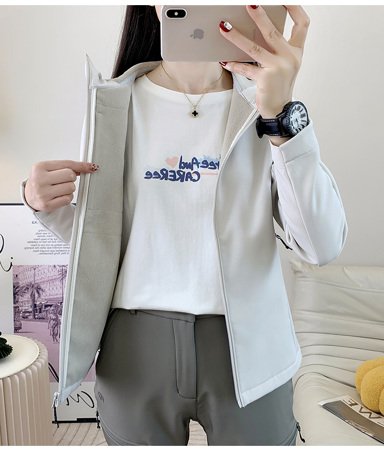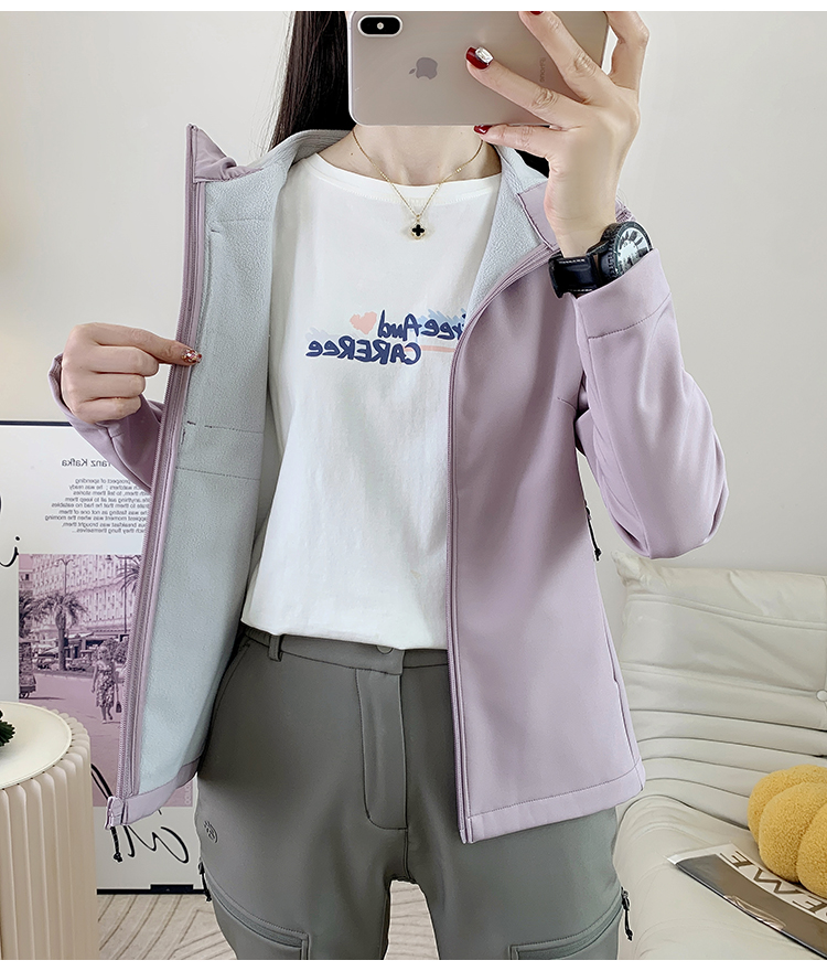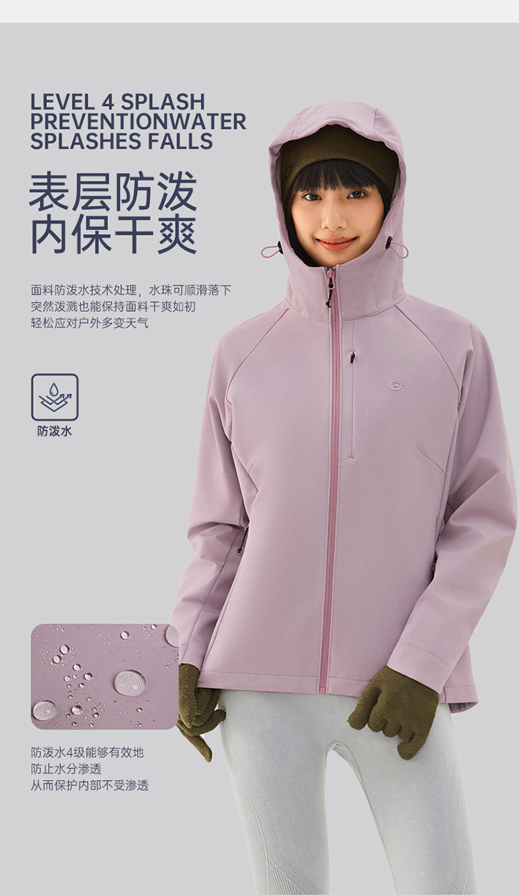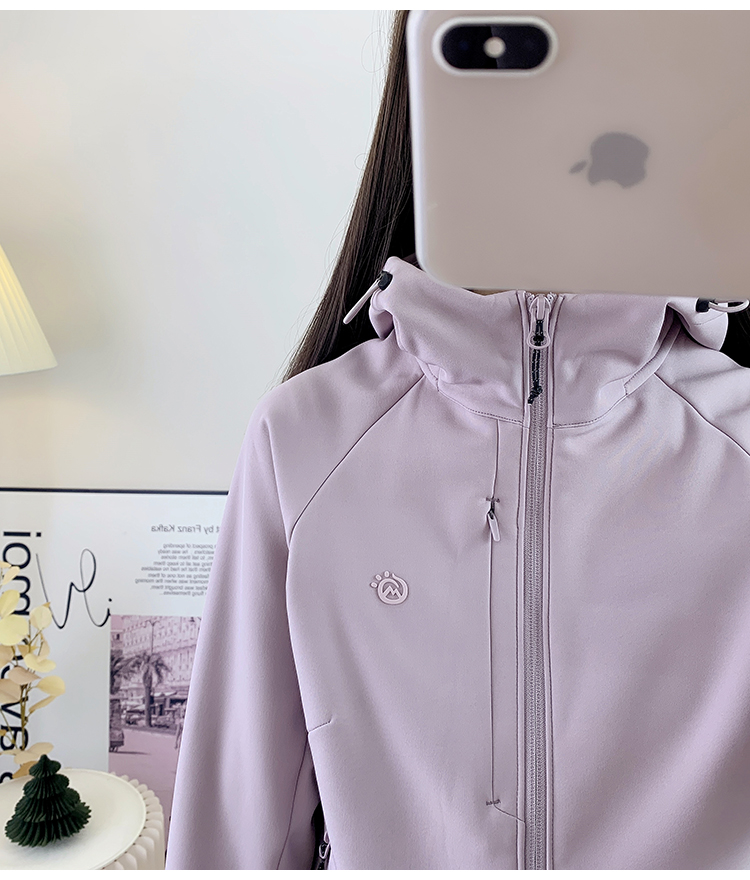 2025新款薄絨軟殼衣沖鋒衣女款戶外防風防水登山服外套連帽上衣