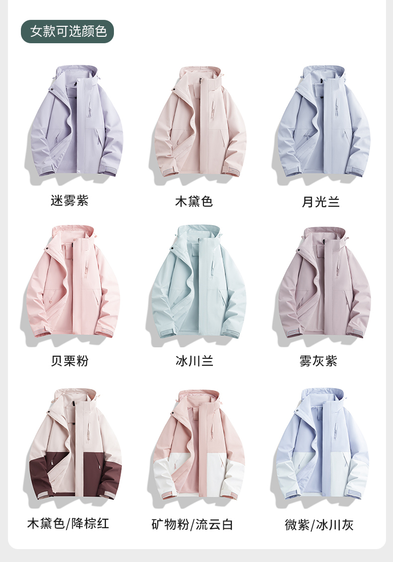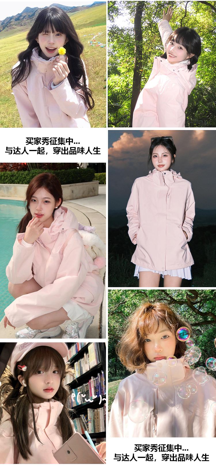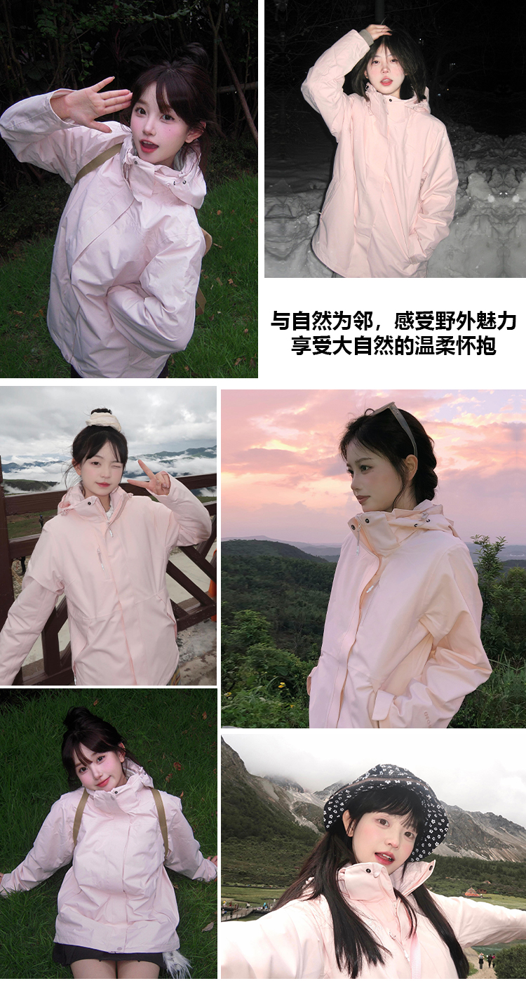蕉下客沖鋒衣女2025新款三合一戶外運動防風防水小個子粉色春秋登
