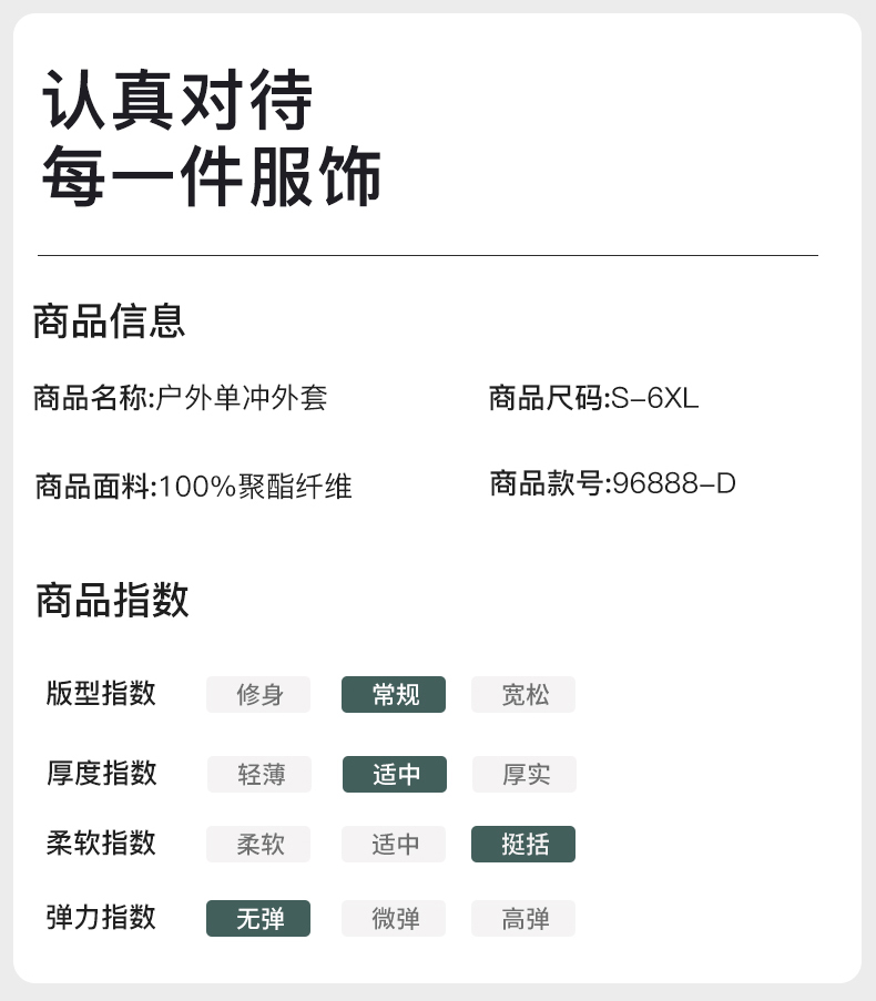 | 款式 | 單層沖鋒衣(3層壓膠夾克)) |
