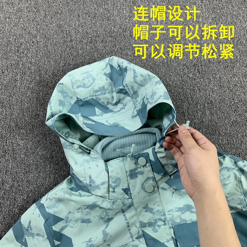 【兩件套抓絨內膽】防風防水女迷彩沖鋒衣保暖冬季三合一外套上衣