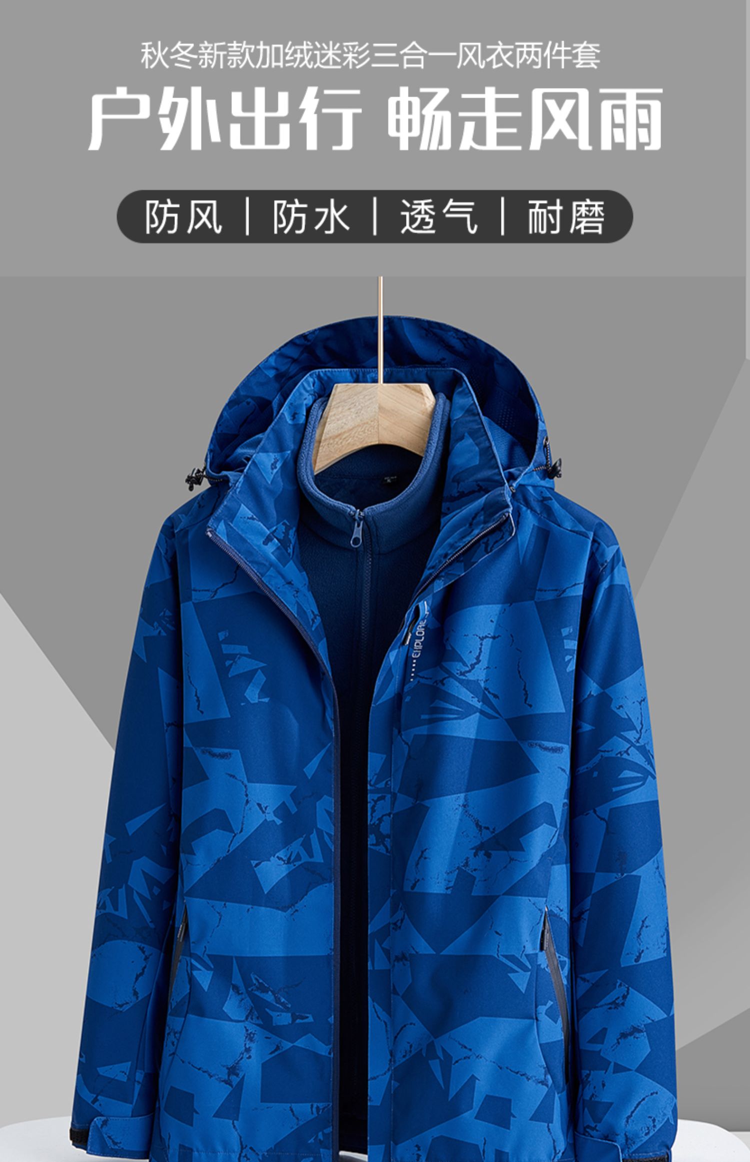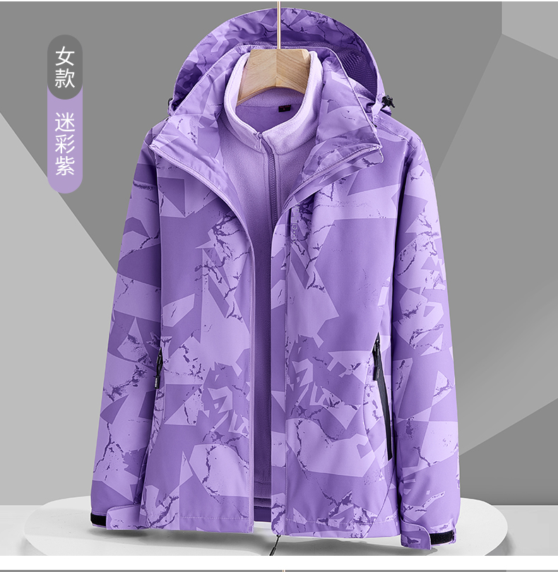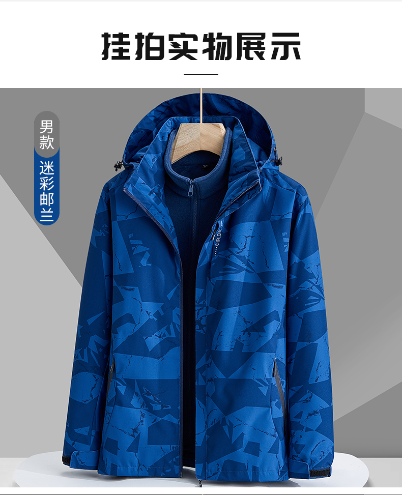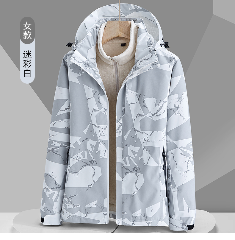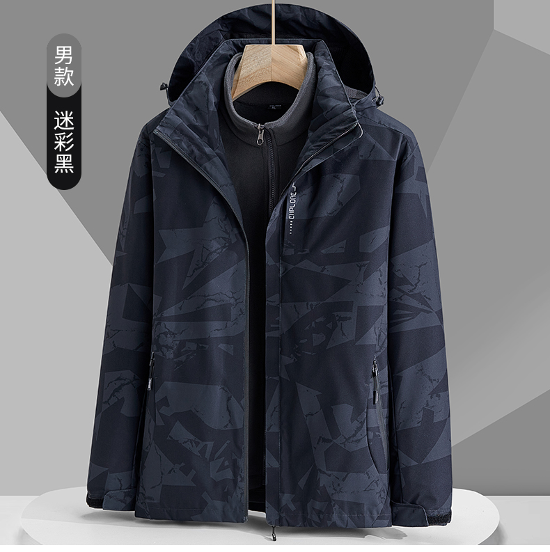 冬迷彩三合一沖鋒衣男女兩件套可拆卸內膽加厚加絨登山服防風防水