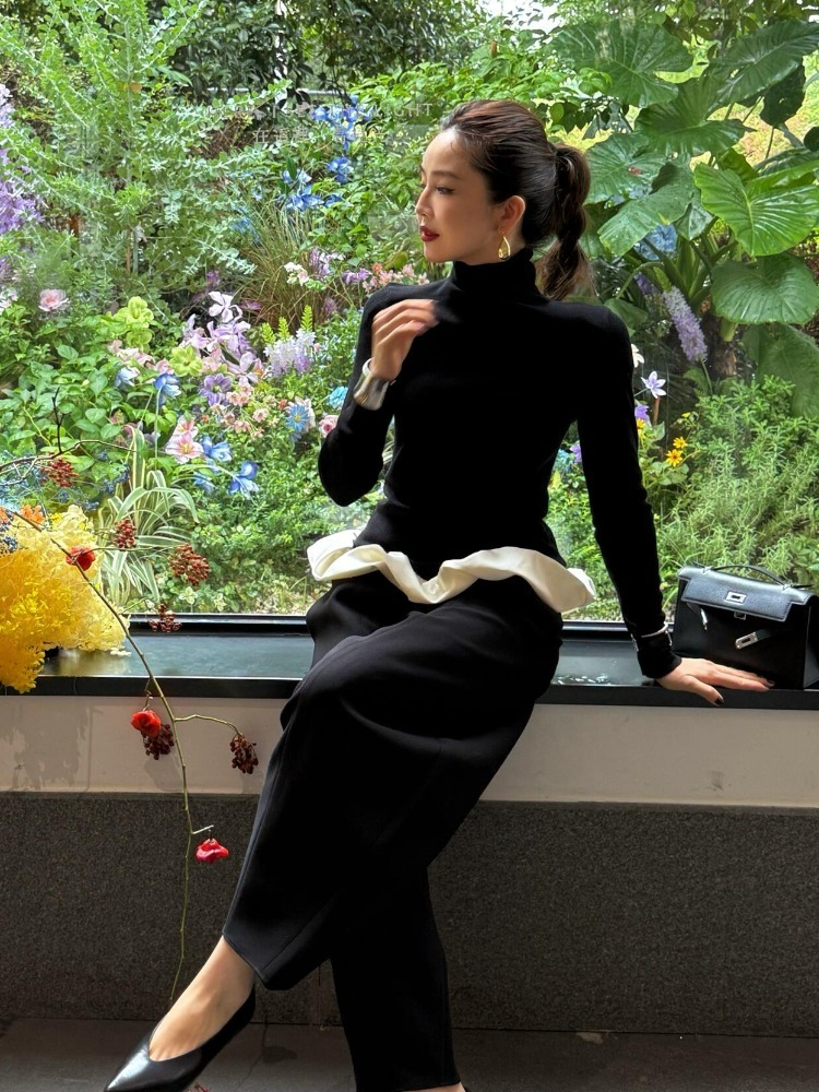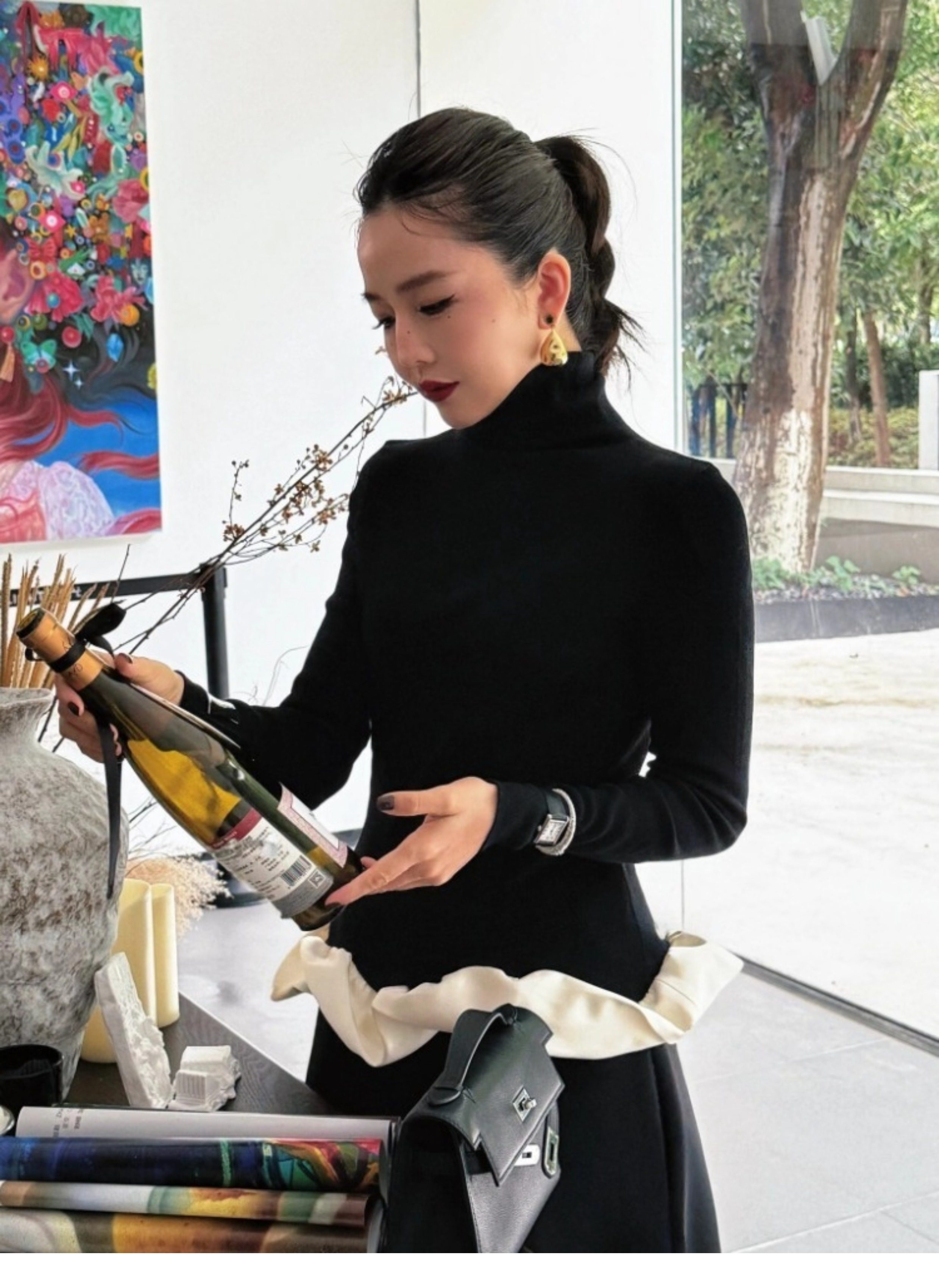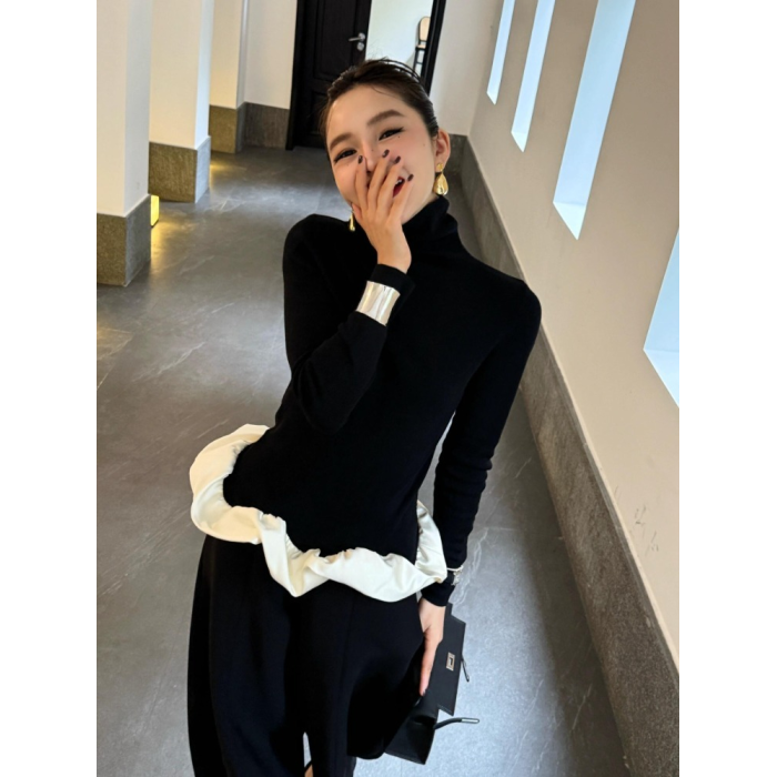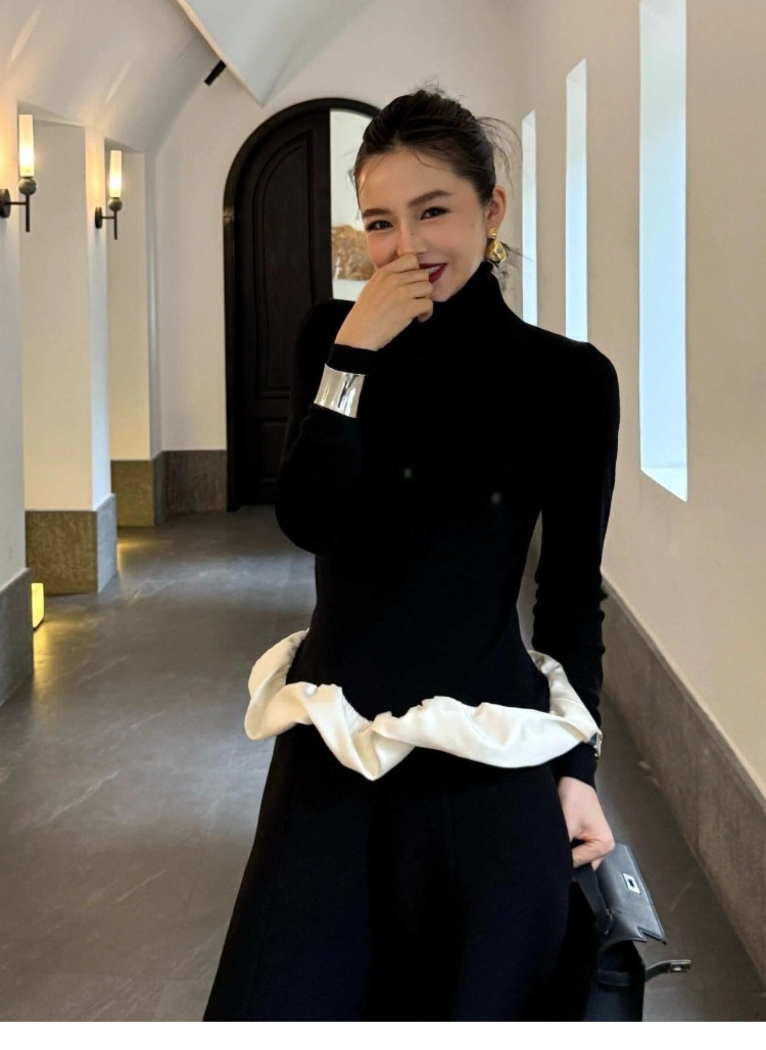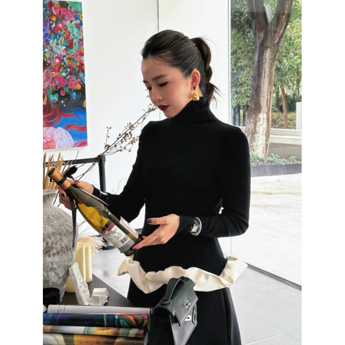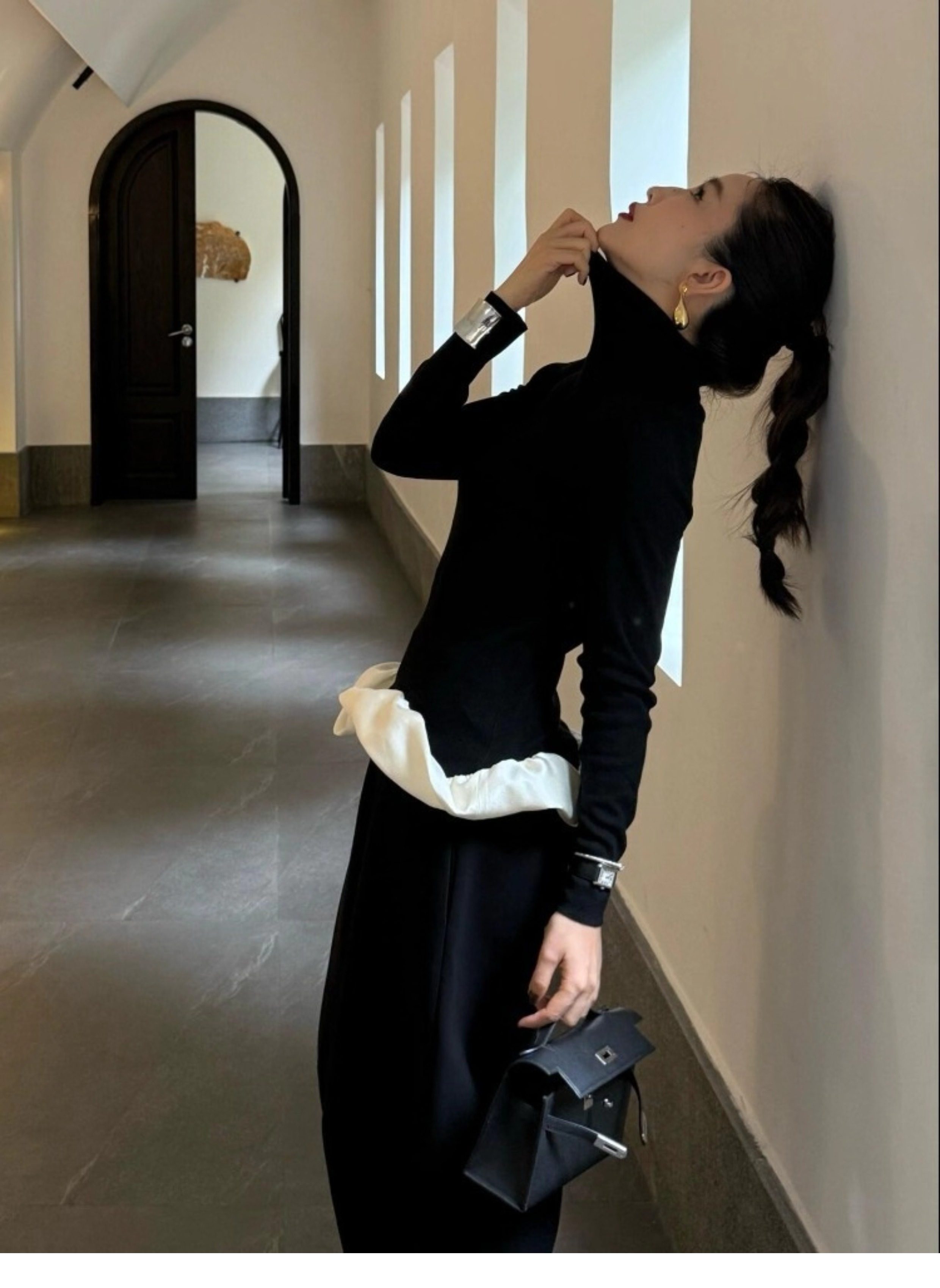 黑色針織上衣女秋冬小衆不撞款高級小香風巨好看輕熟氣質掐腰毛衣