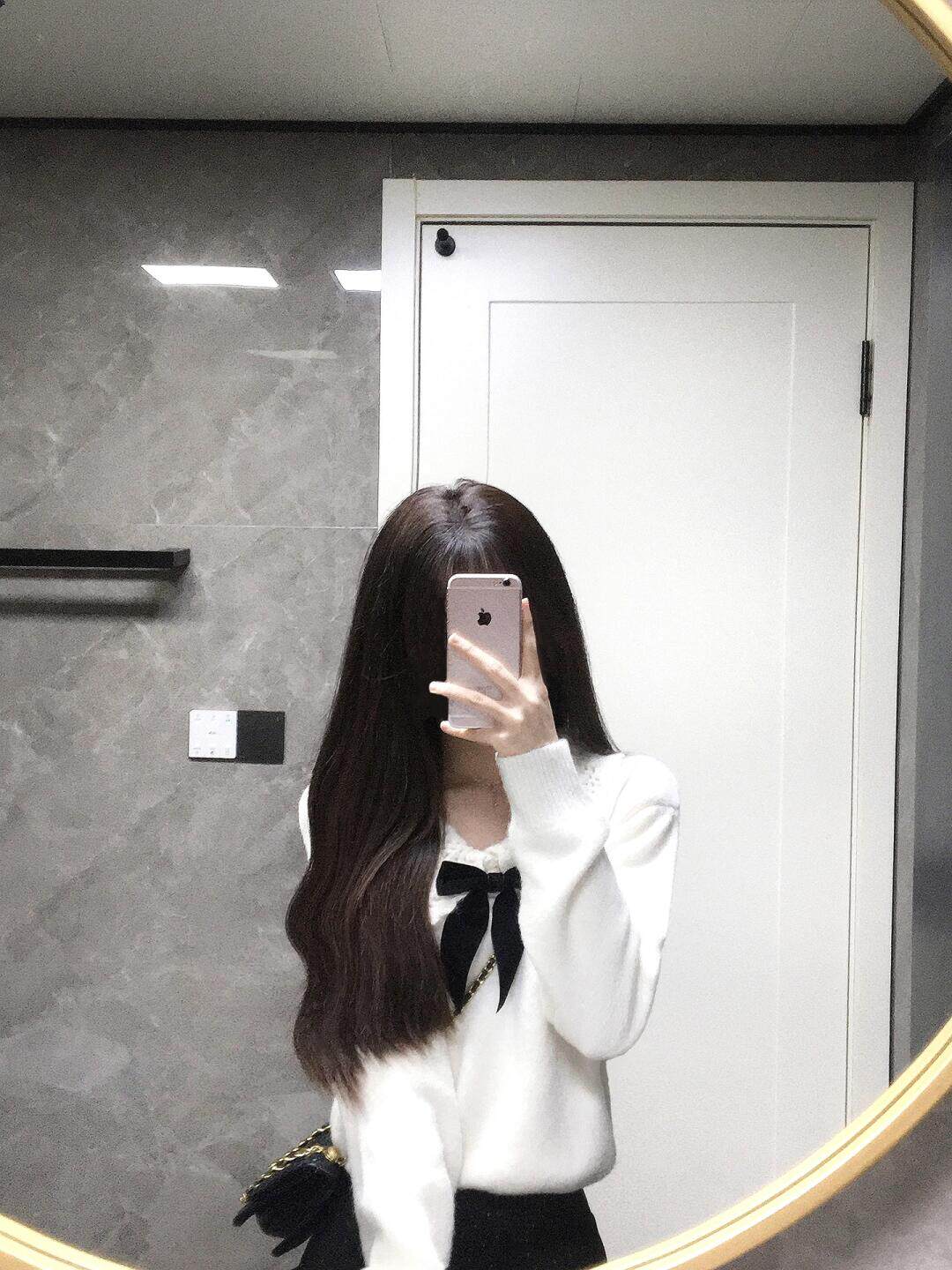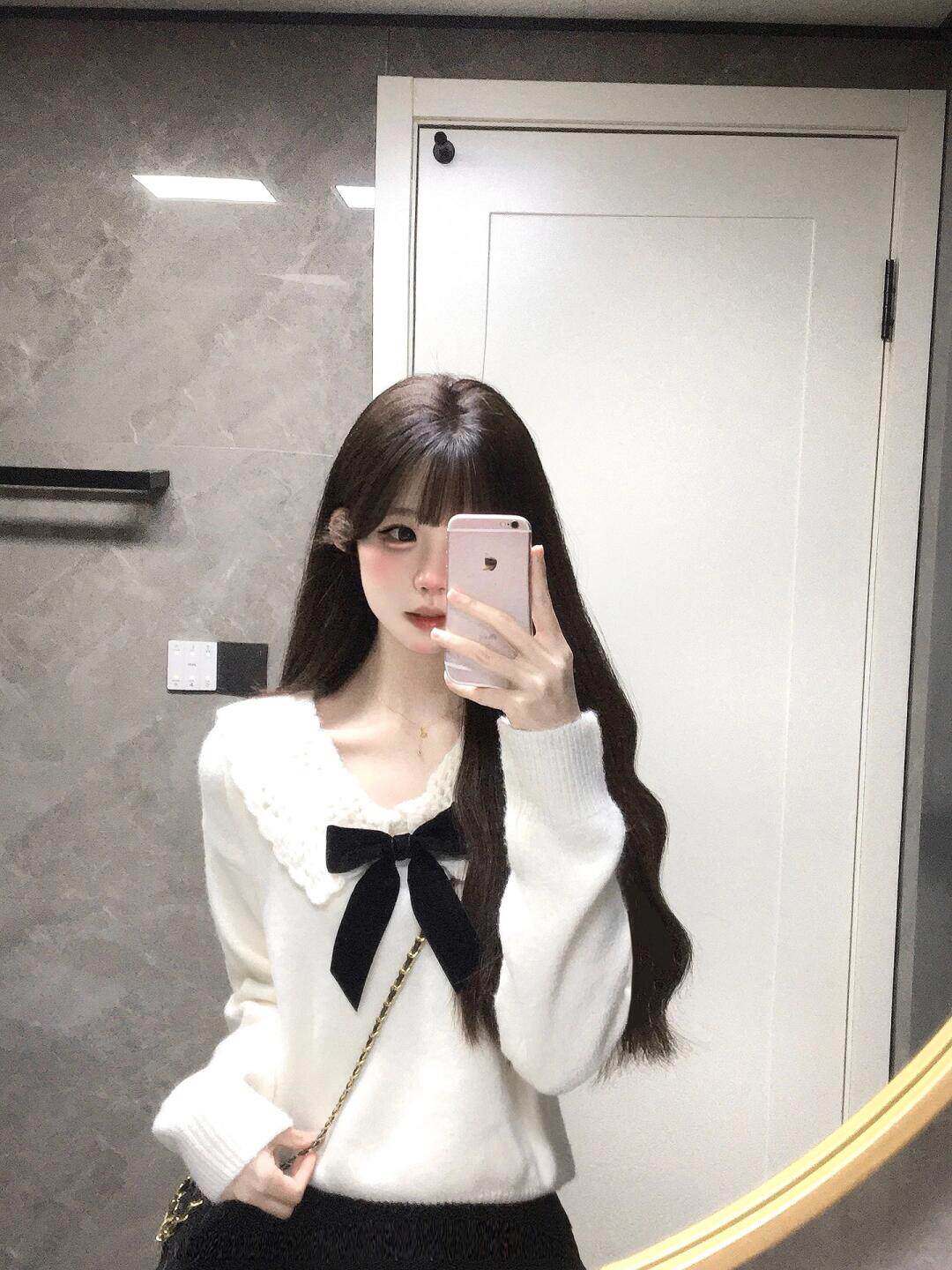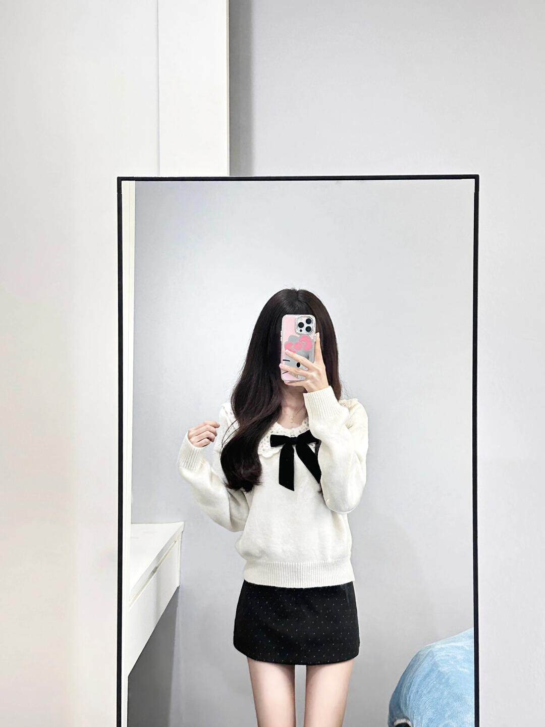 白色溫柔蝴蝶結娃娃領針織衫毛衣女秋冬軟糯寬松減齡設計感上衣