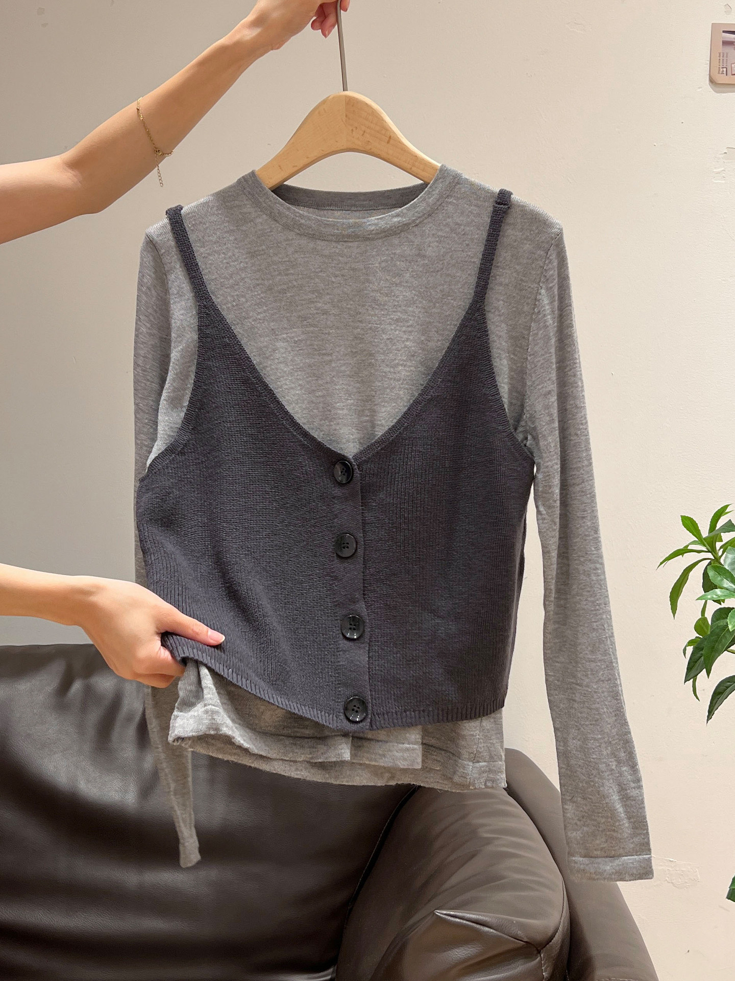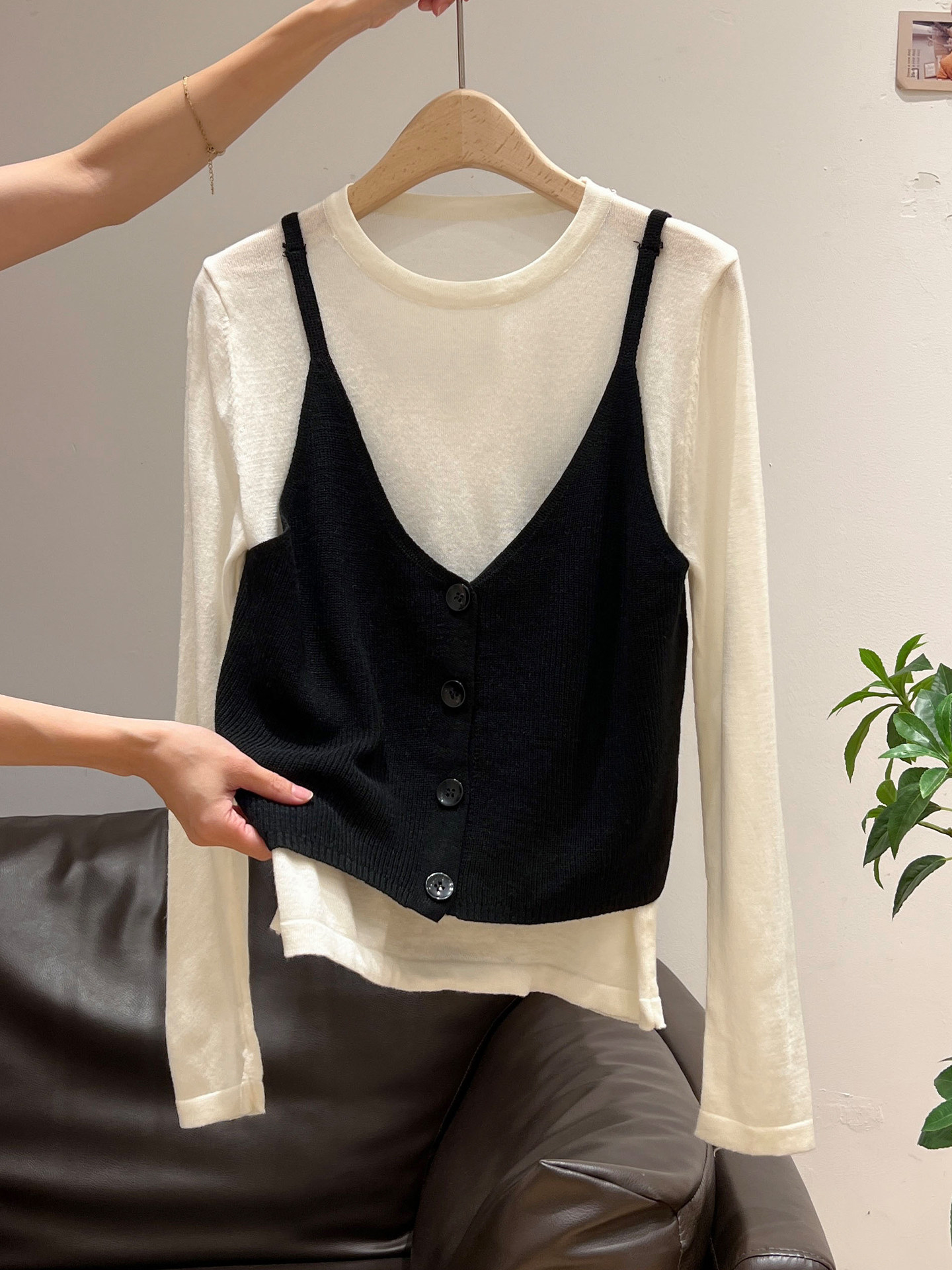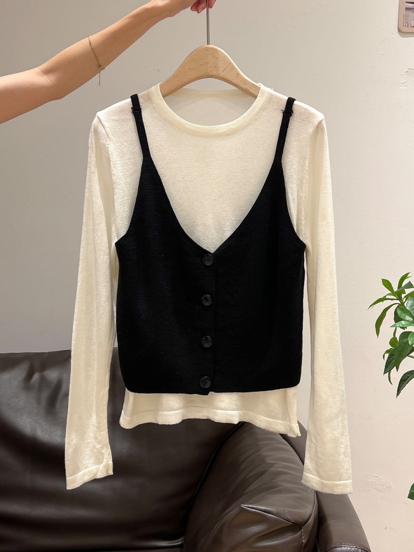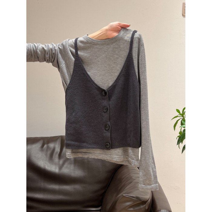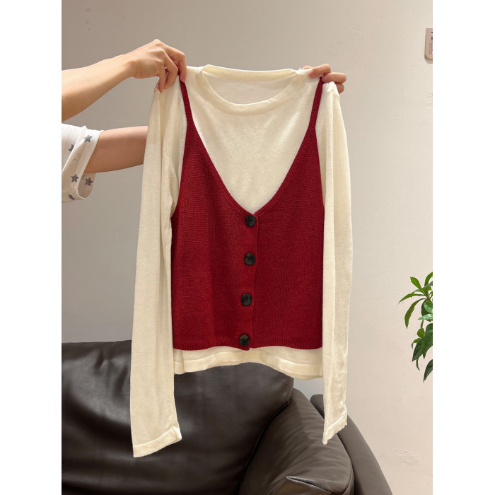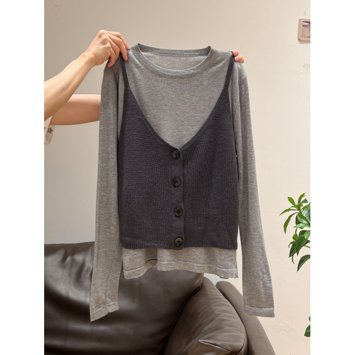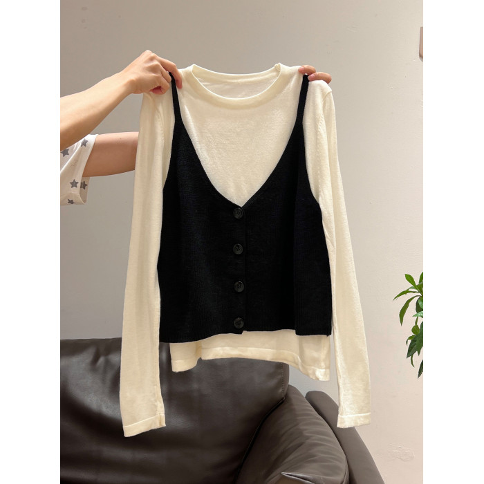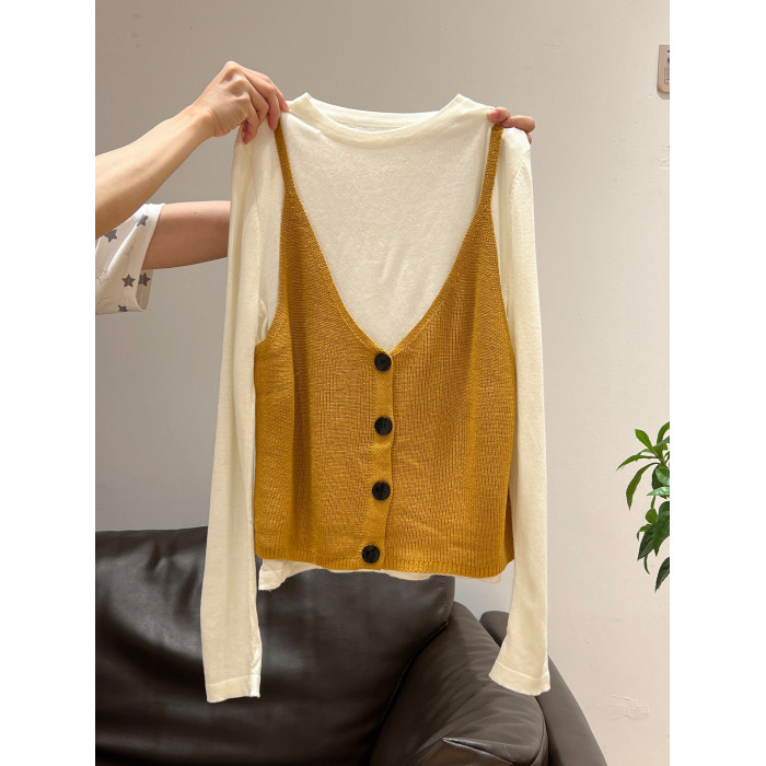 秋季穿搭兩件套長袖T恤女內搭2025年新款開衫外搭吊帶背心女上衣
