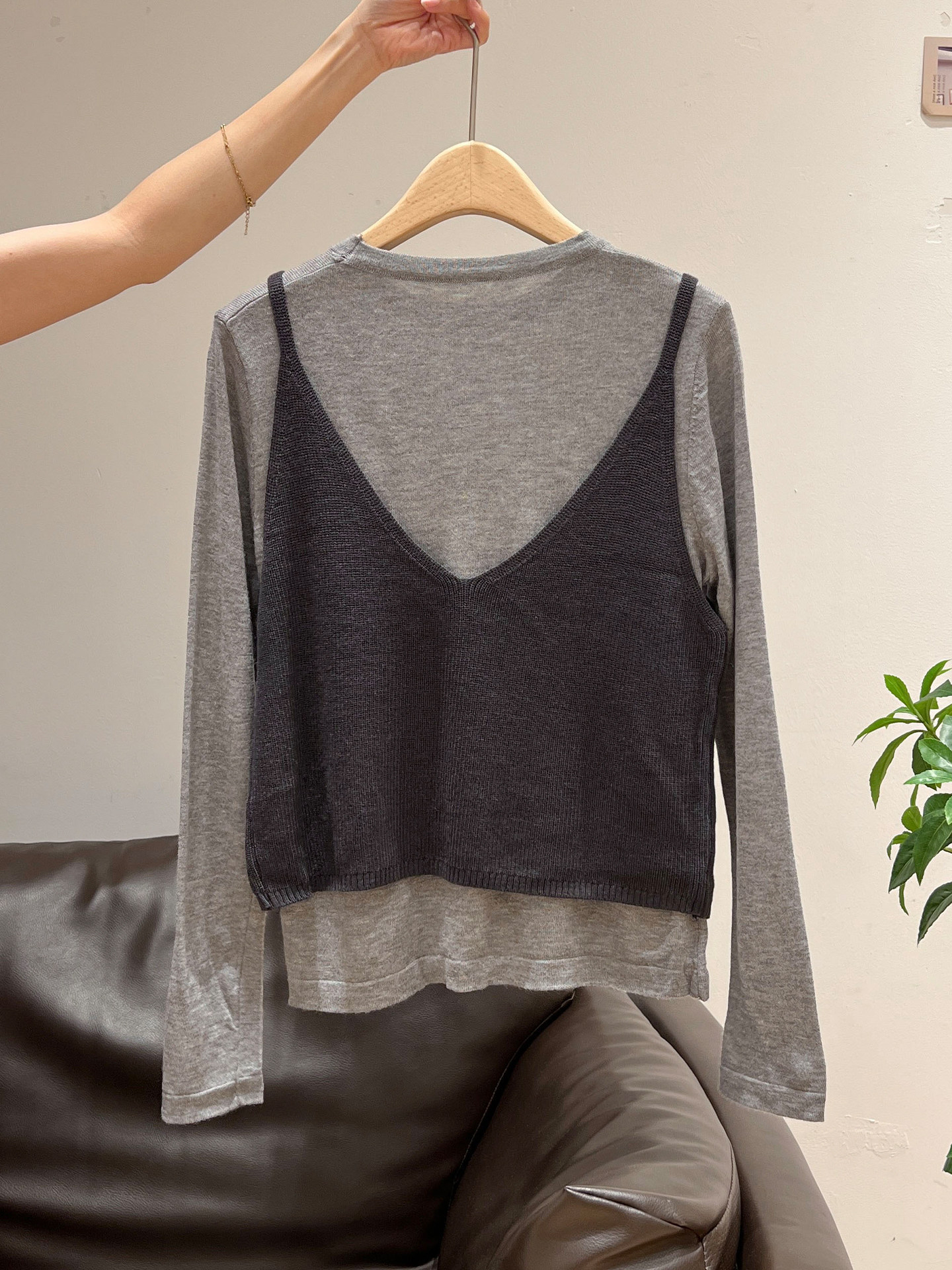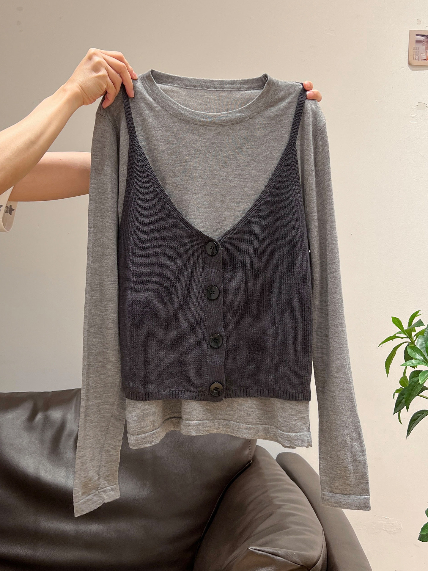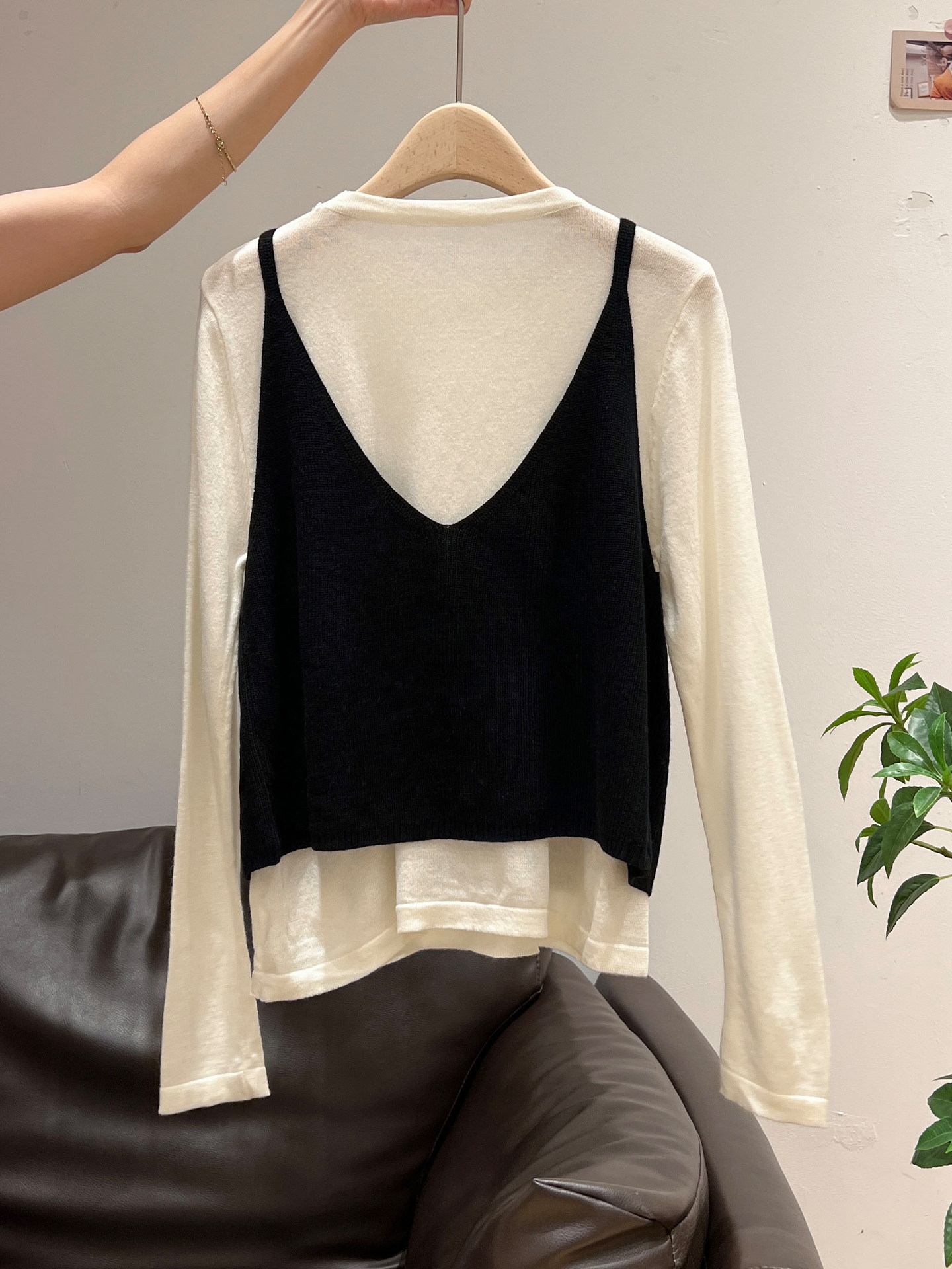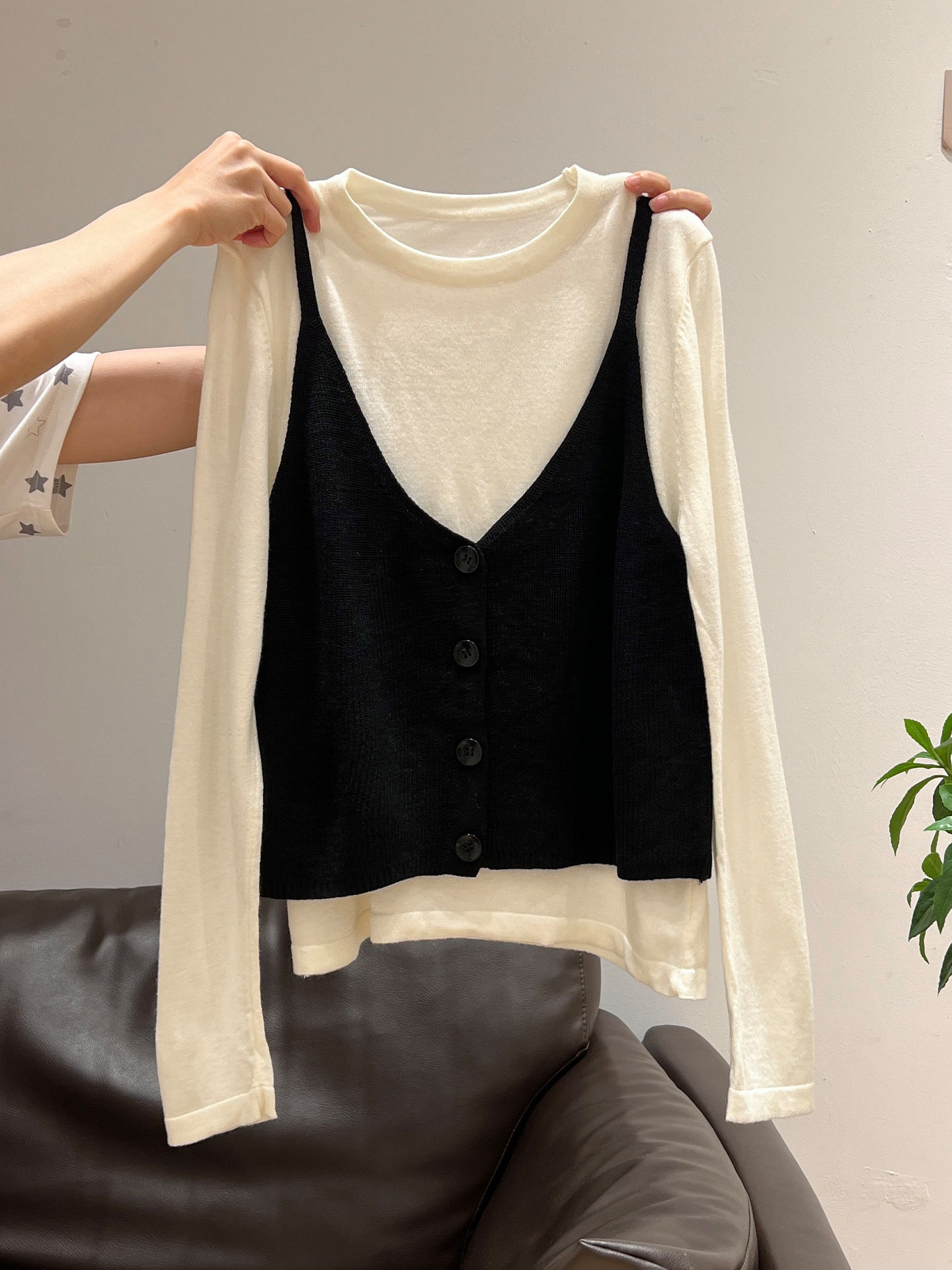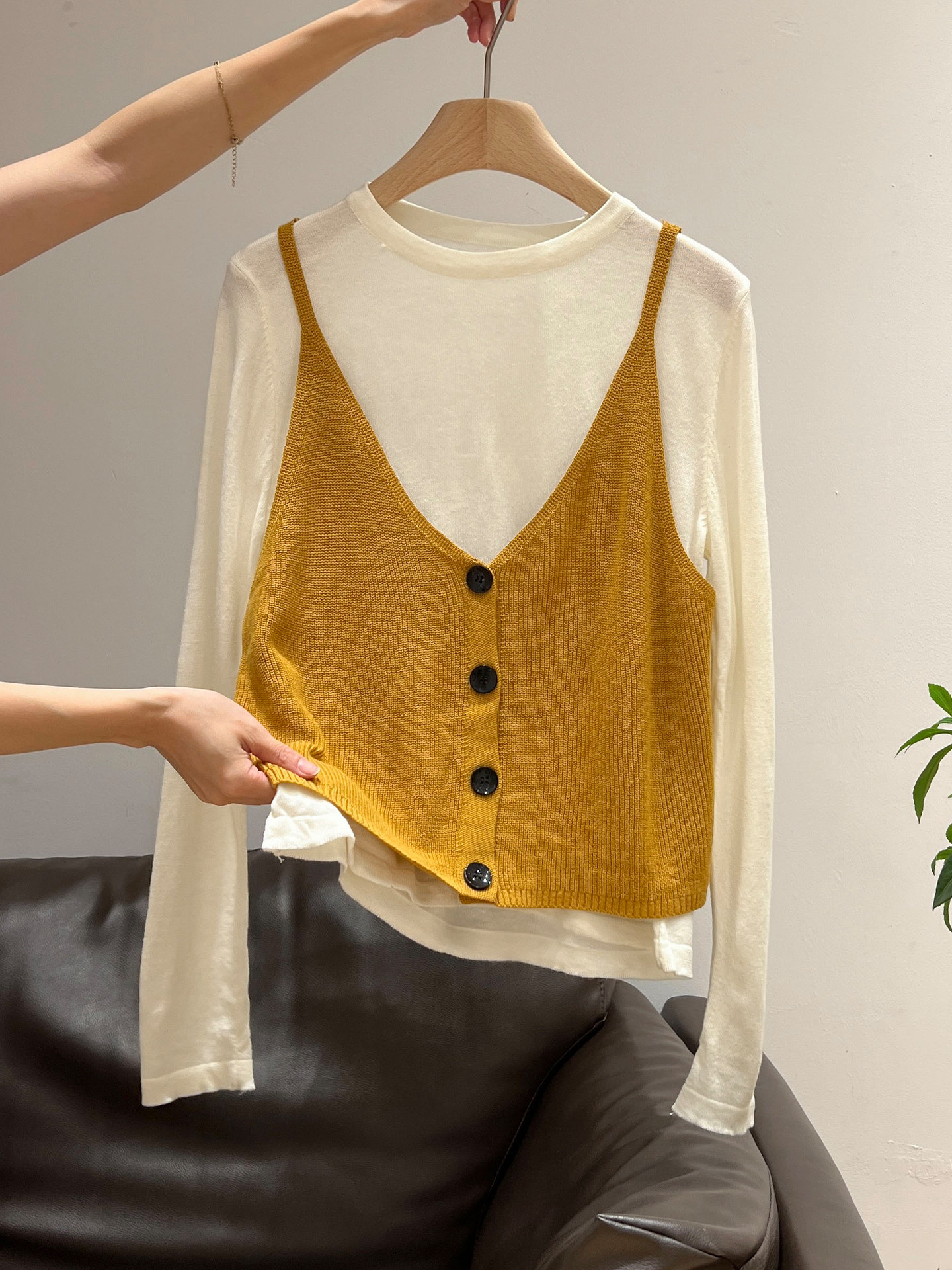 秋季穿搭兩件套長袖T恤女內搭2025年新款開衫外搭吊帶背心女上衣