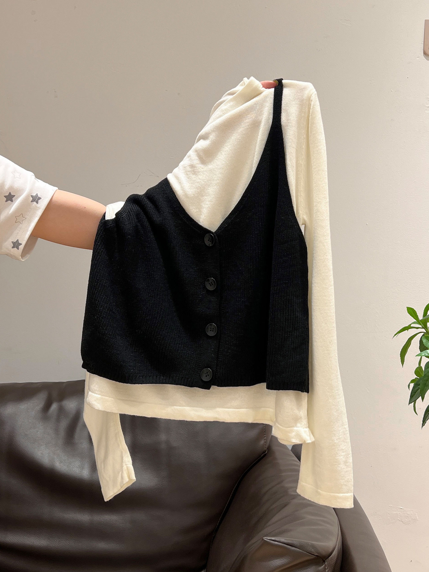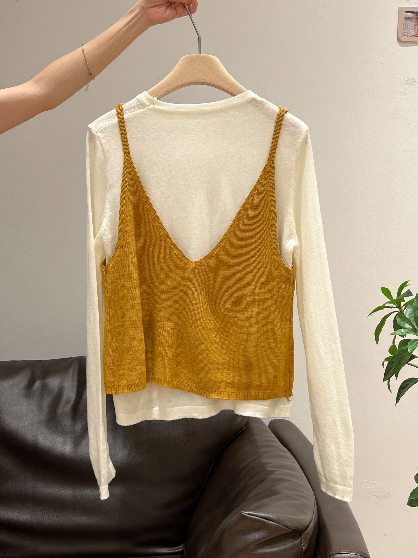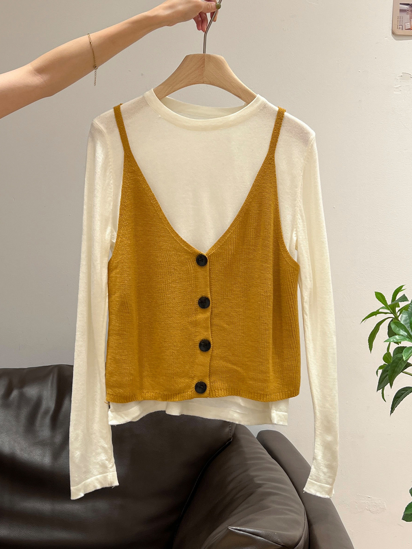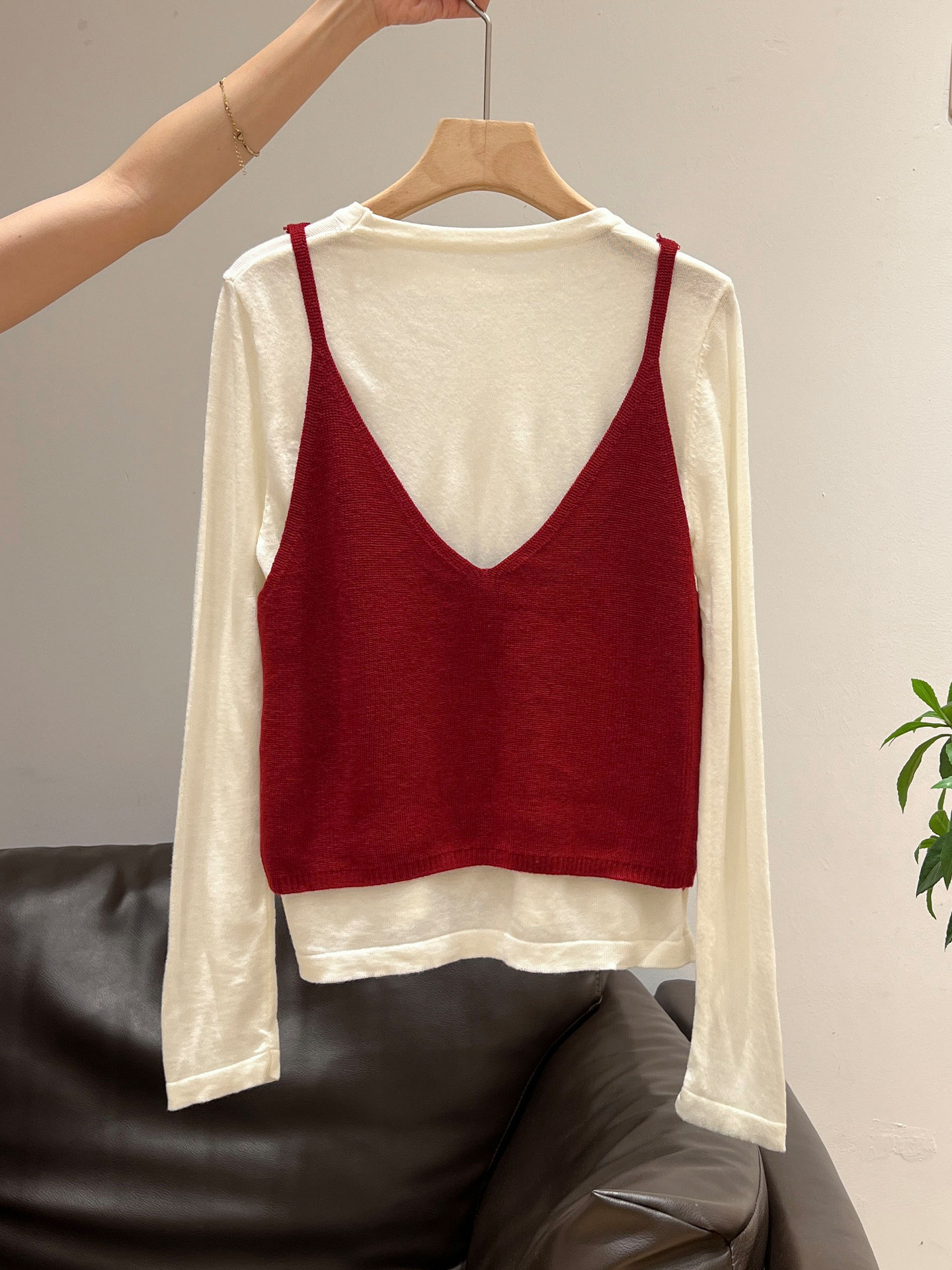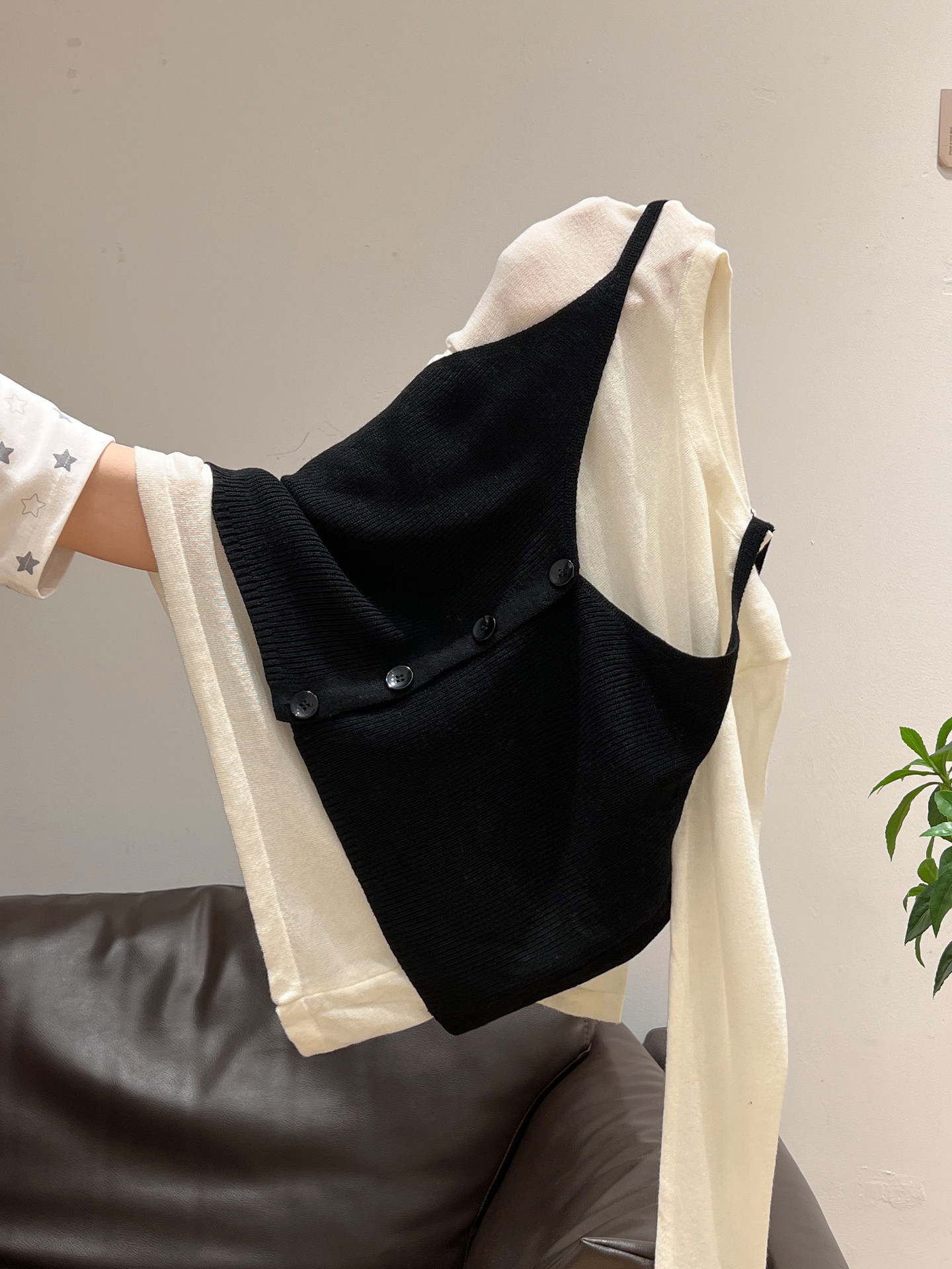 秋季穿搭兩件套長袖T恤女內搭2025年新款開衫外搭吊帶背心女上衣