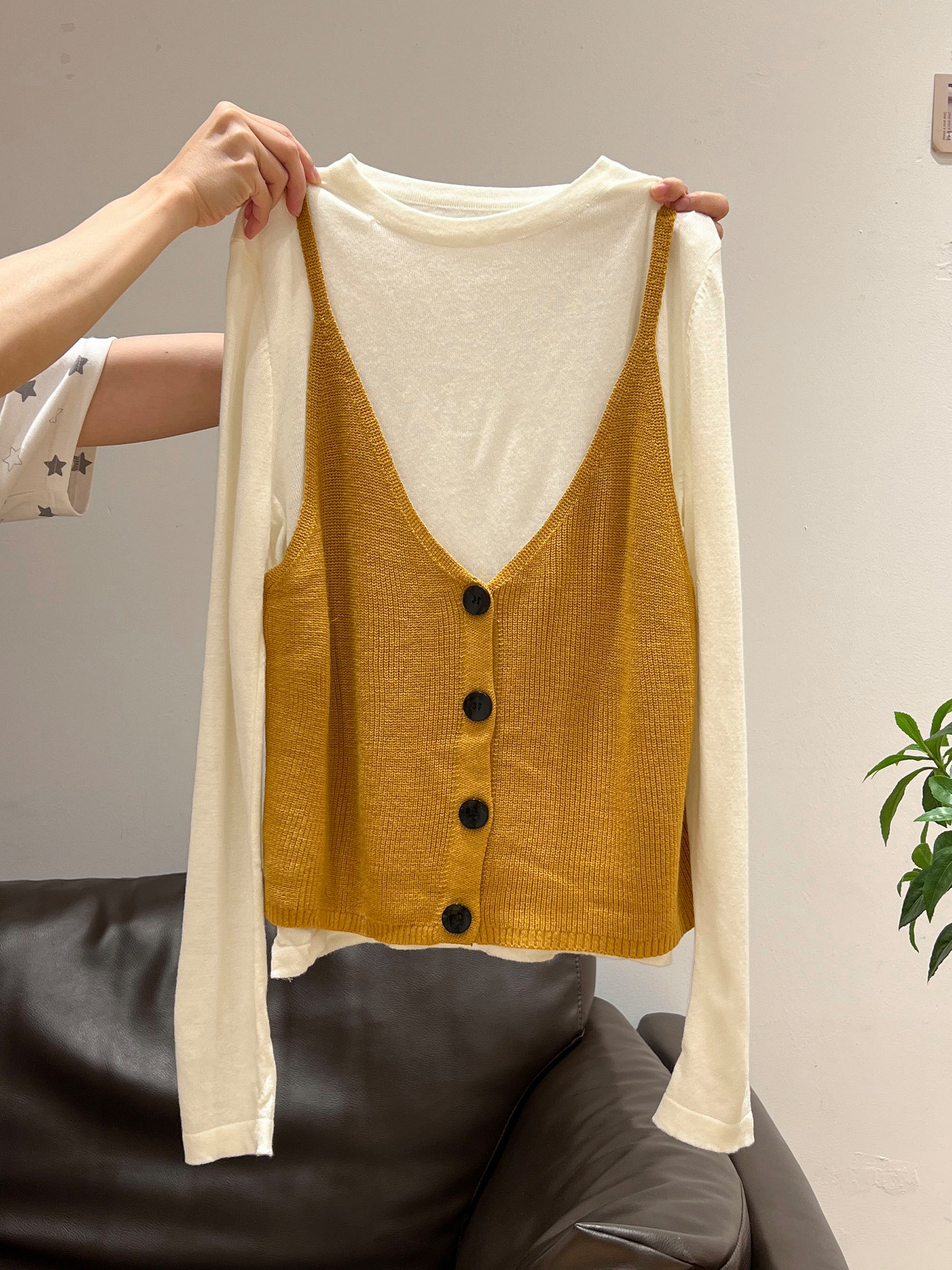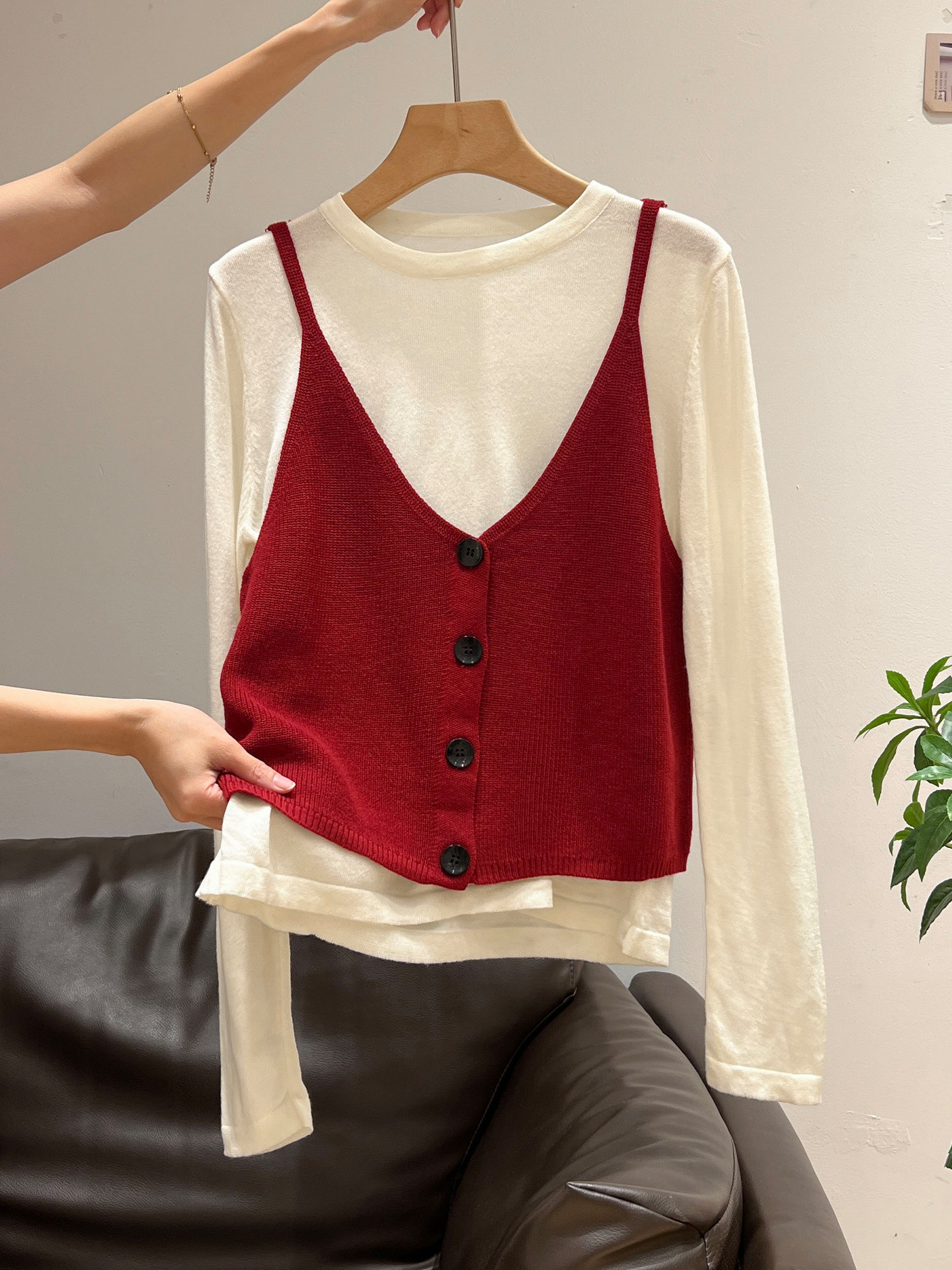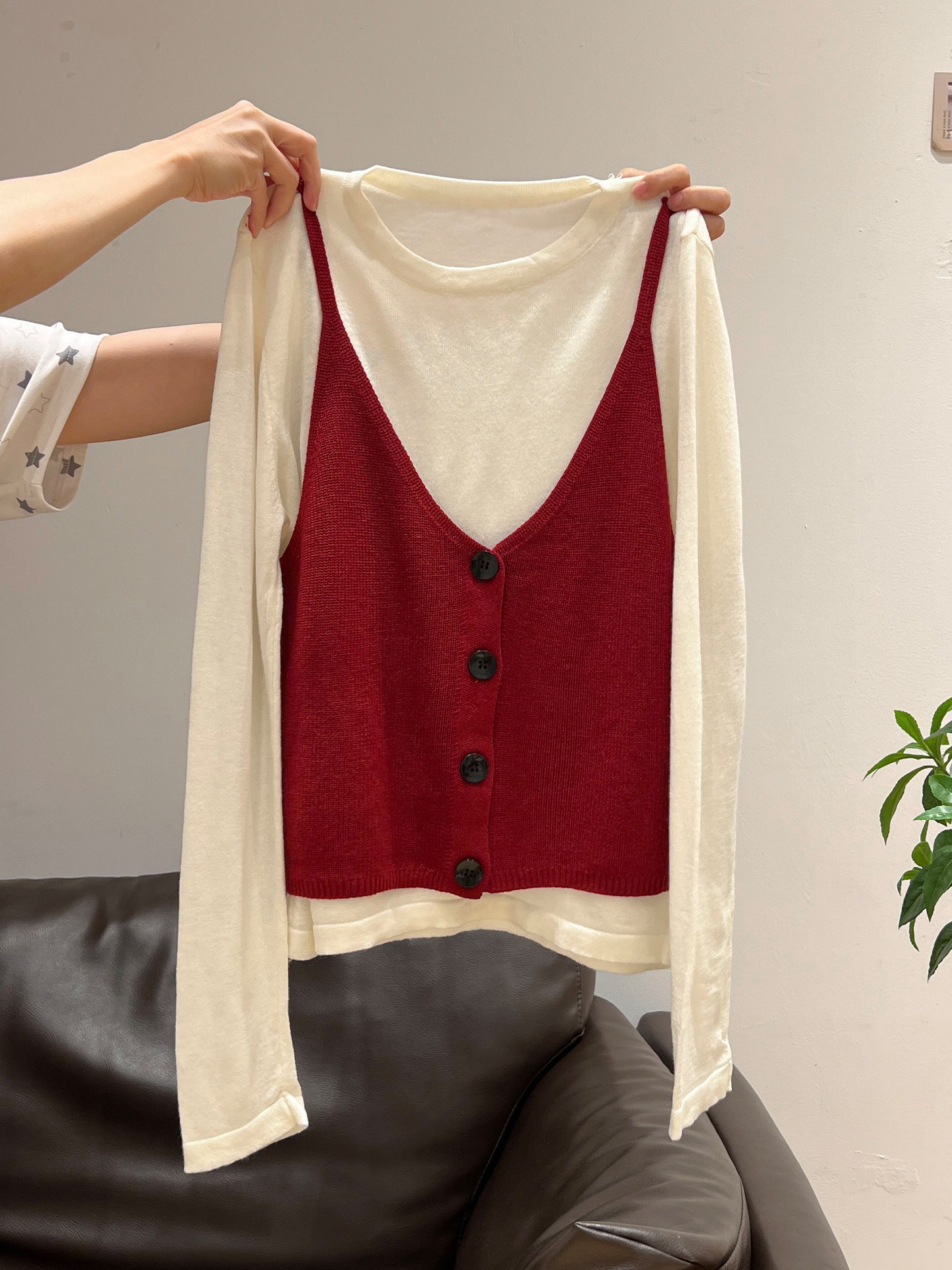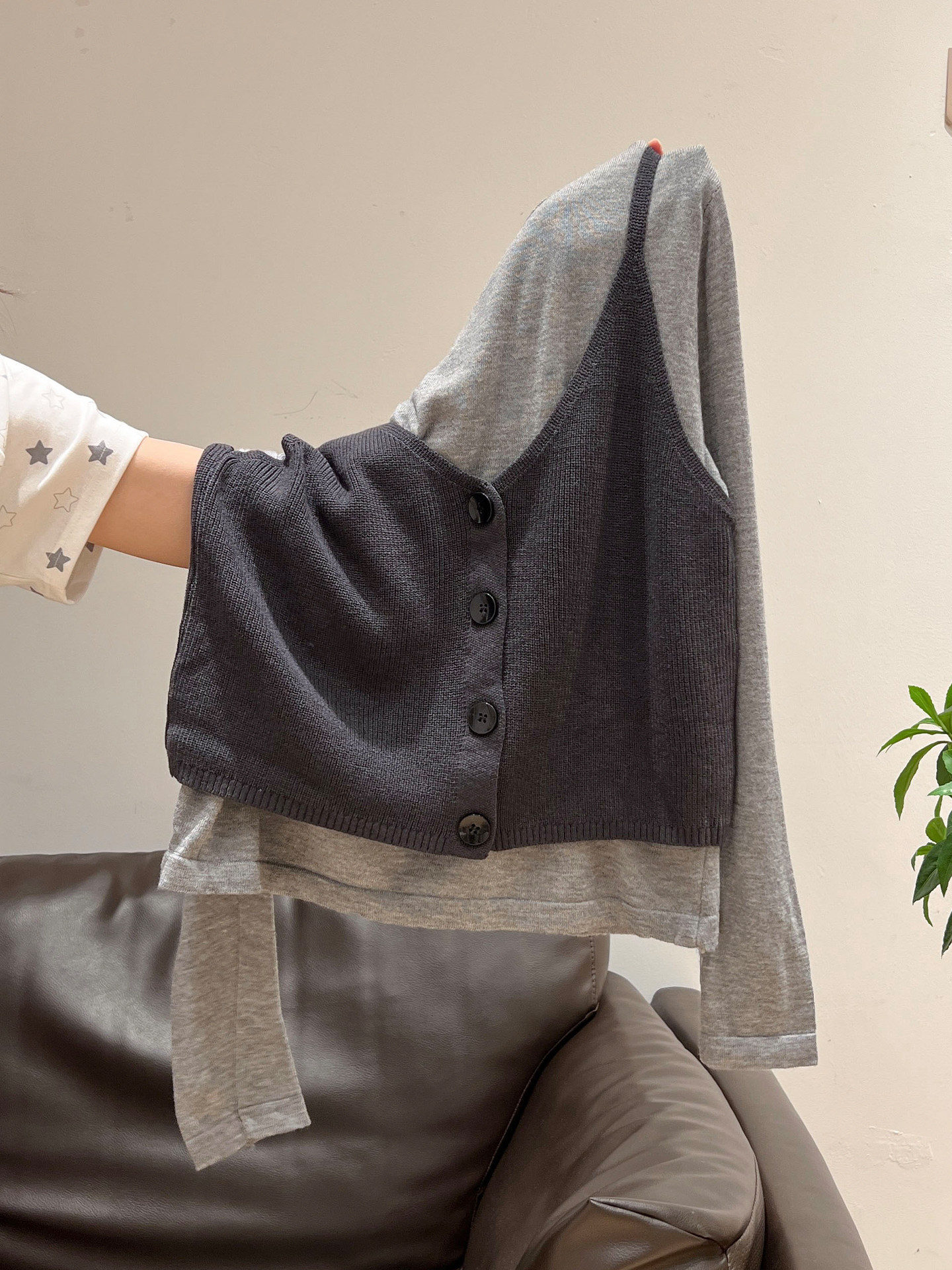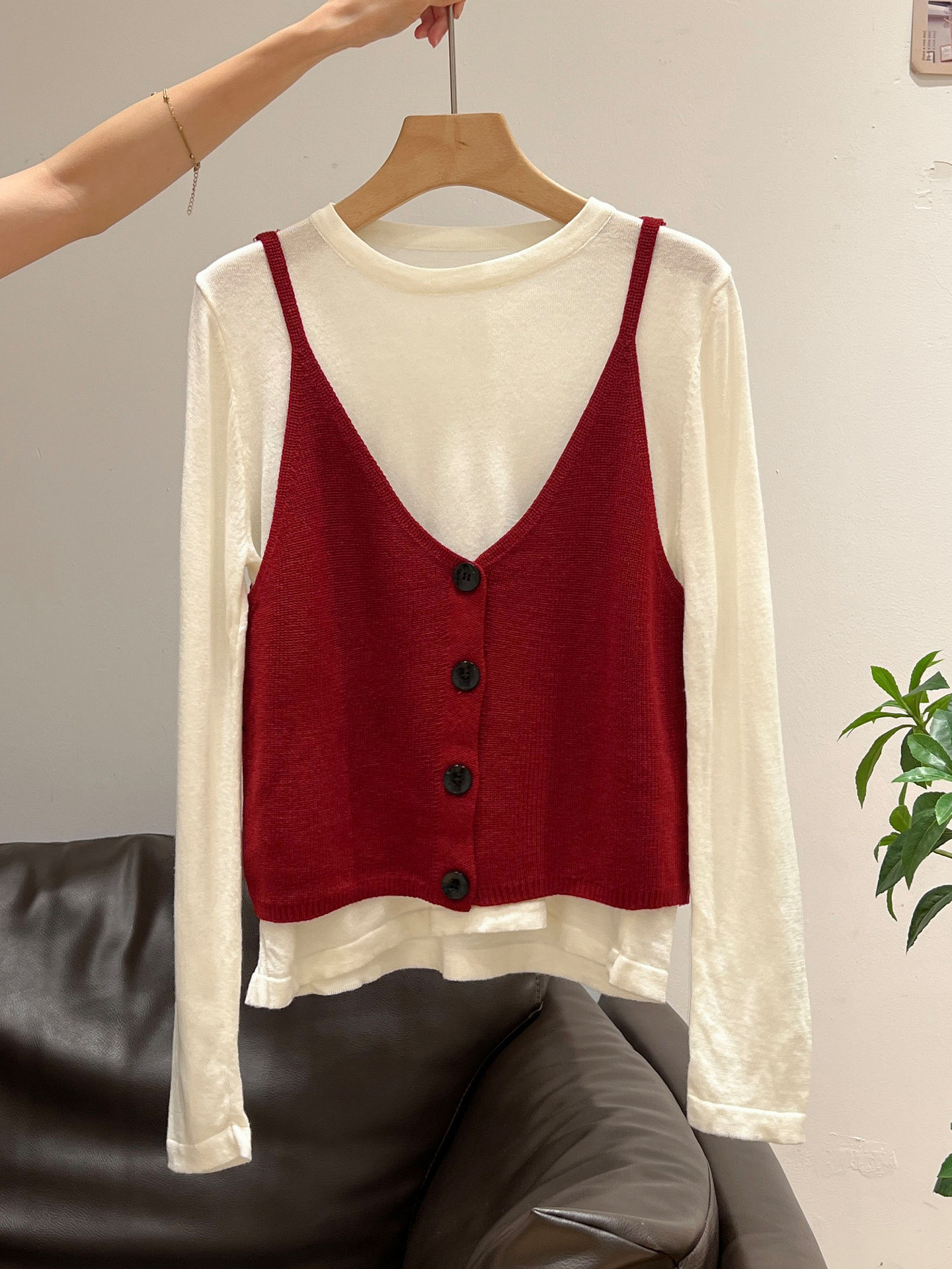 秋季穿搭兩件套長袖T恤女內搭2025年新款開衫外搭吊帶背心女上衣