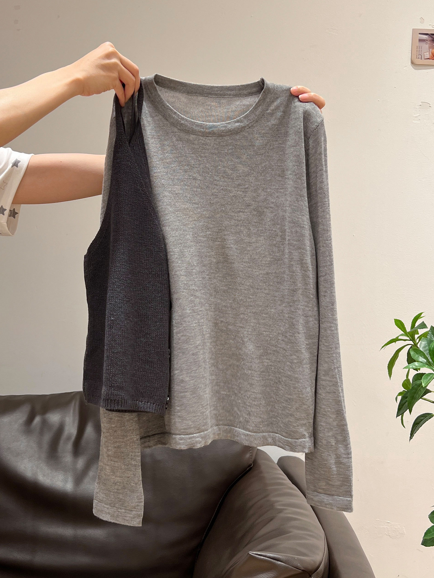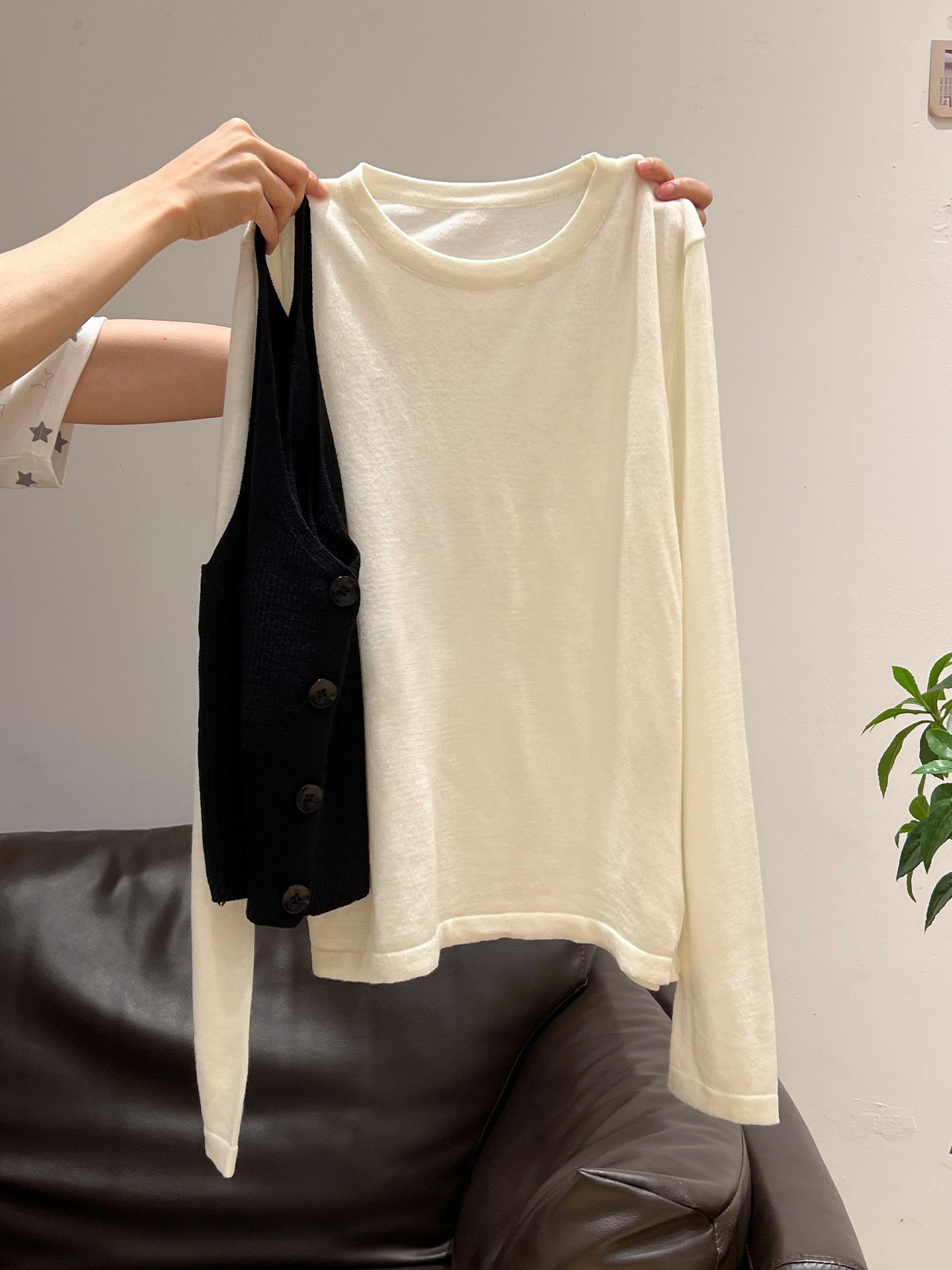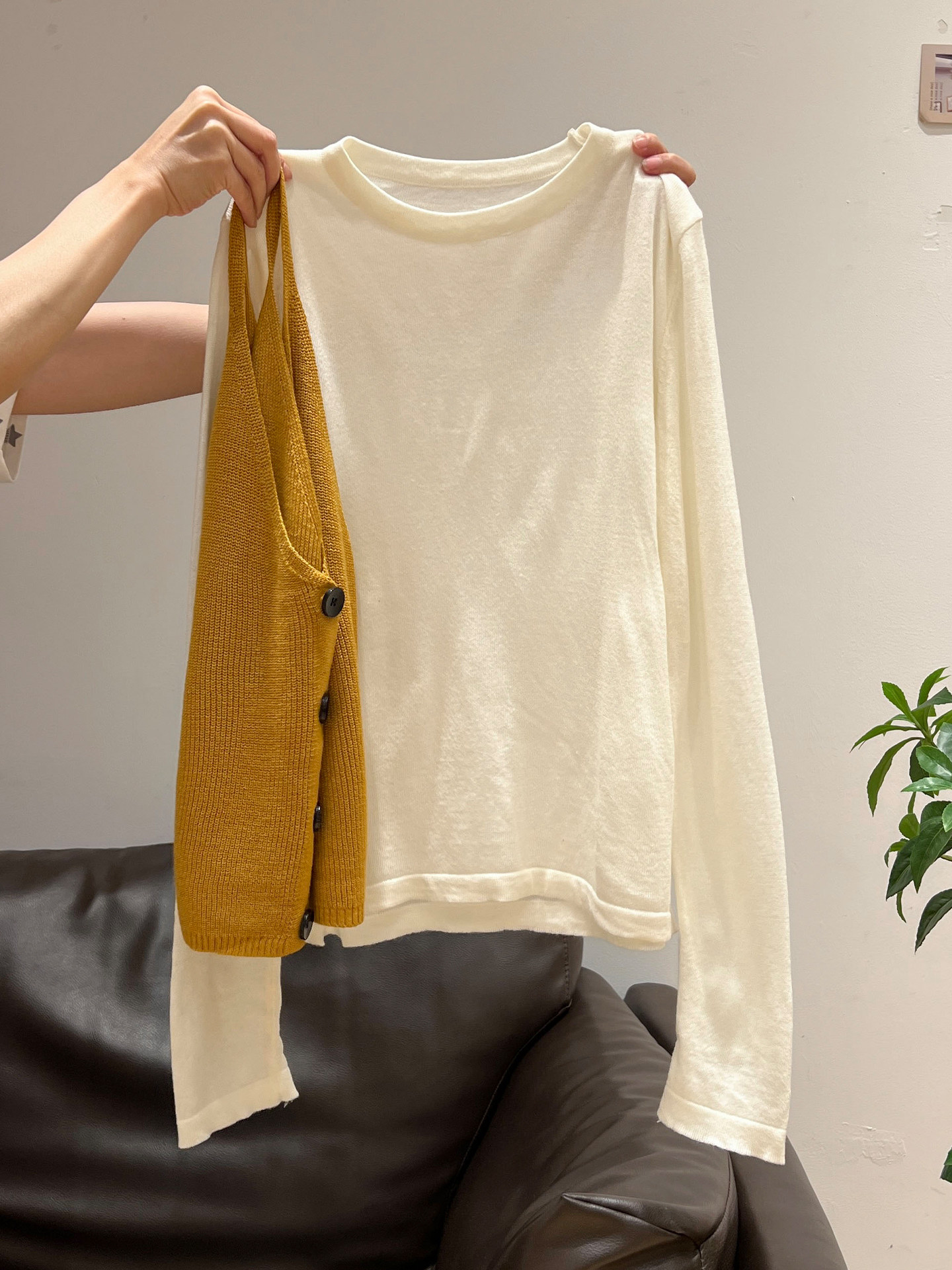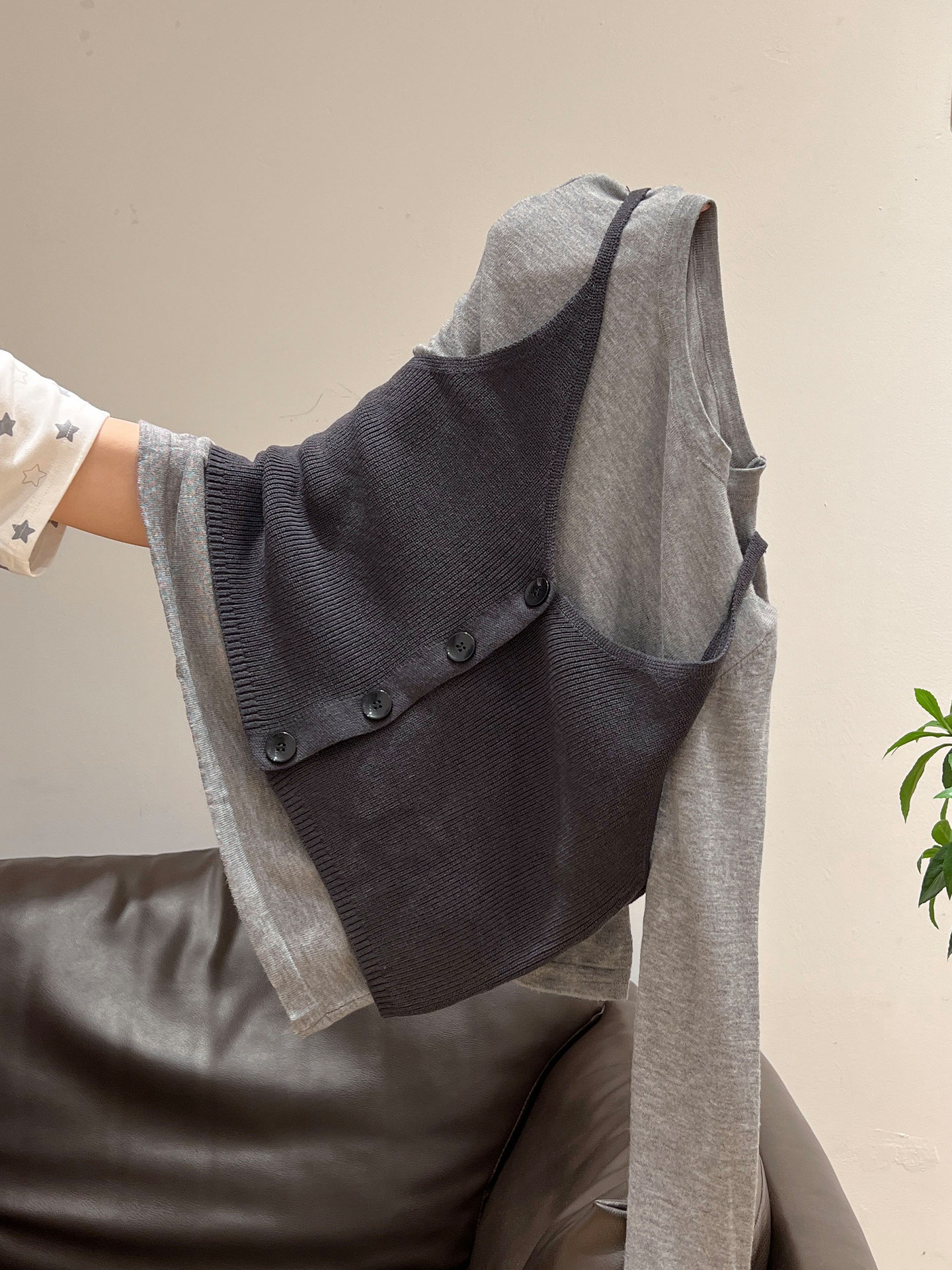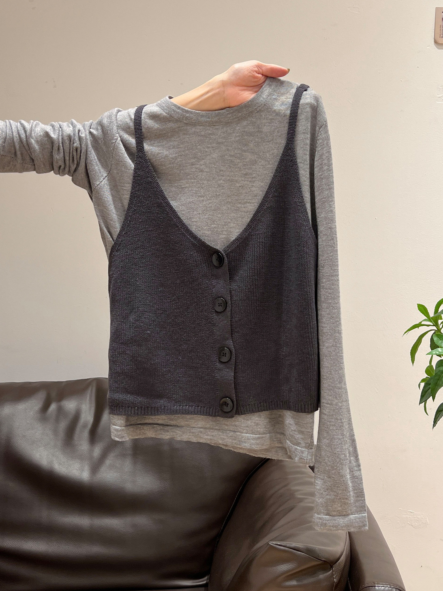 秋季穿搭兩件套長袖T恤女內搭2025年新款開衫外搭吊帶背心女上衣