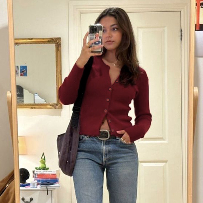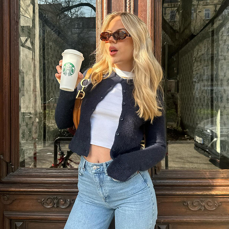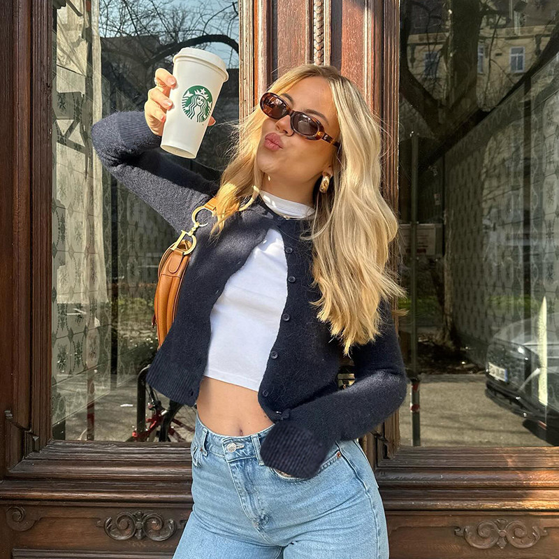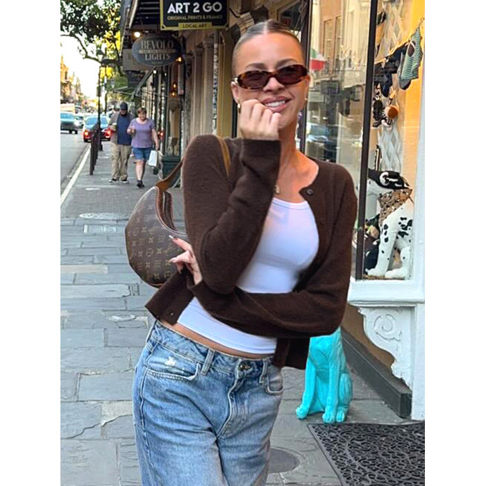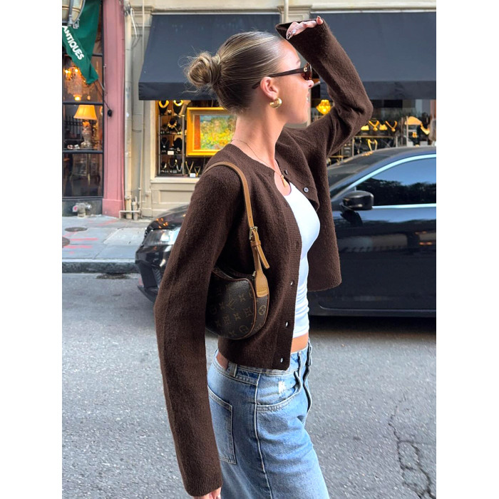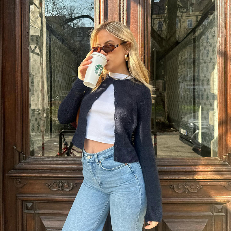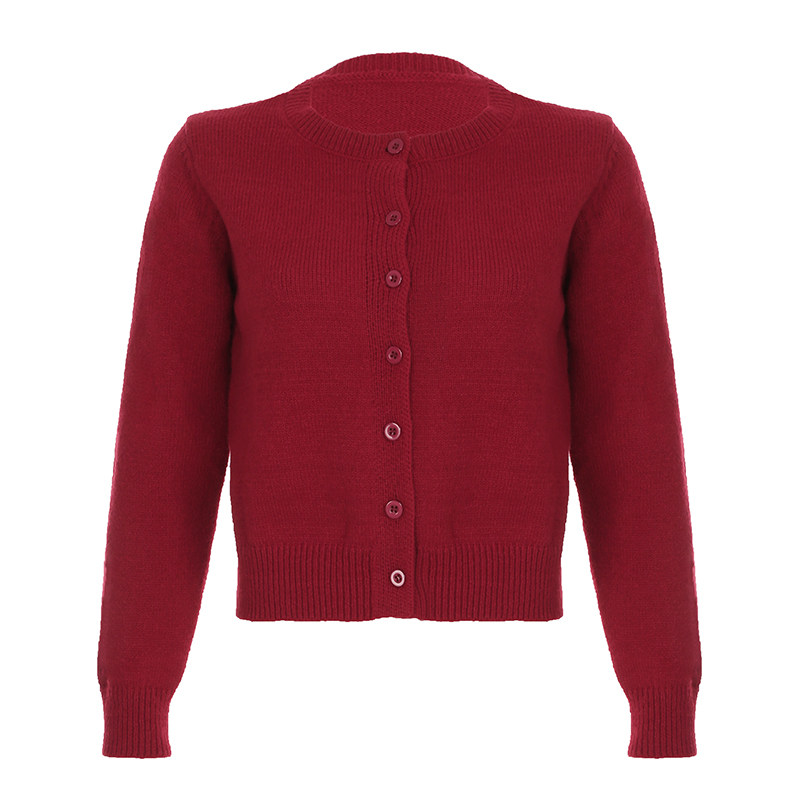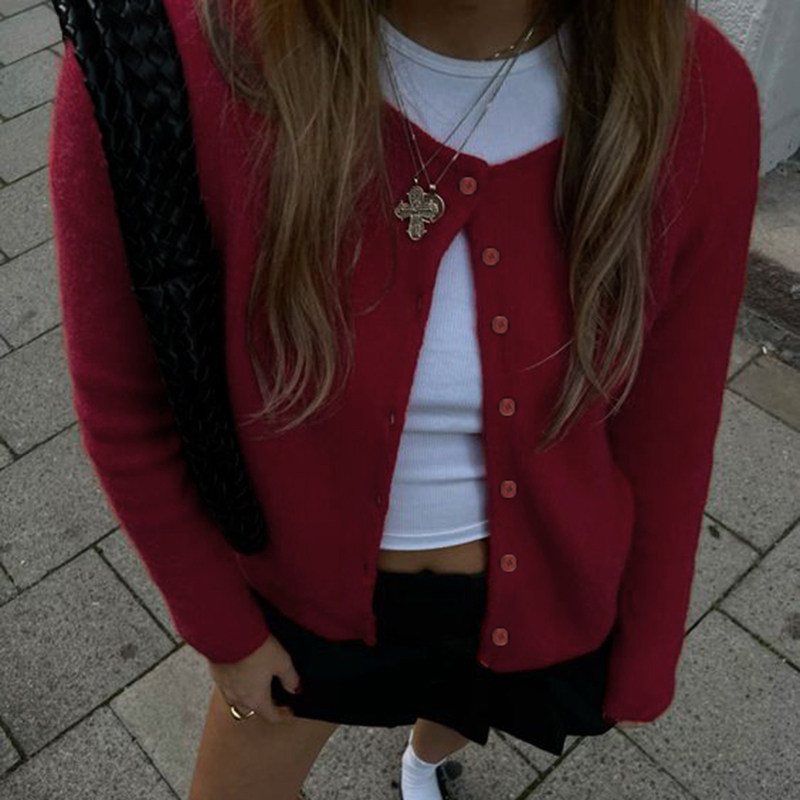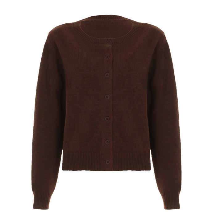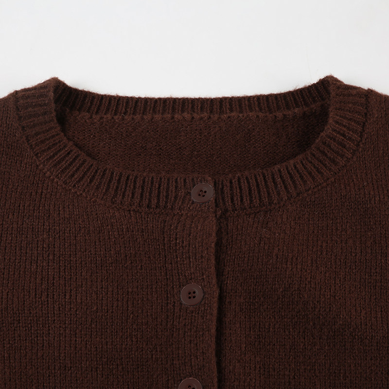 DARLINGAGA美式休閒純色圓領排釦開衫毛衣女日常百搭寬松顯瘦外套