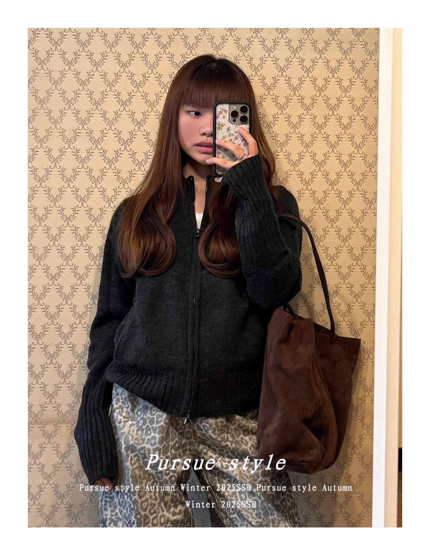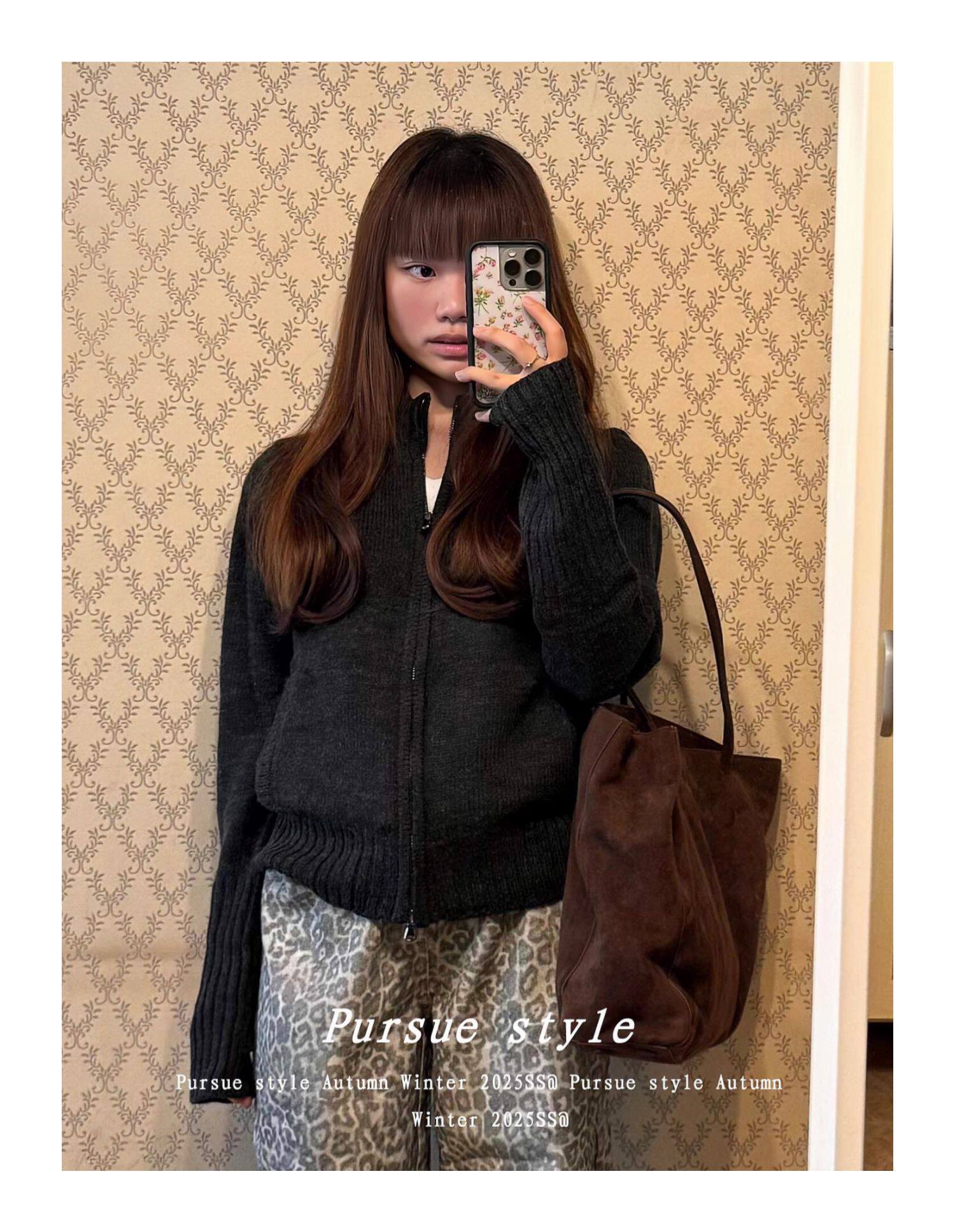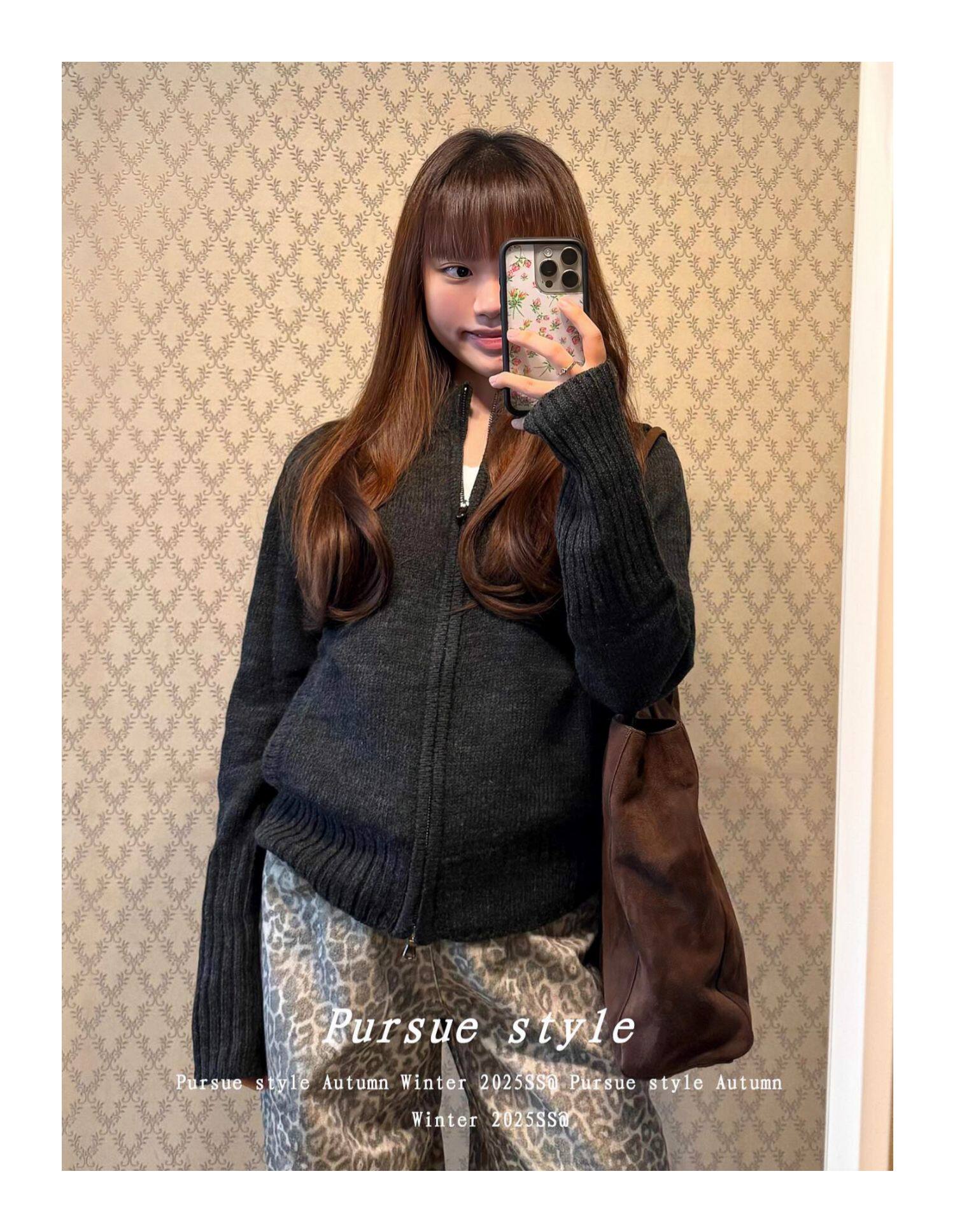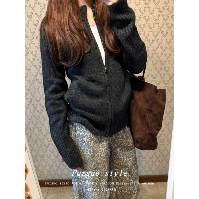 【灰度空間】慵懶高級感毛衣外套女秋冬灰色拉鍊開衫長袖拉鍊上衣