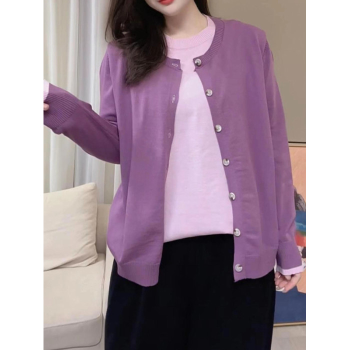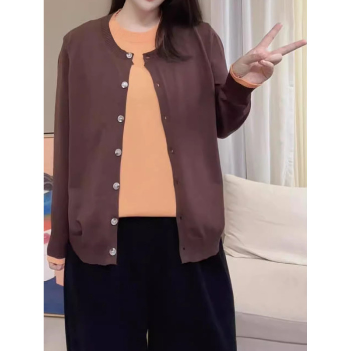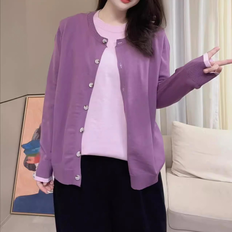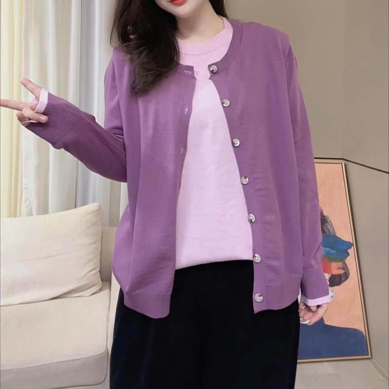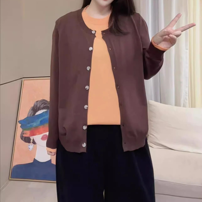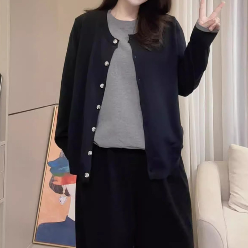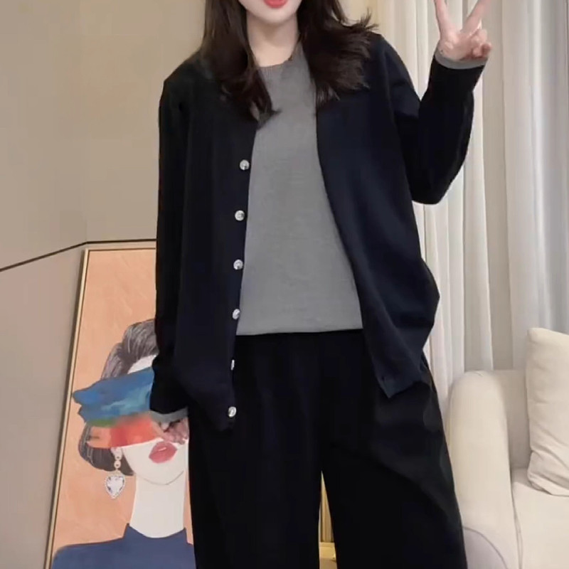 假兩件針織開衫女秋季大碼胖mm黑色圓領紐釦毛衣外套寬松百搭上衣