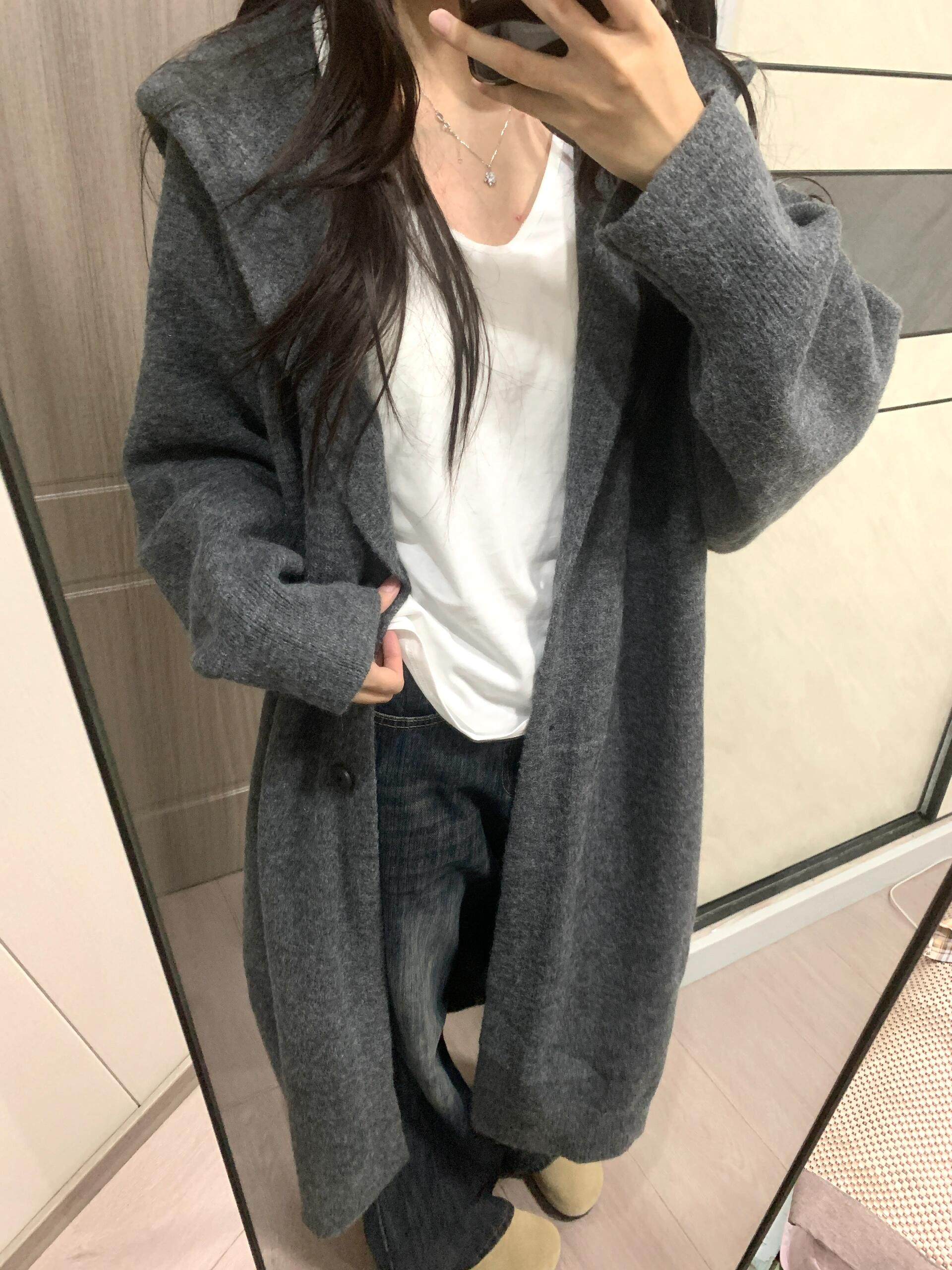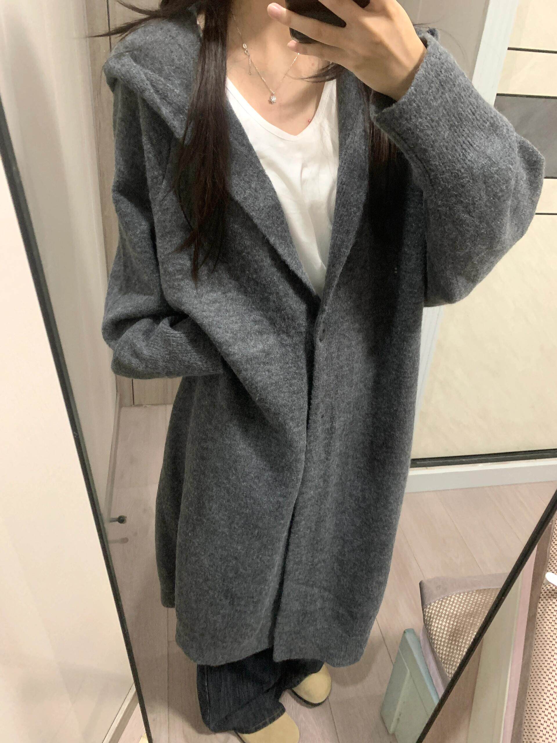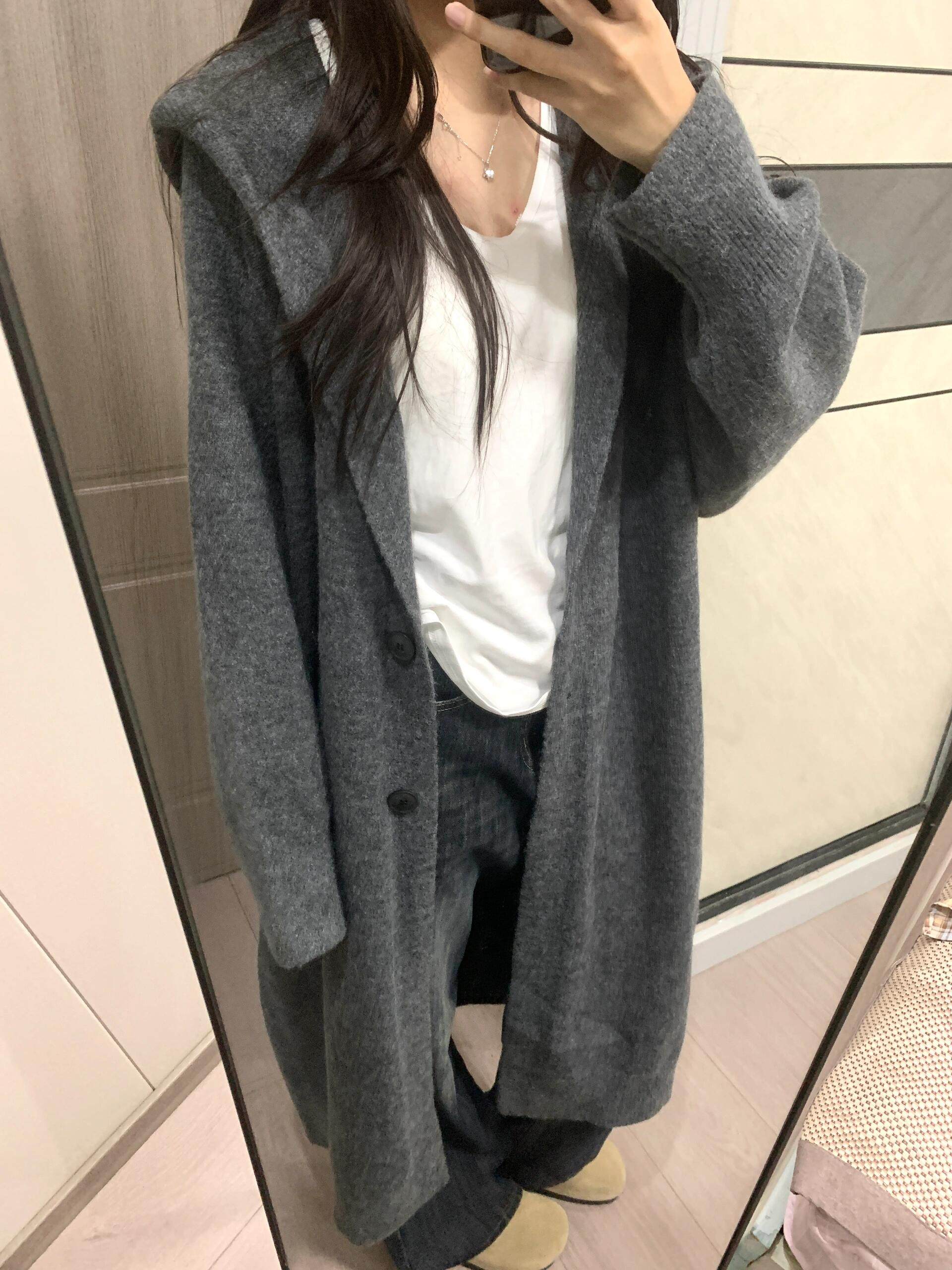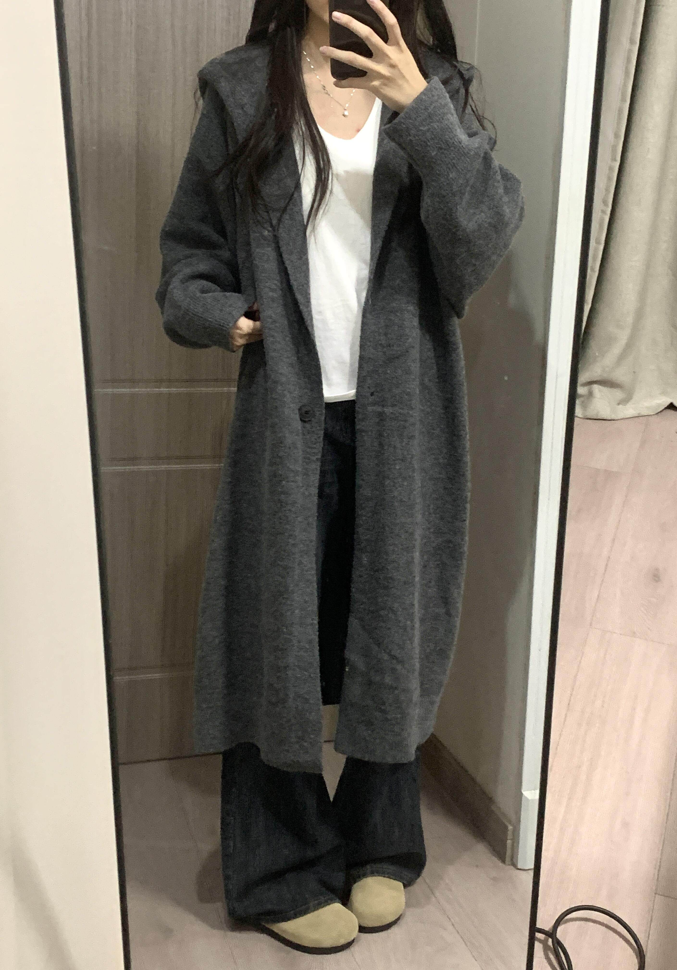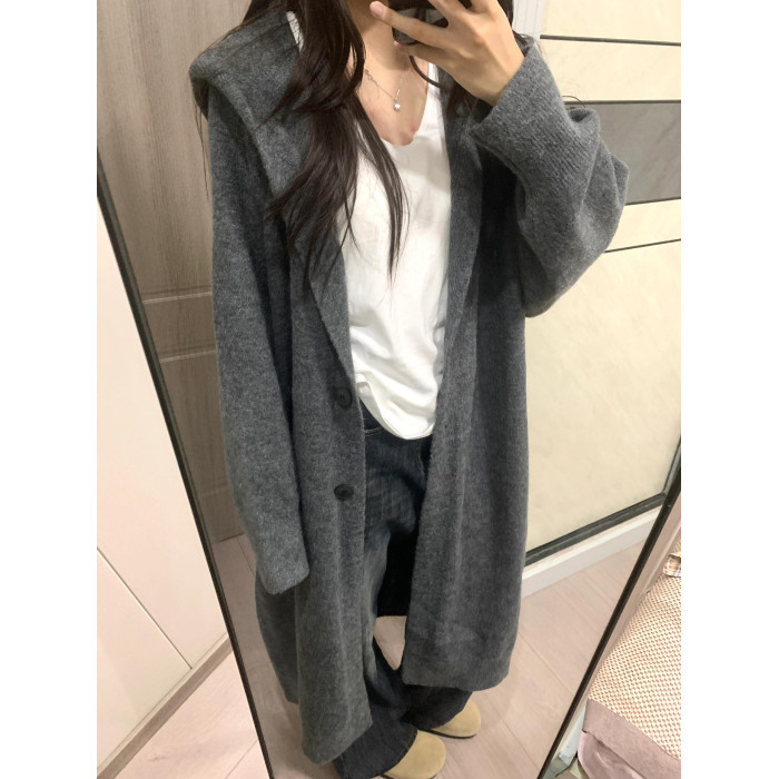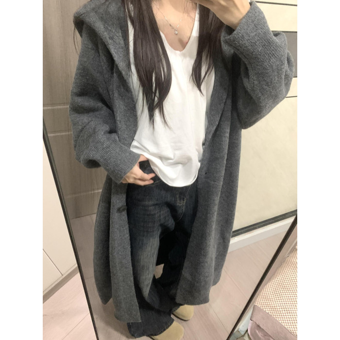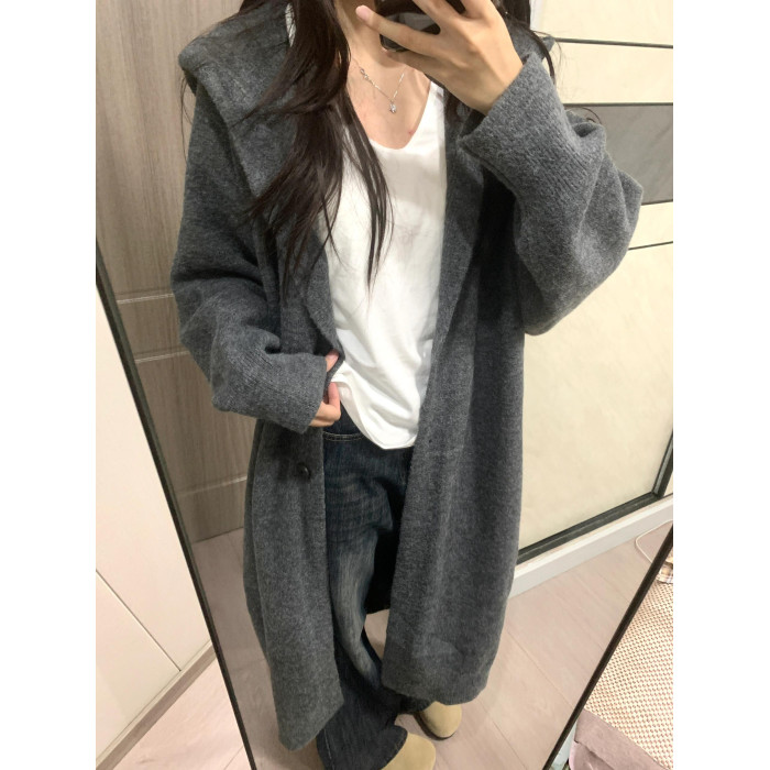 中長款過膝連帽毛衣外套女開衫秋冬新款針織寬鬆加厚氣質慵嬾大衣