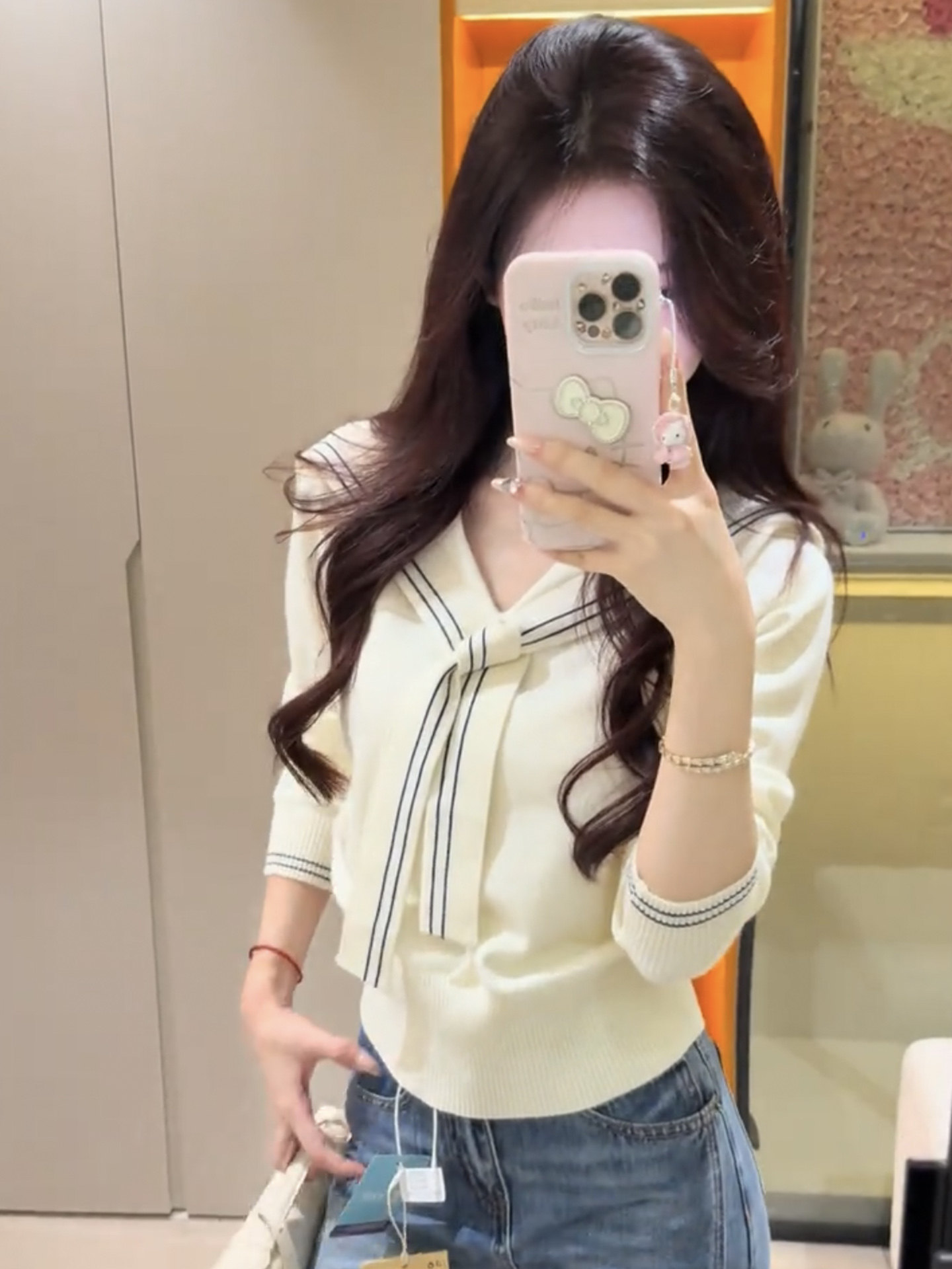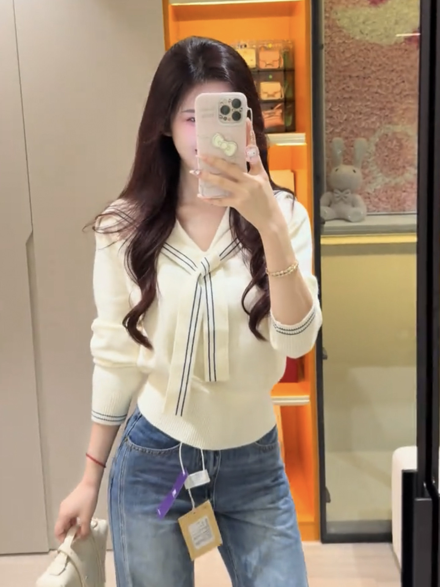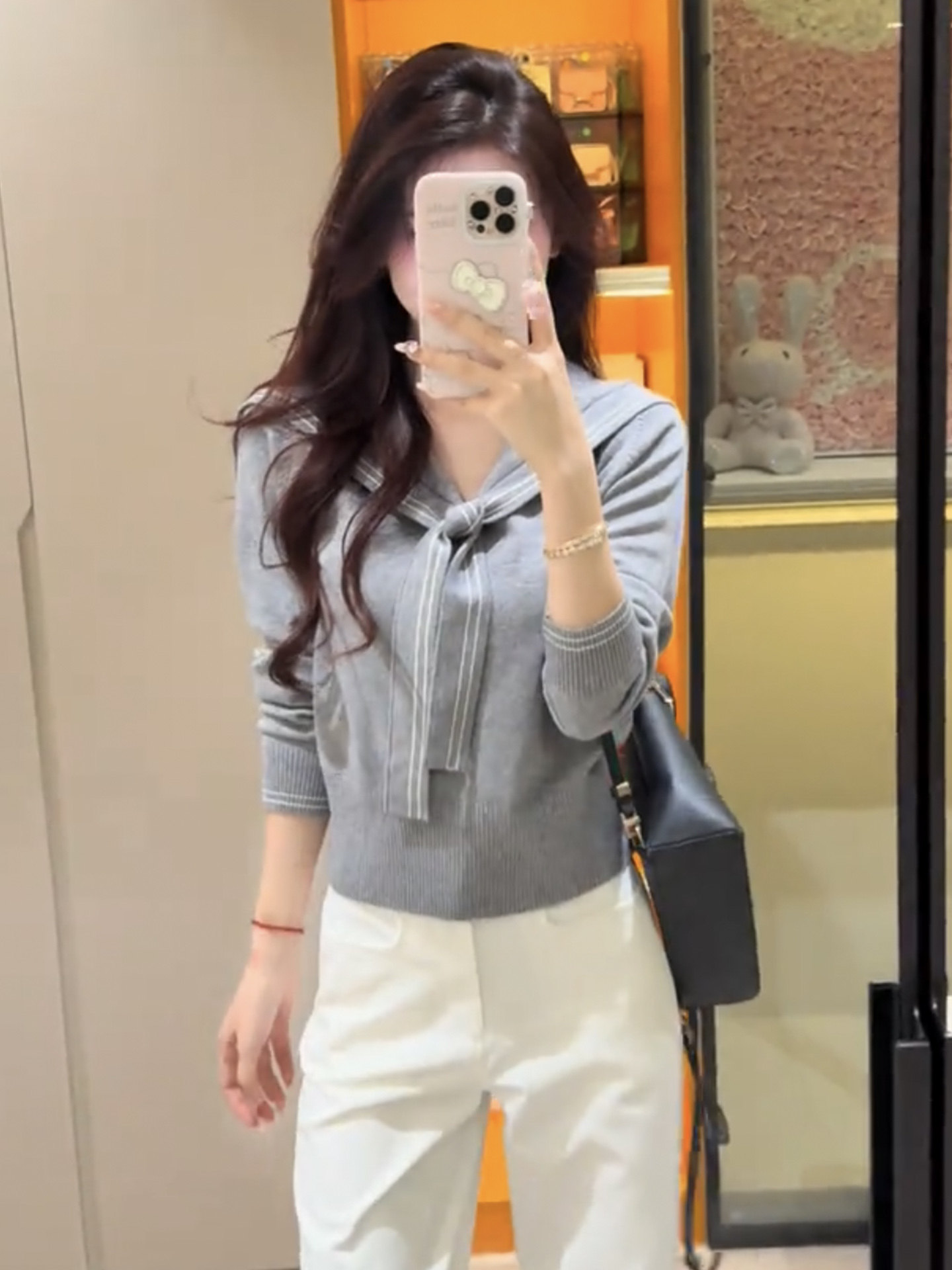 韓系海軍領披肩長袖針織衫女2025秋冬新款高級感內搭顯瘦百搭上衣