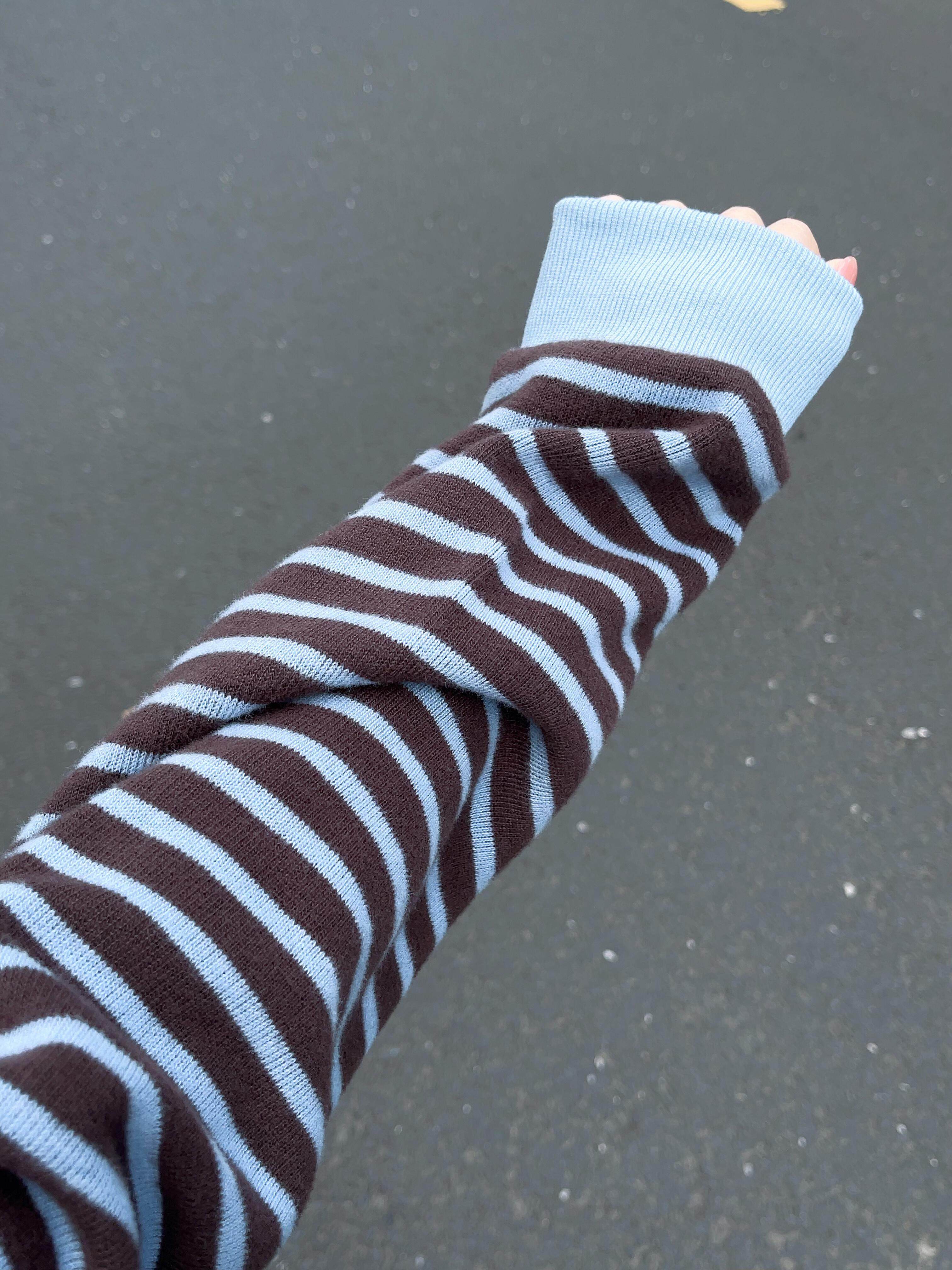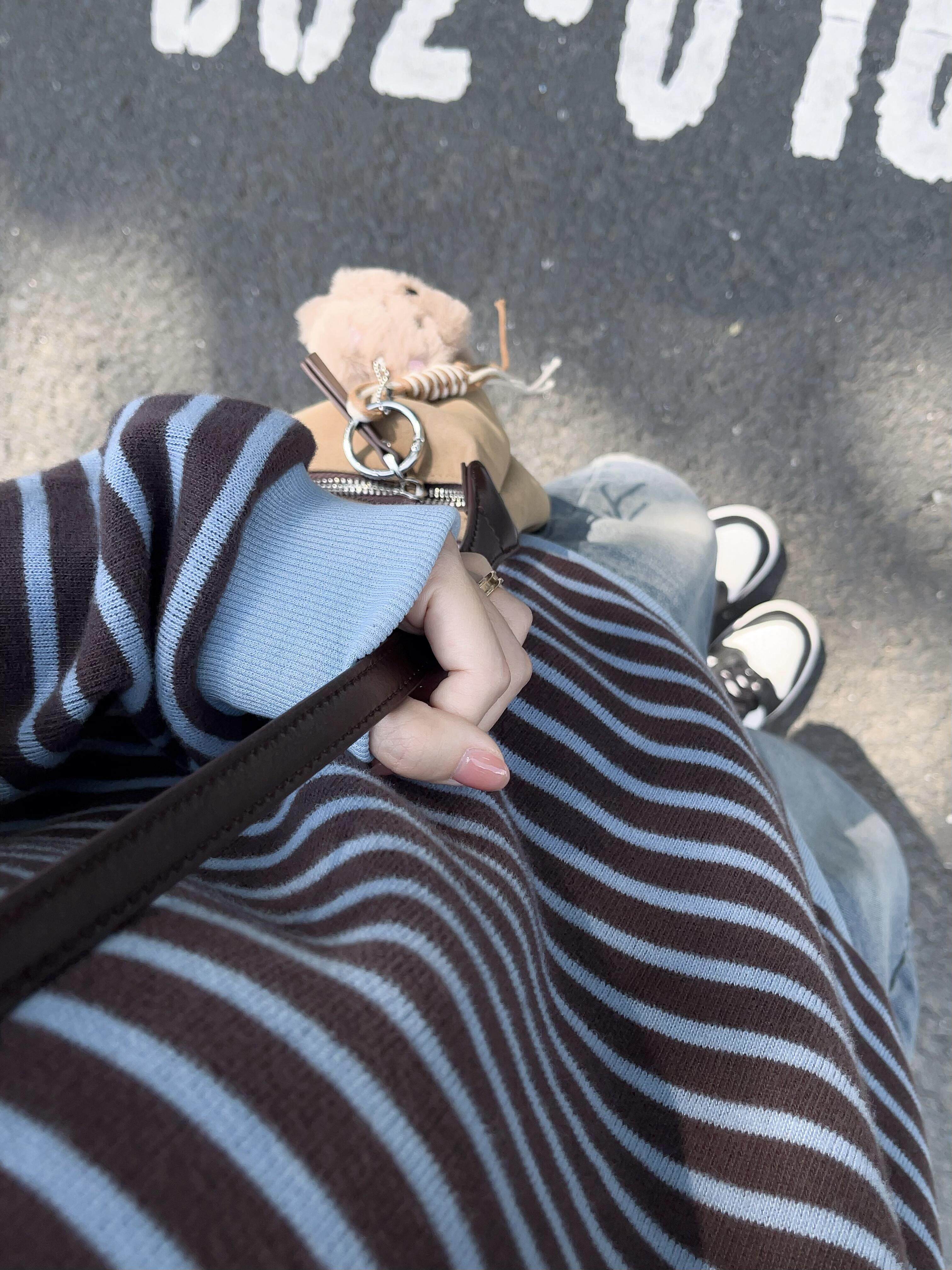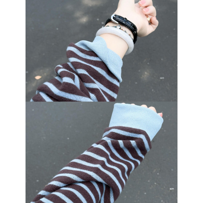 韓系學院風翻領條紋衛衣女秋季復古百搭撞色寬松休閒長袖毛衣上衣