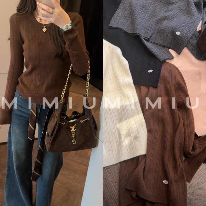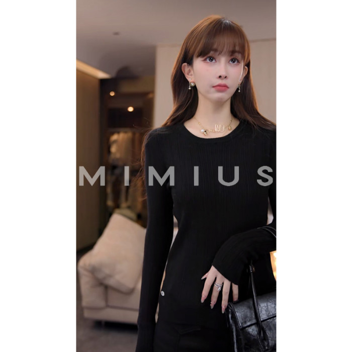 遊鹿鹿 軟糯感竪坑條打底衫 簡約圓領長袖 舒適百搭內搭上衣