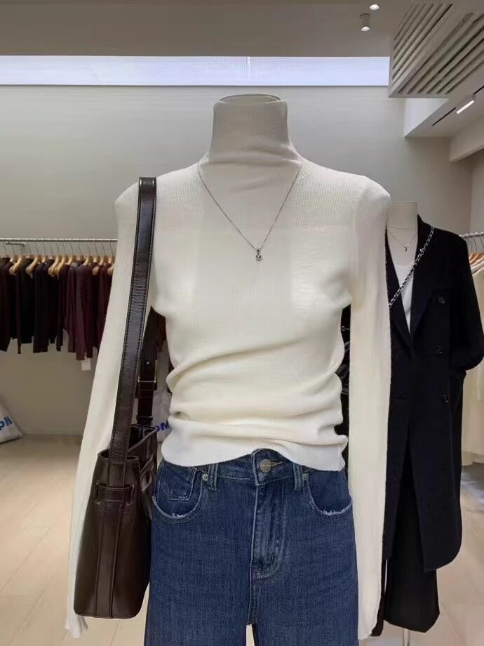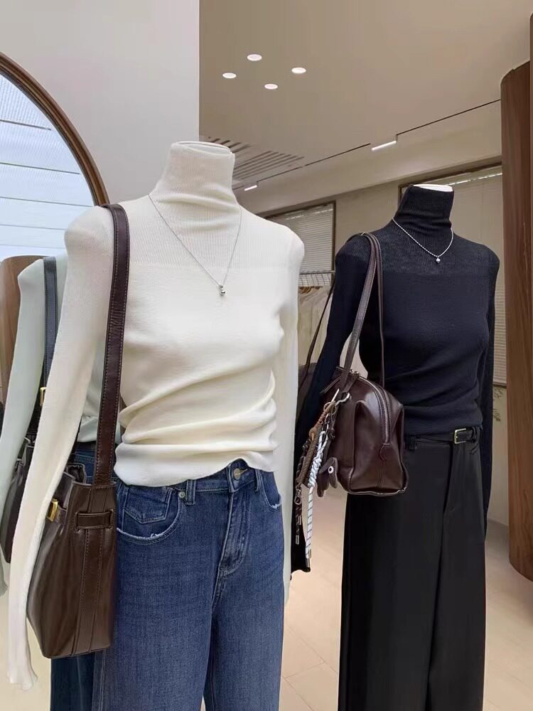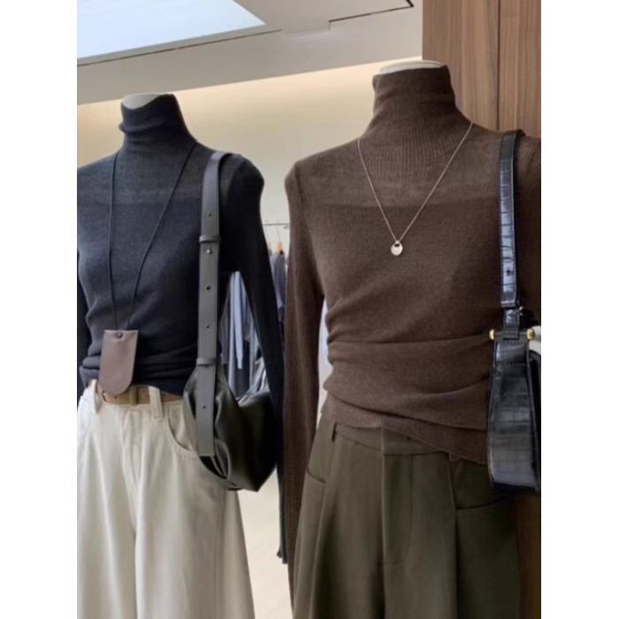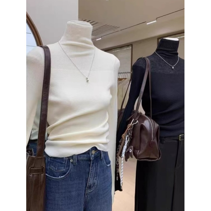 黑色修身顯瘦針織打底衫女2025秋冬季新款高領內搭氛圍感上衣女