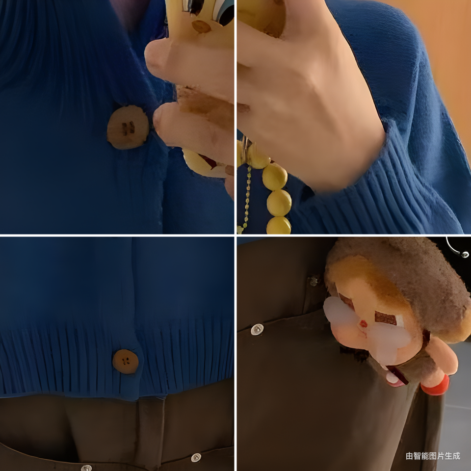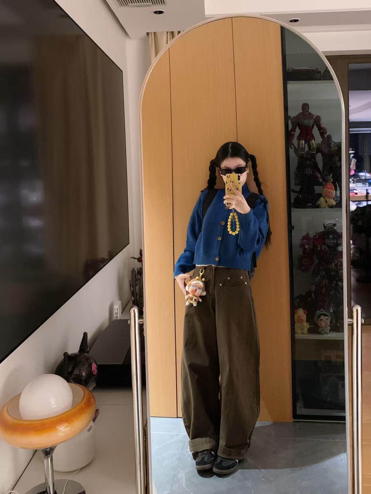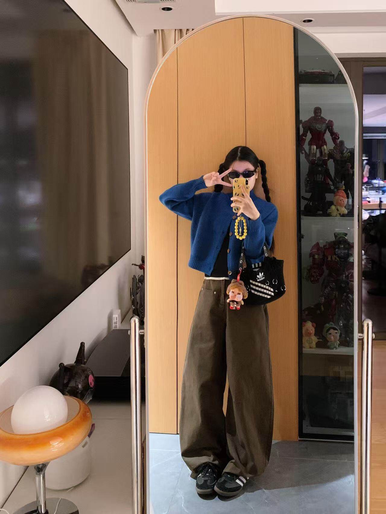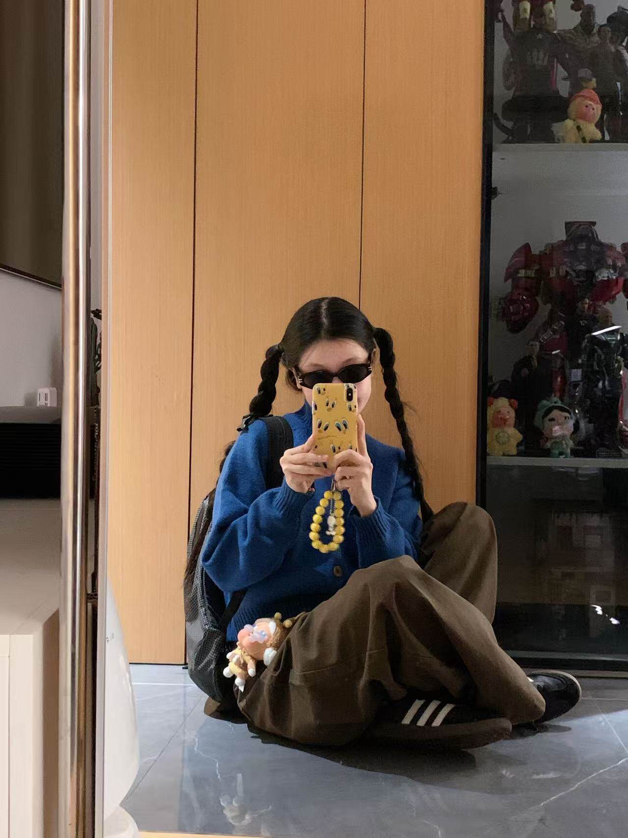 藍色立領開衫女針織衫上衣早秋新款韓系穿搭短款軟糯寬松毛衣外套