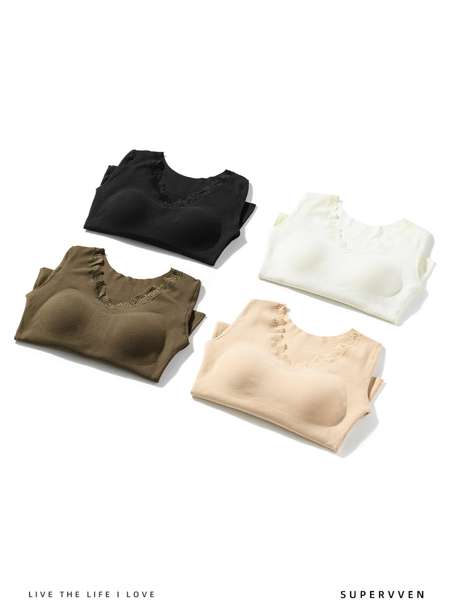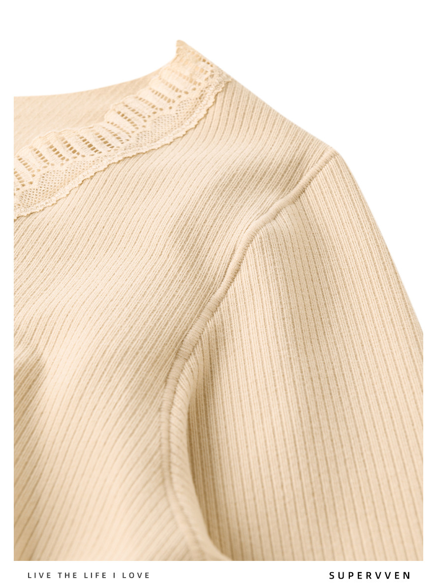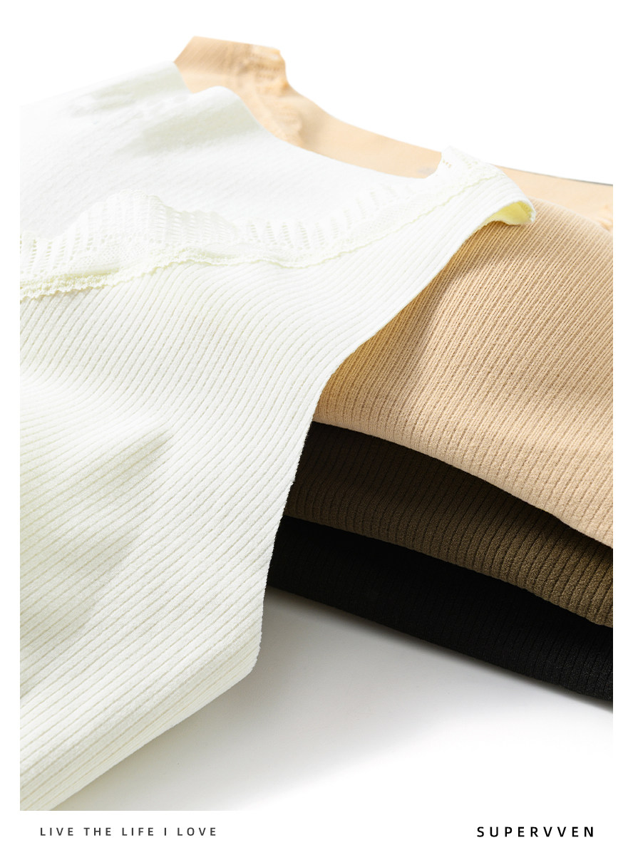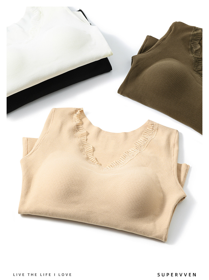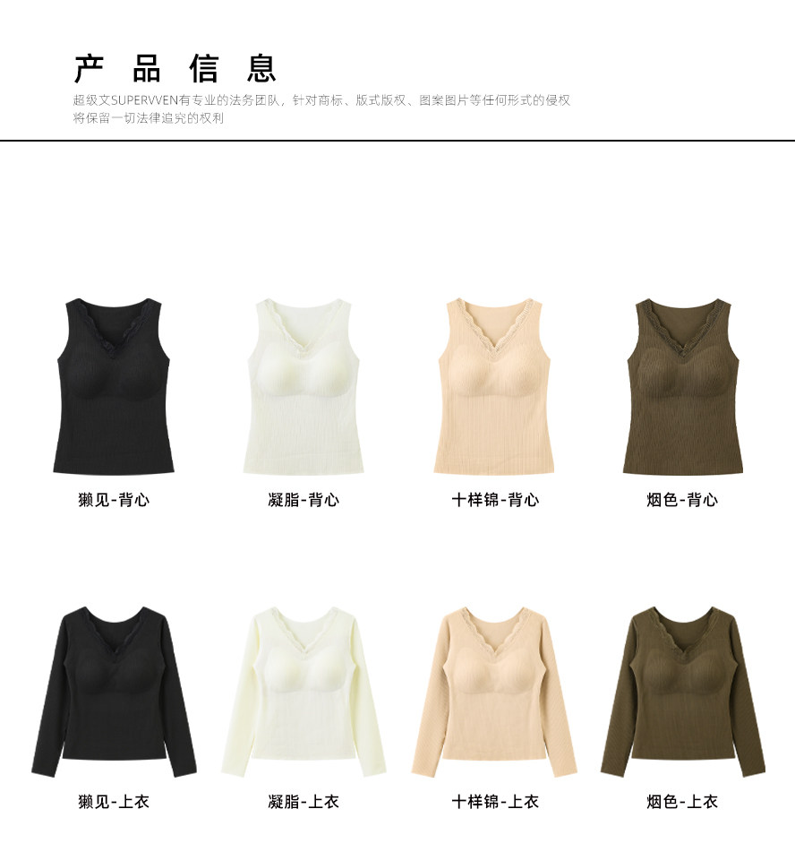 超級文 綉羅衣裳蠶絲羊絨蕾絲花邊抗菌保暖背心/上衣/打底褲