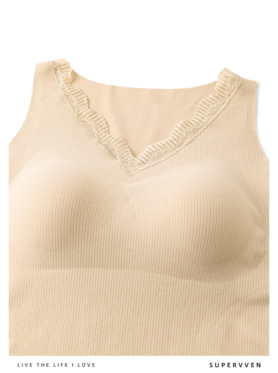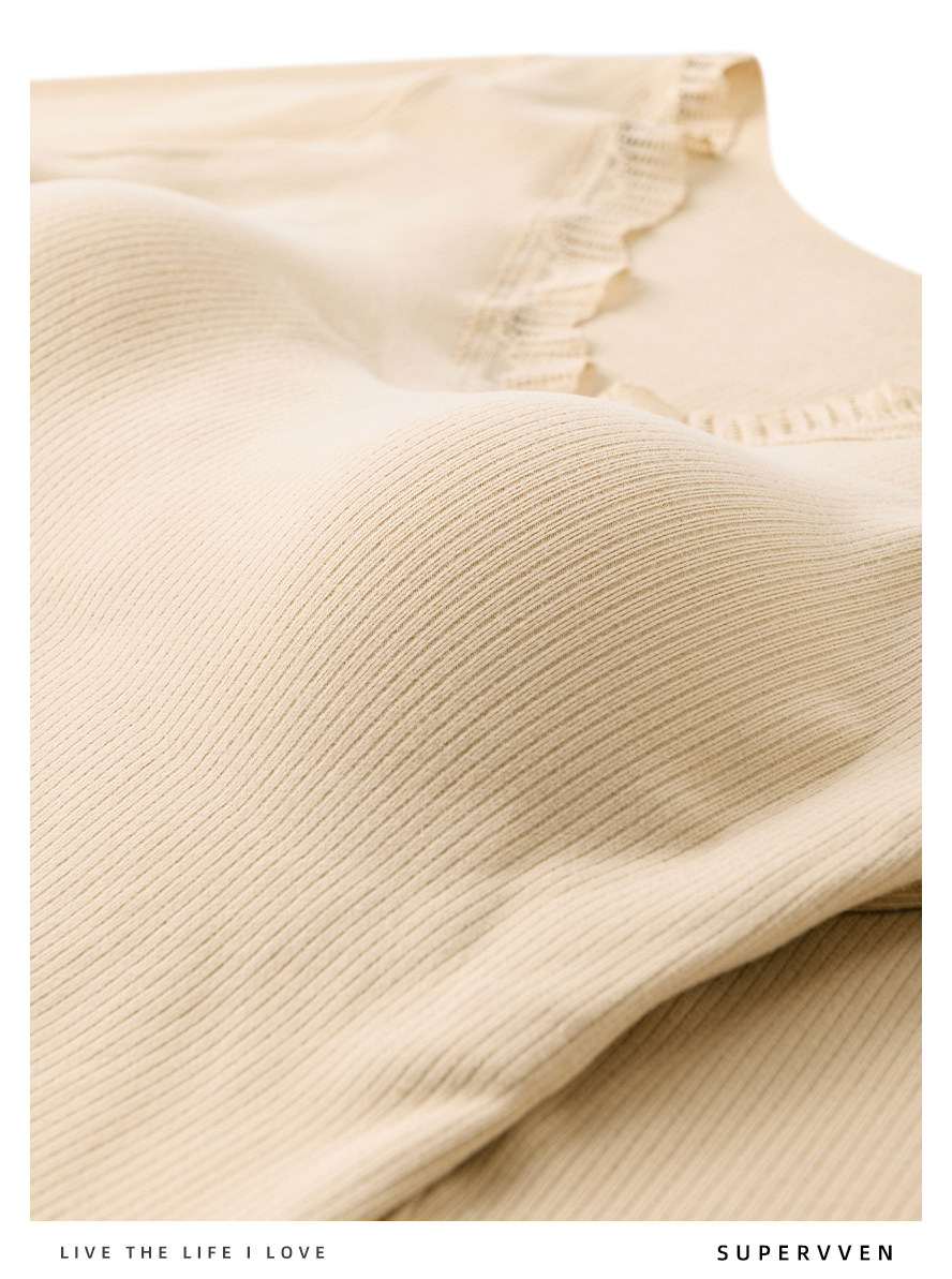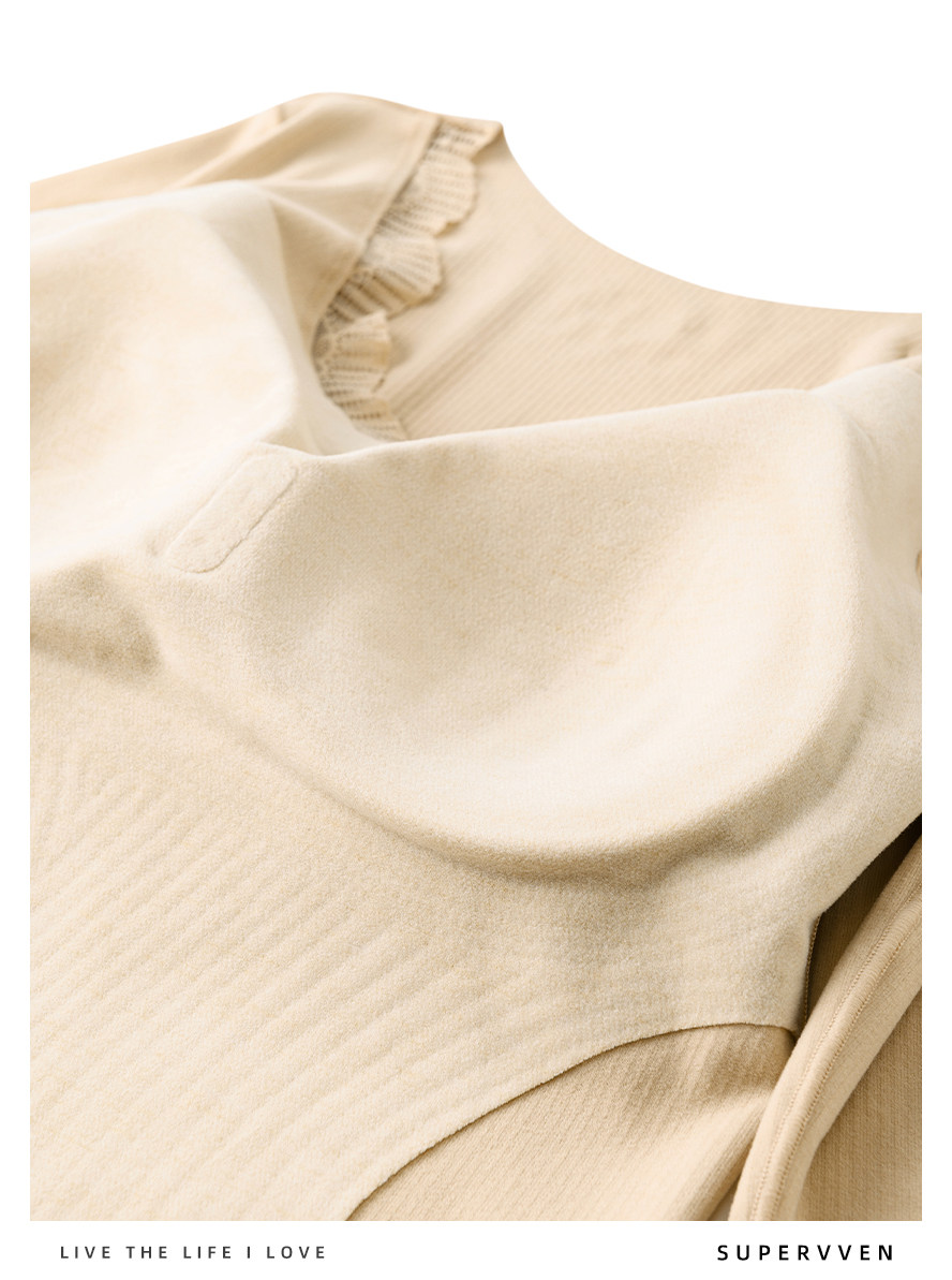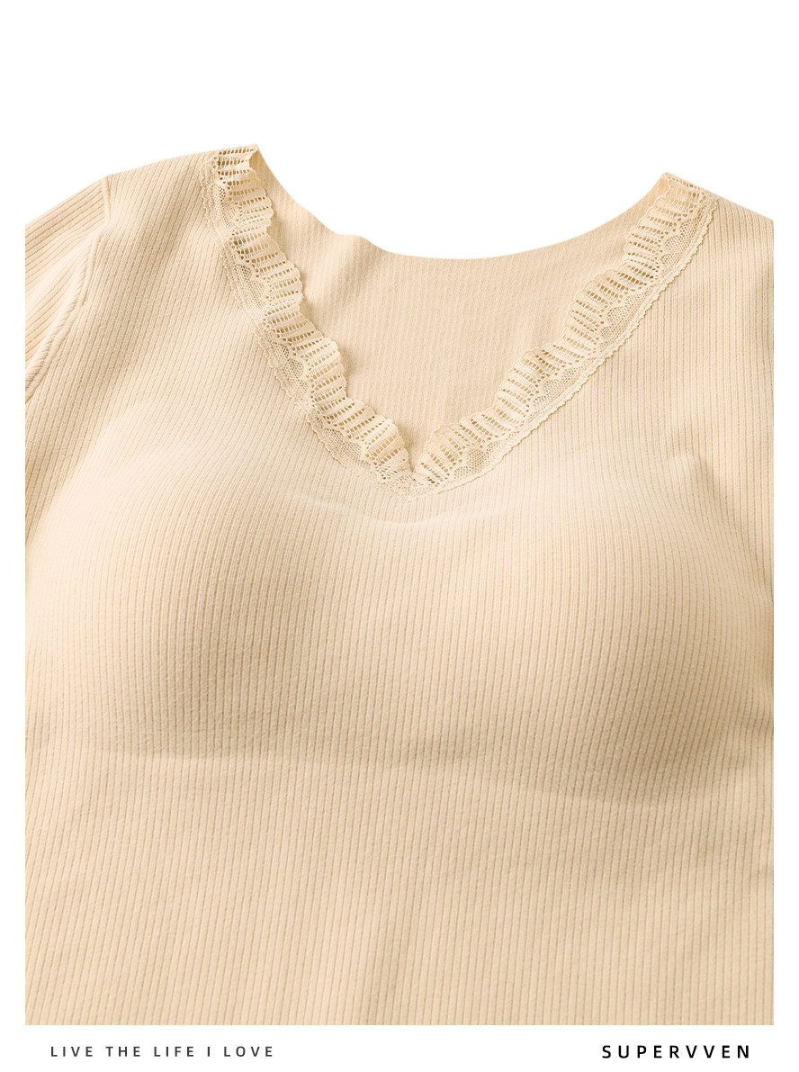 超級文 綉羅衣裳蠶絲羊絨蕾絲花邊抗菌保暖背心/上衣/打底褲
