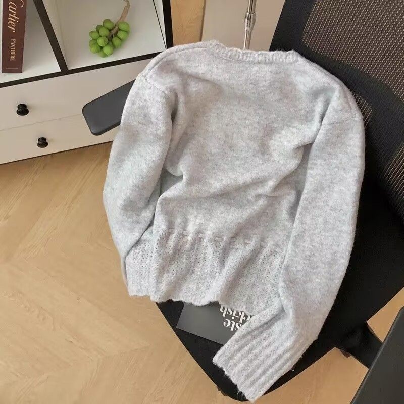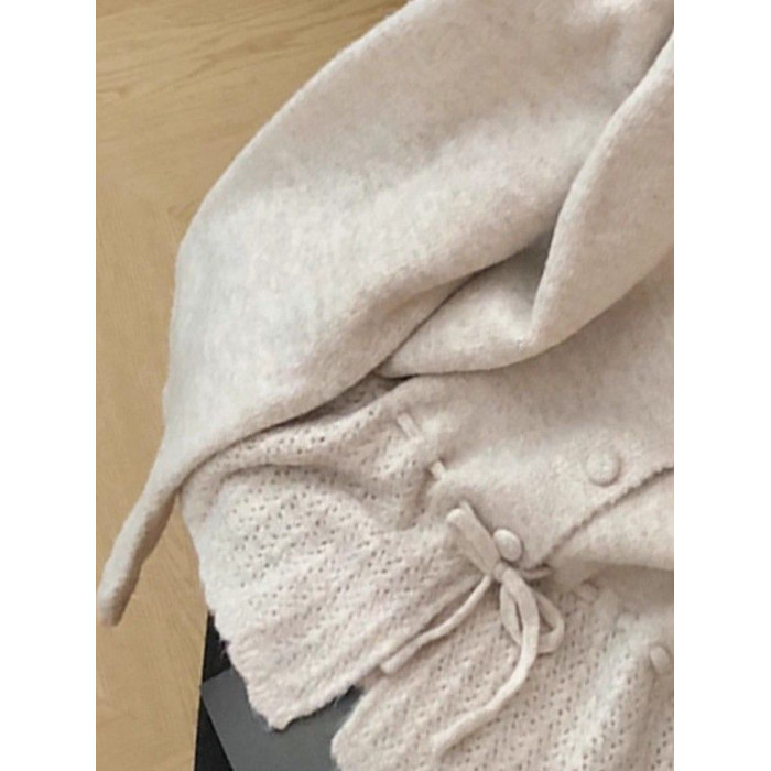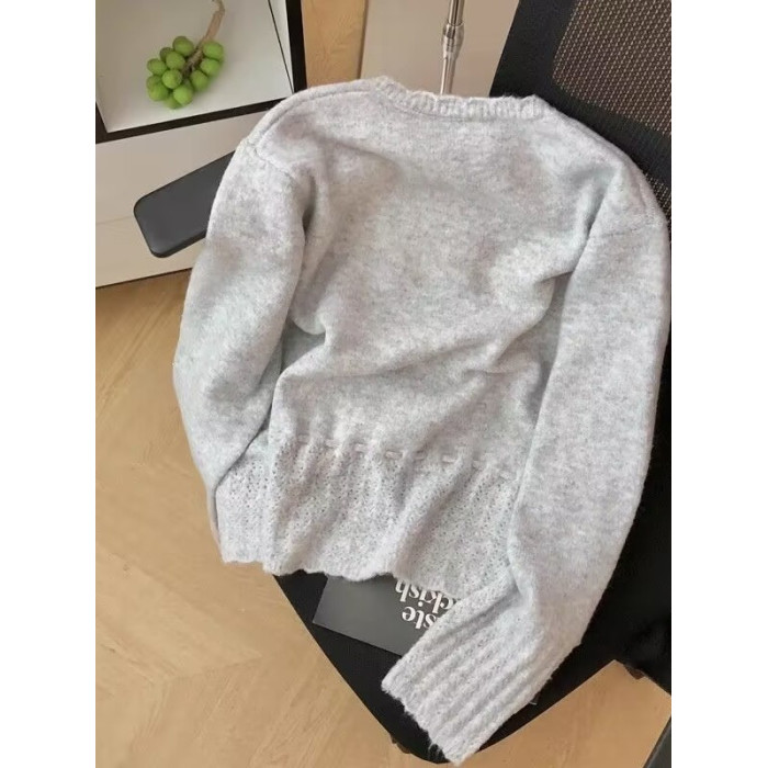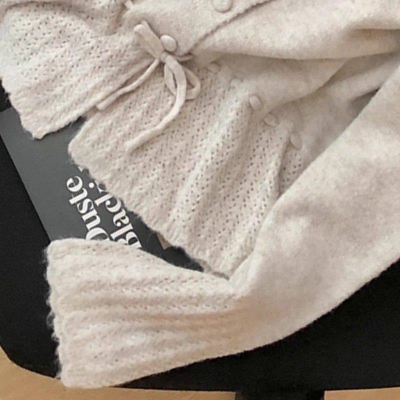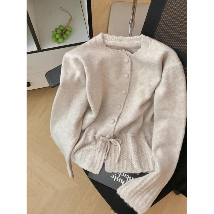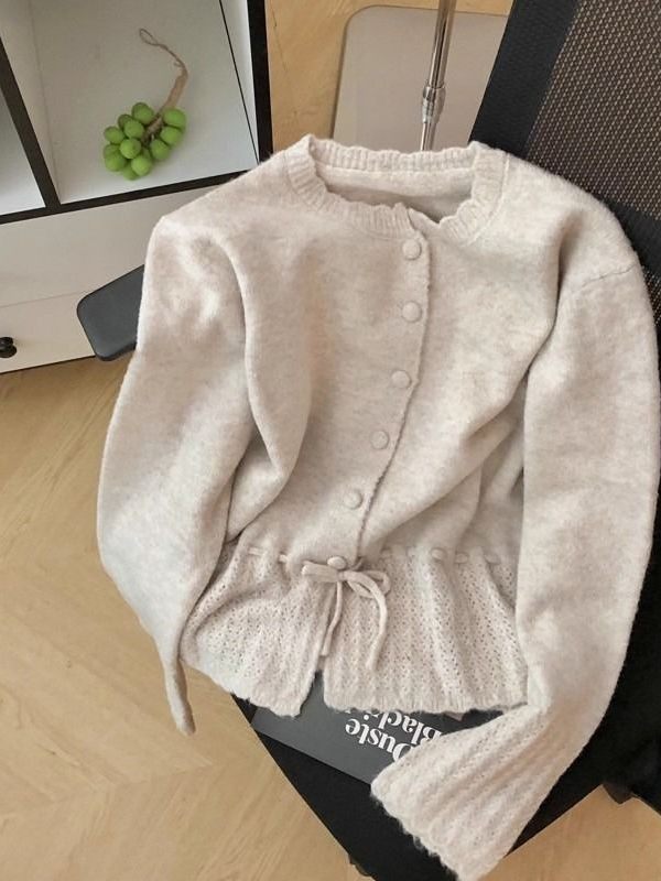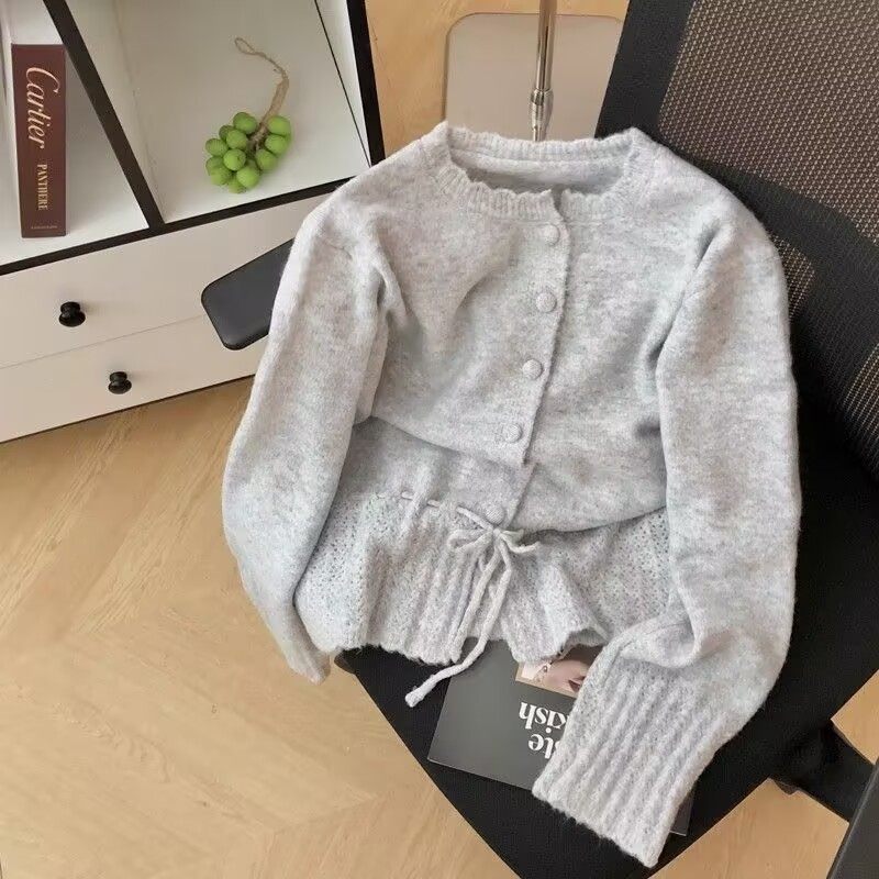 韓系溫柔風荷葉邊針織開衫女2025秋季毛衣長袖收腰顯瘦上衣女外套