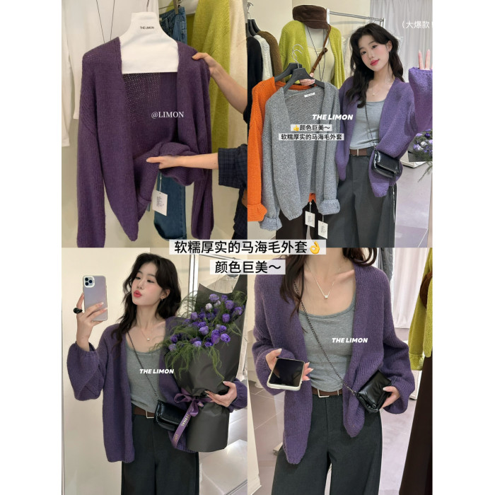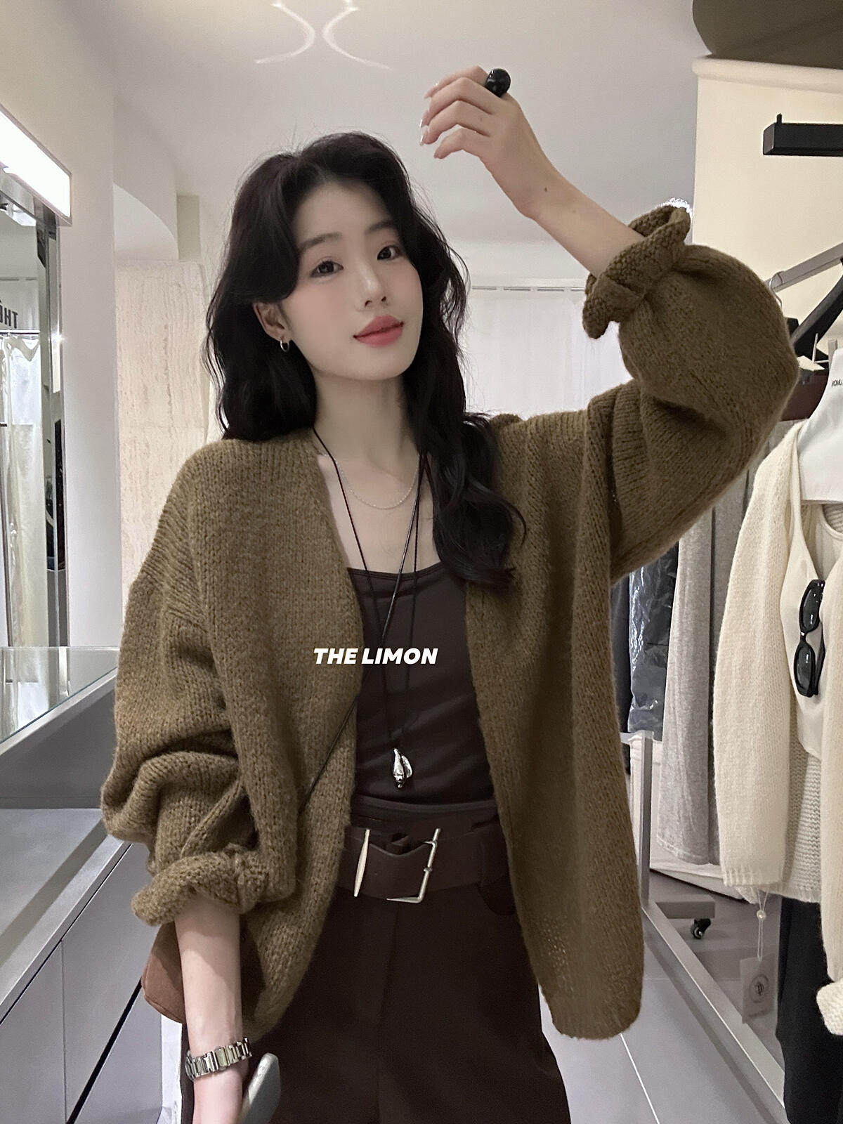 The Limon2025十三行早秋新款時尚百搭慵懶松弛軟糯厚實開衫毛衣