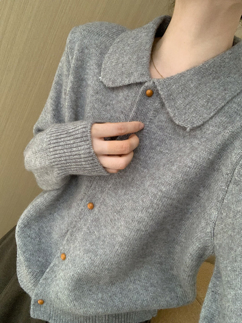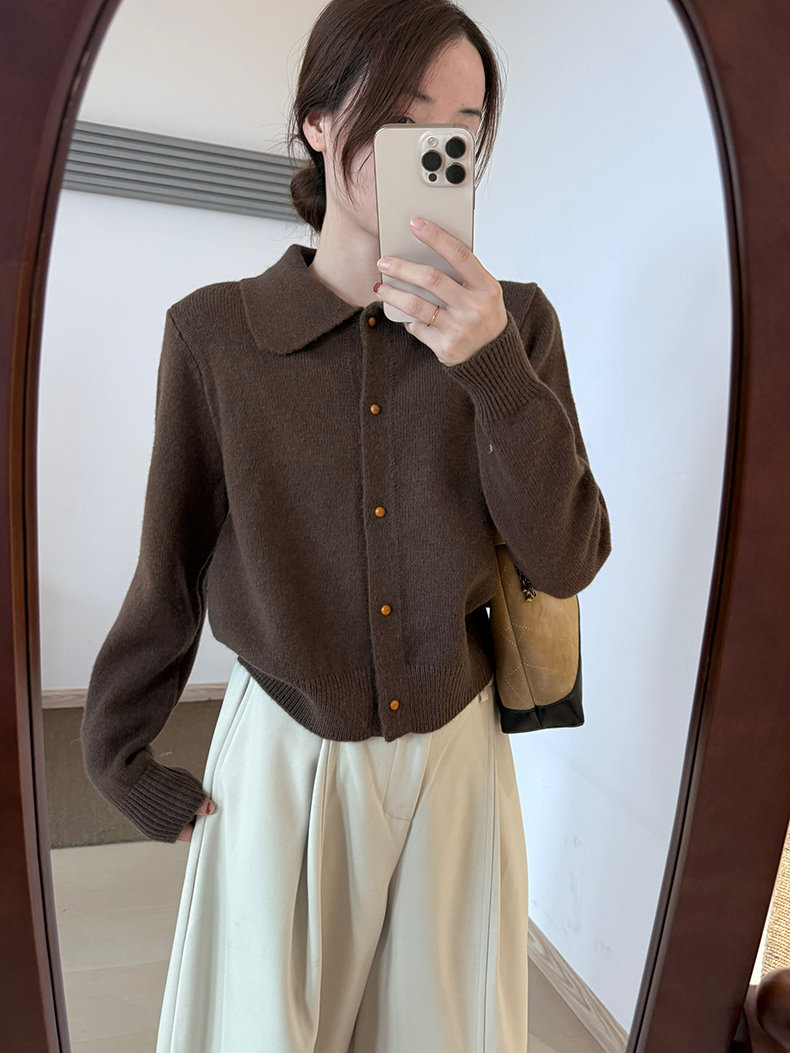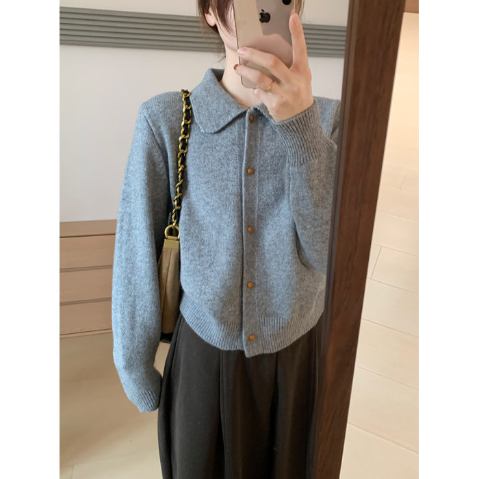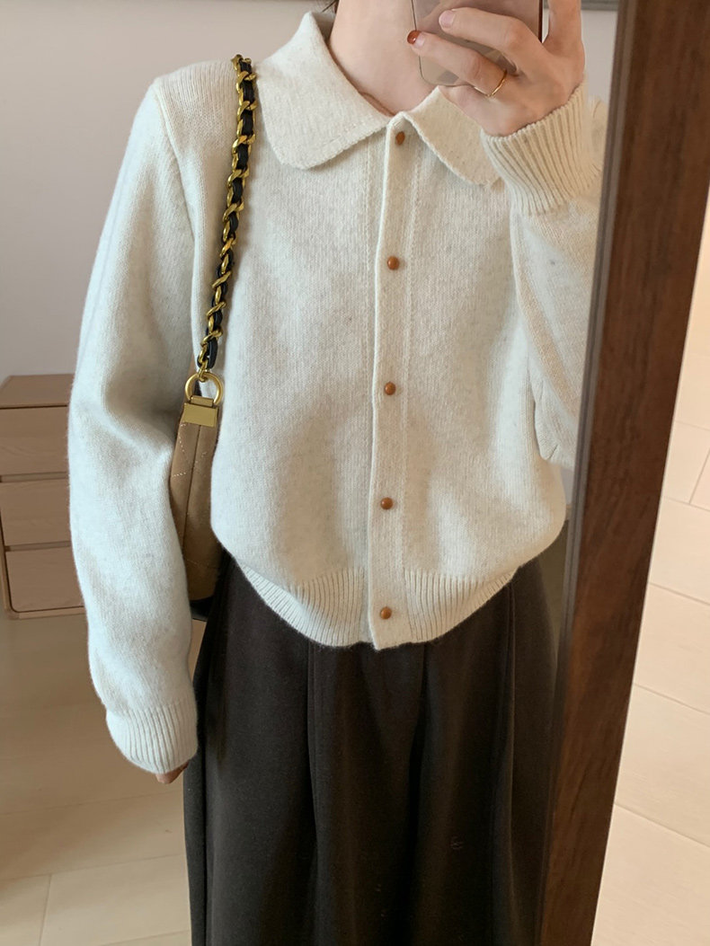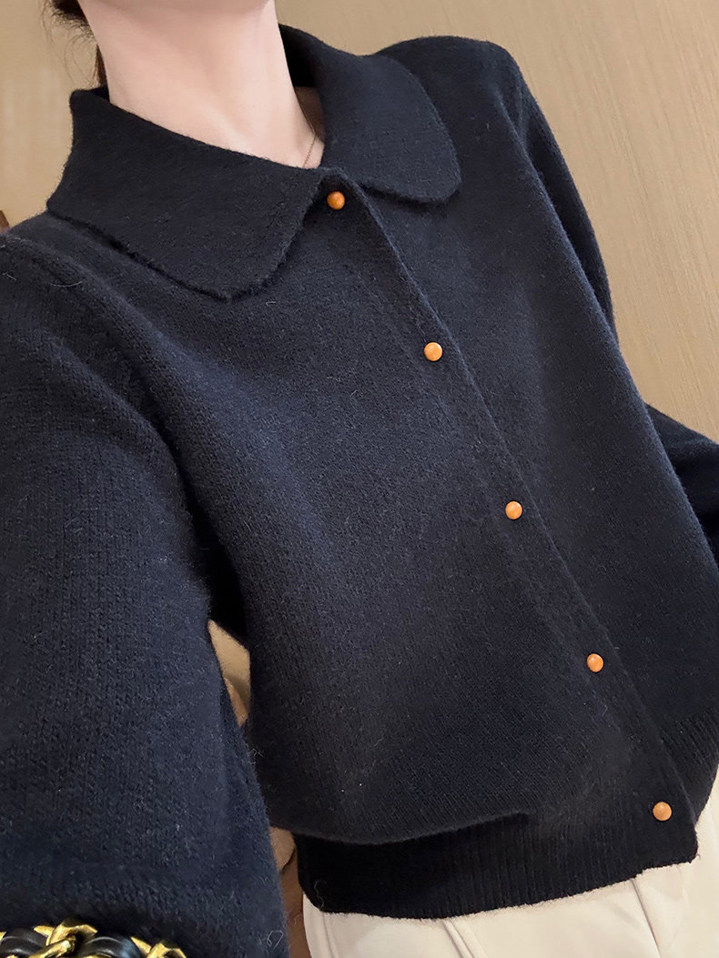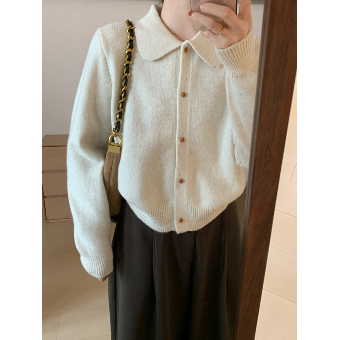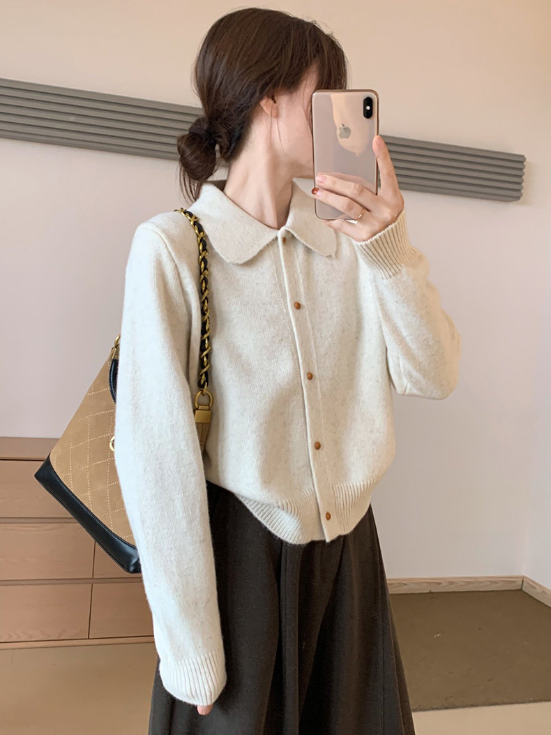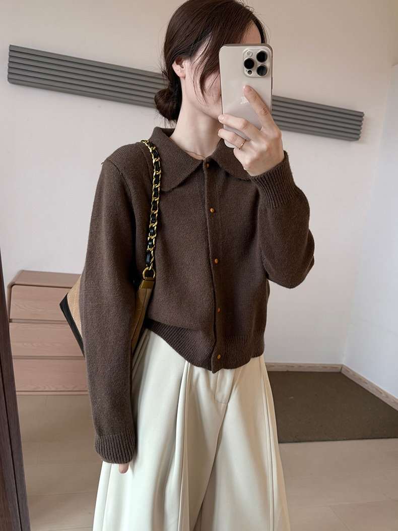 話裡簡約風娃娃領浣熊開衫2025秋季新款韓版繙領顯瘦上衣針織衫女