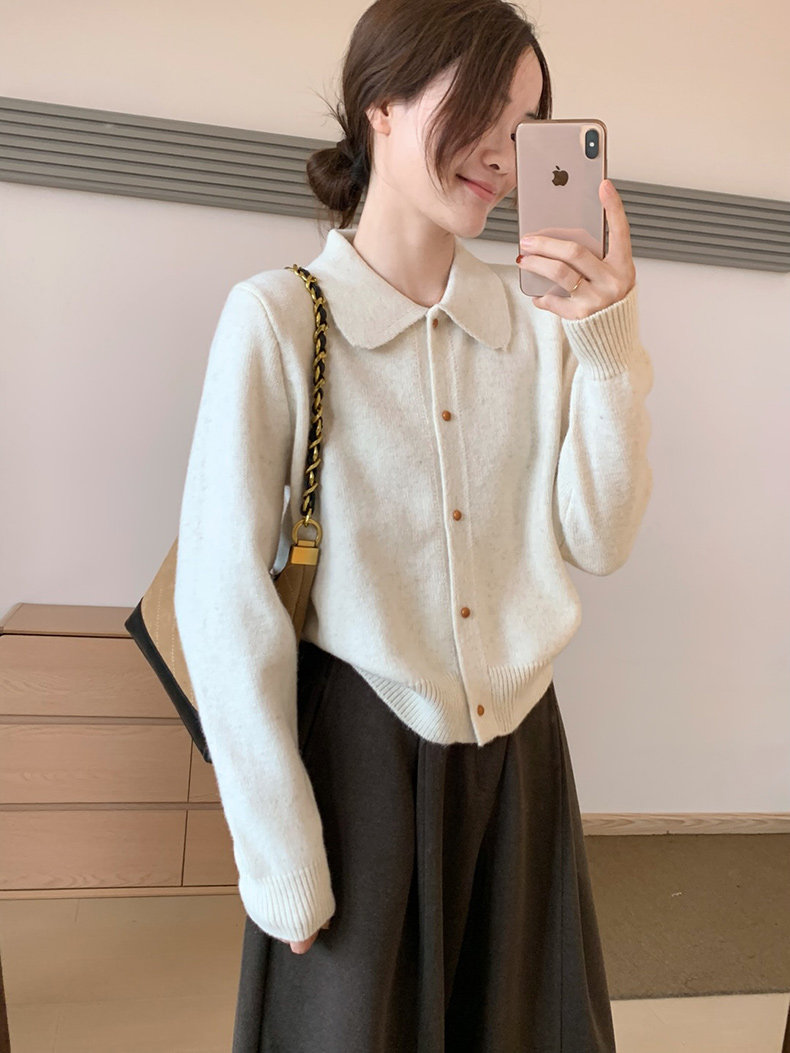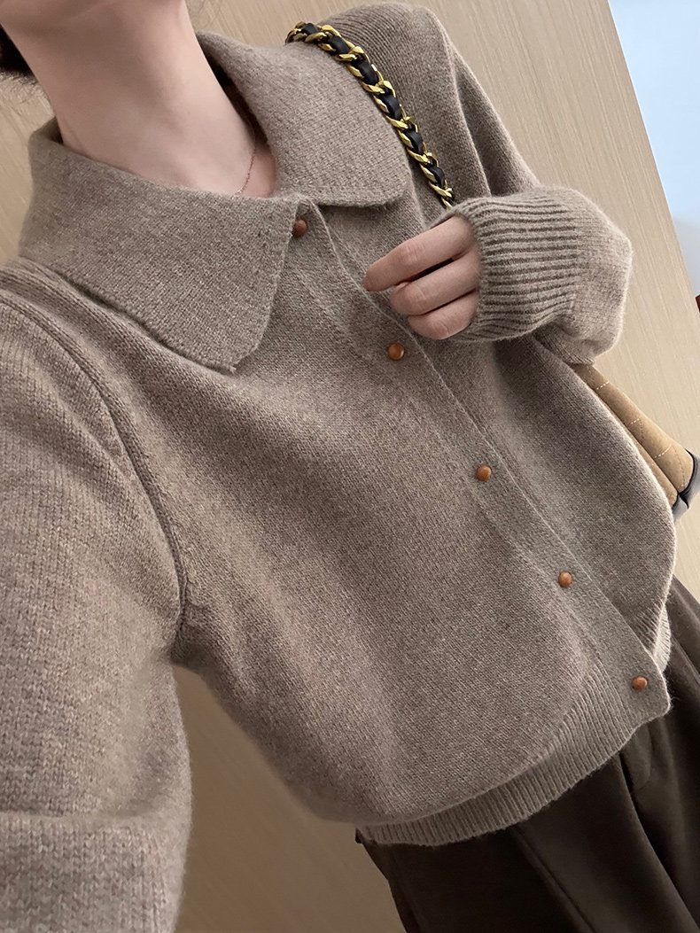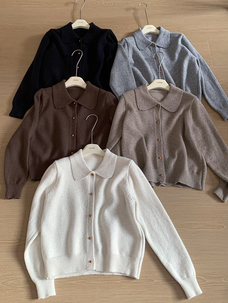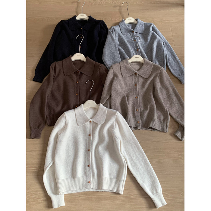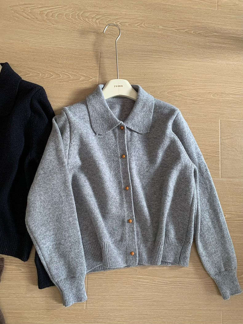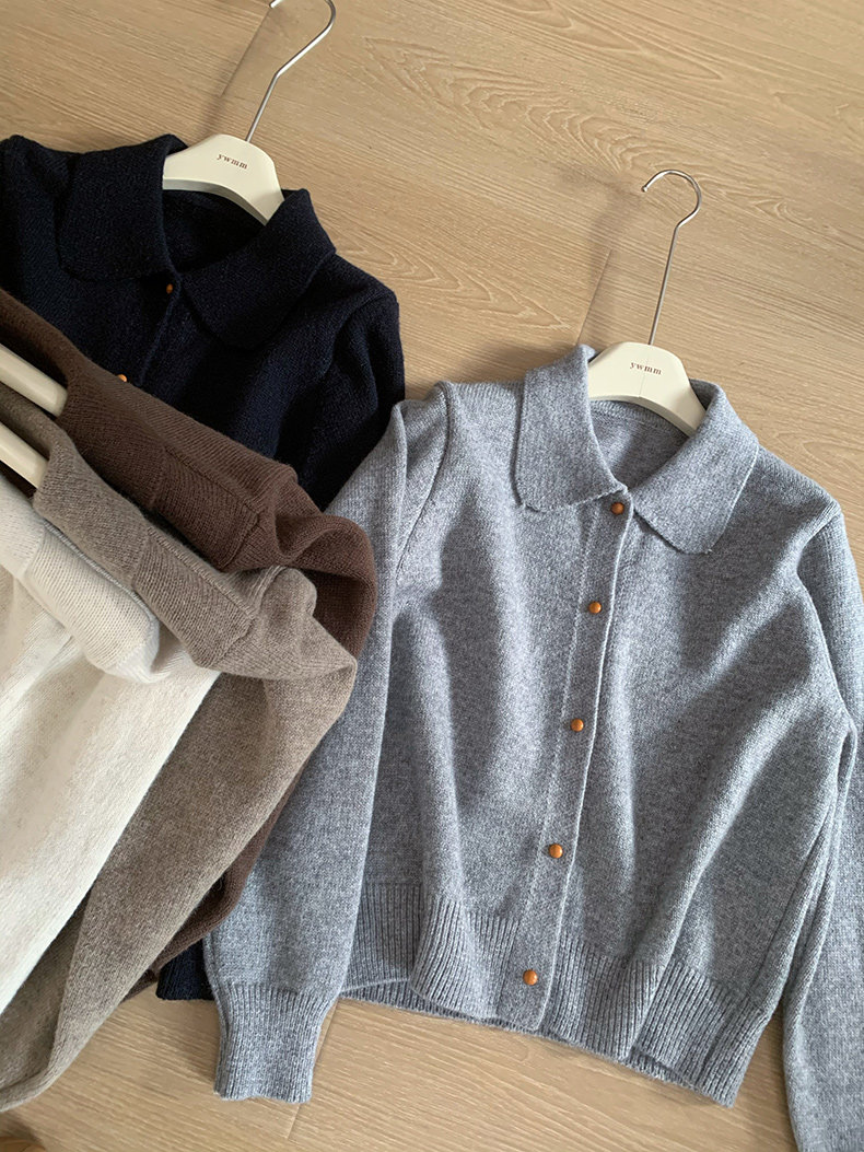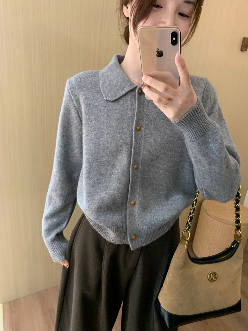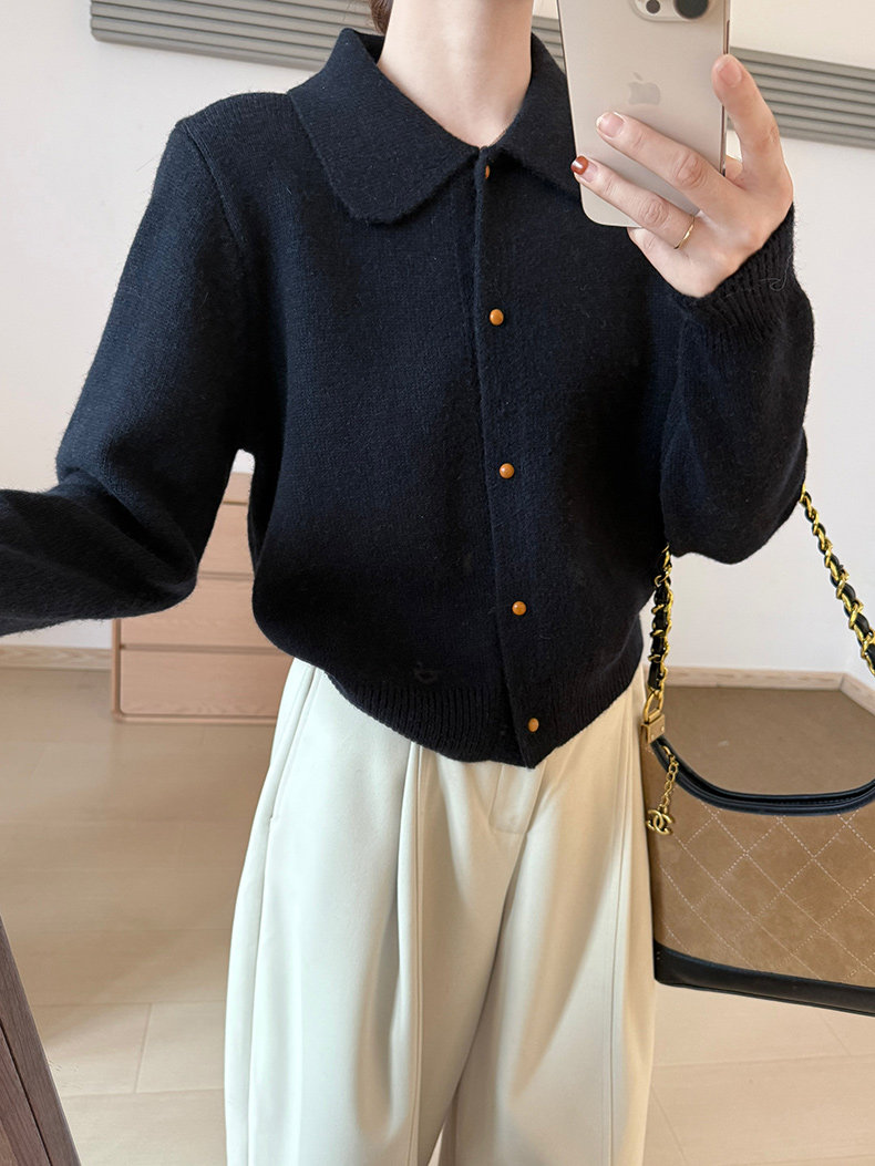 話裡簡約風娃娃領浣熊開衫2025秋季新款韓版繙領顯瘦上衣針織衫女