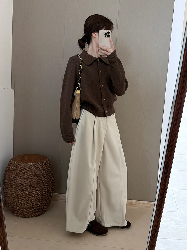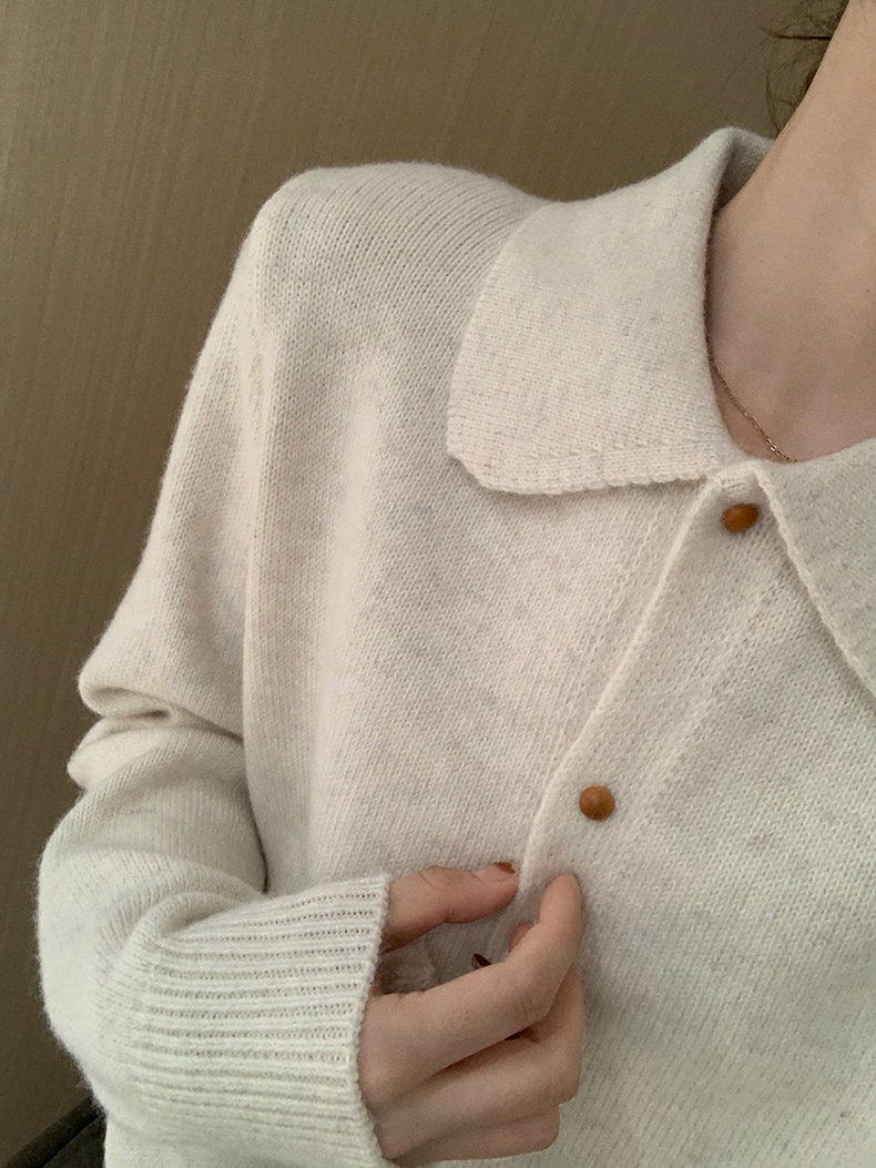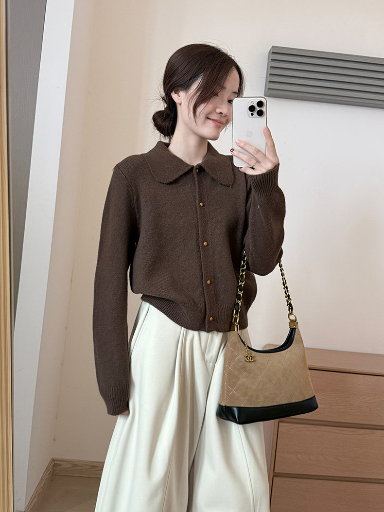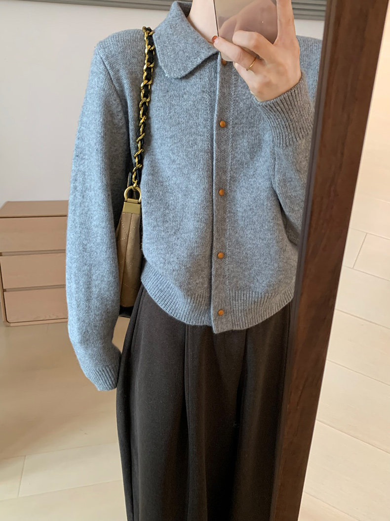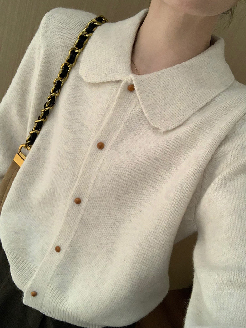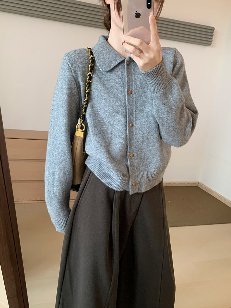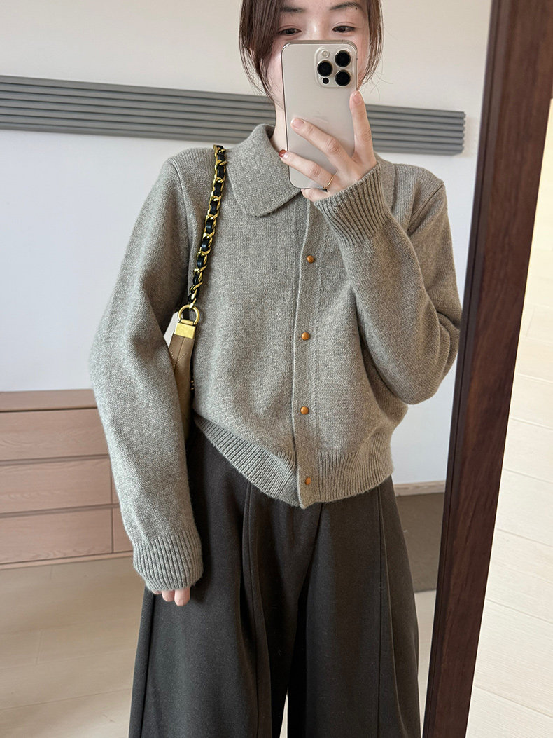 話裡簡約風娃娃領浣熊開衫2025秋季新款韓版繙領顯瘦上衣針織衫女