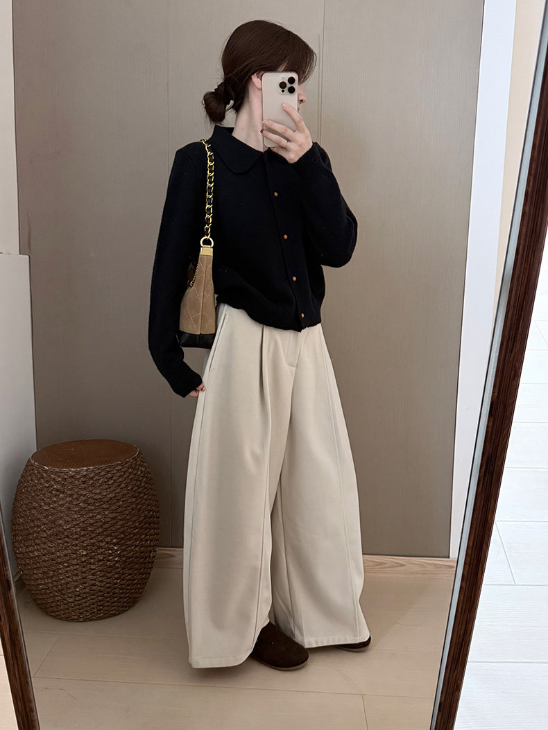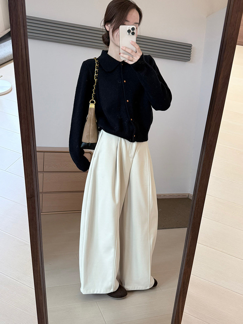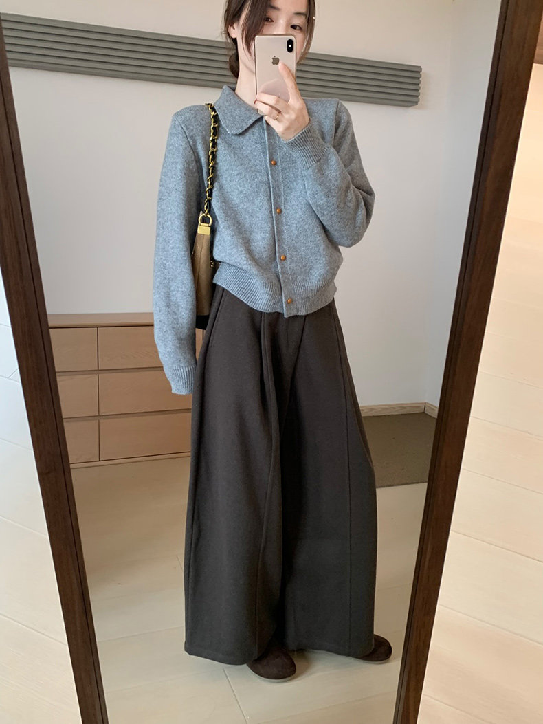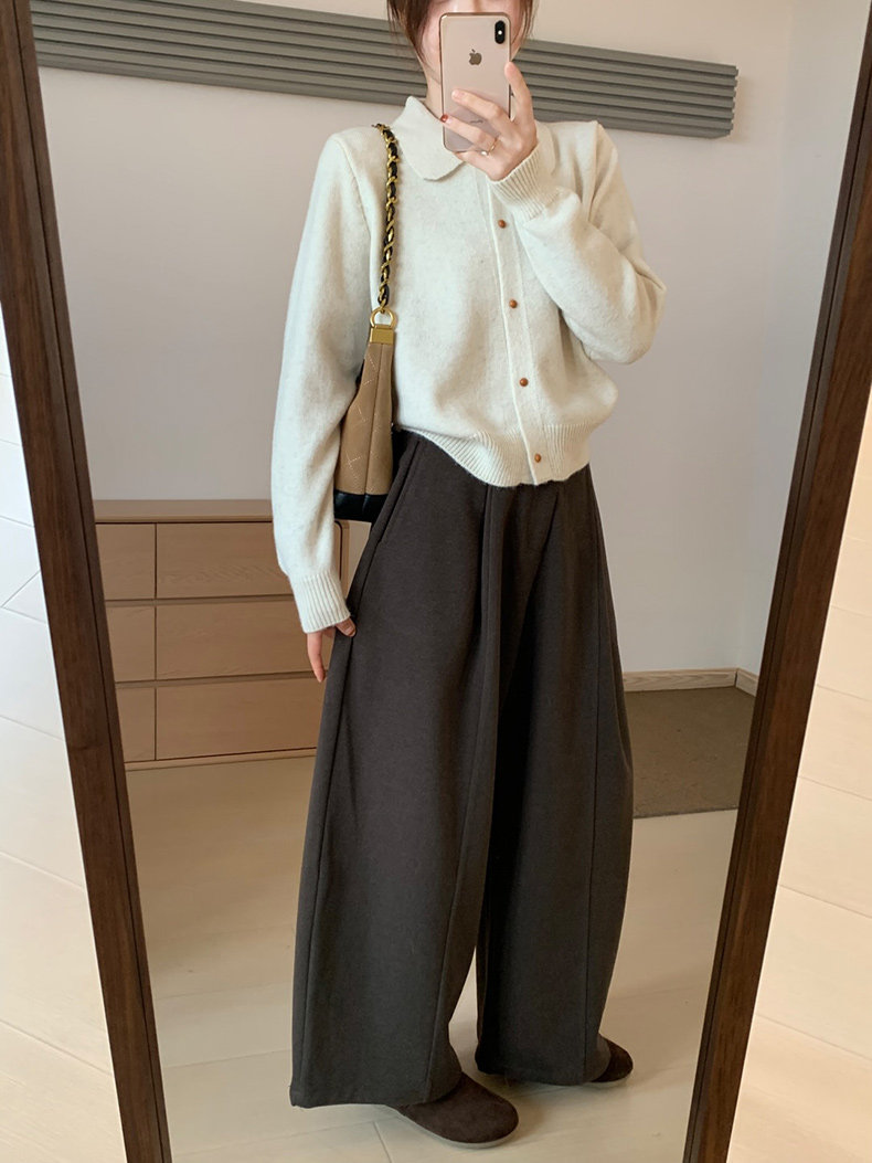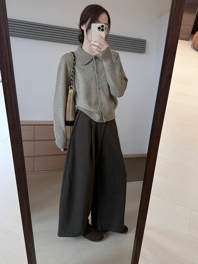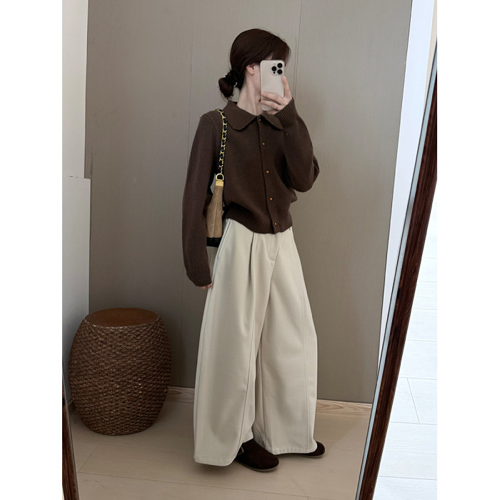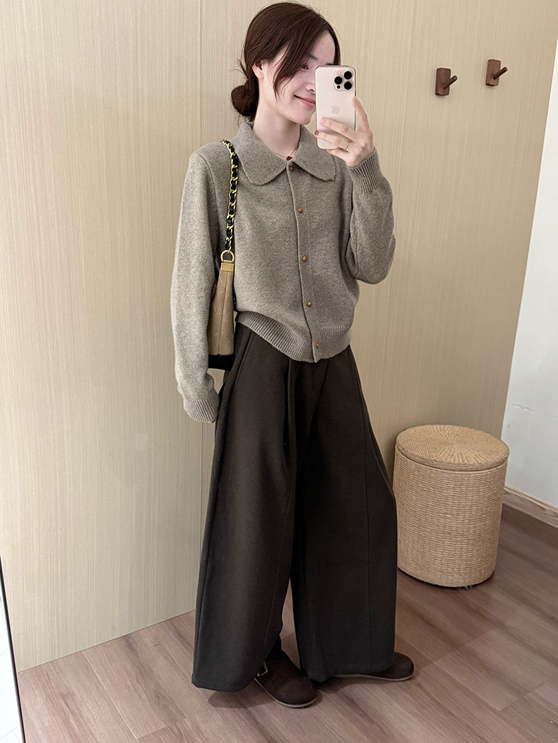 話裡簡約風娃娃領浣熊開衫2025秋季新款韓版繙領顯瘦上衣針織衫女