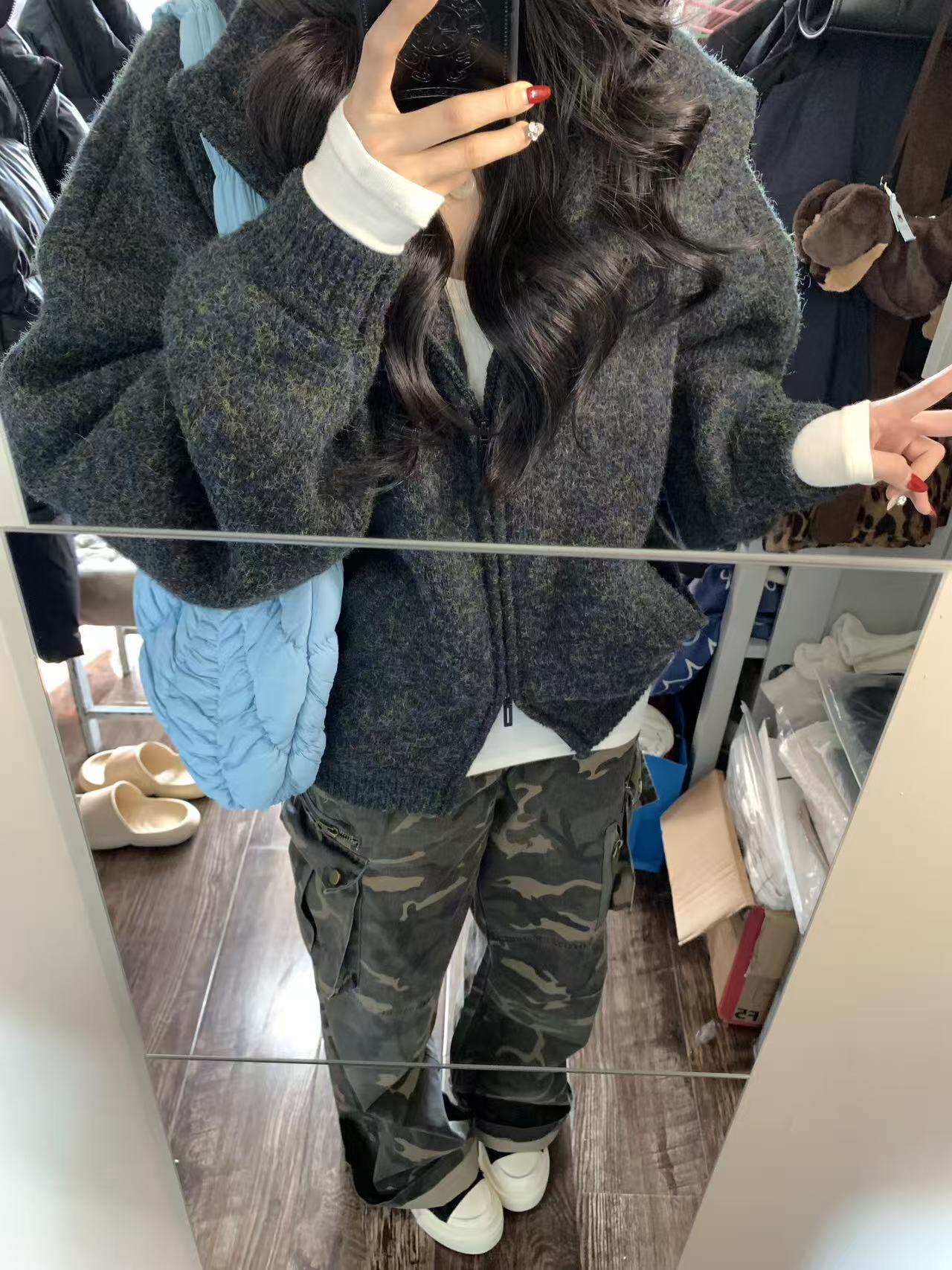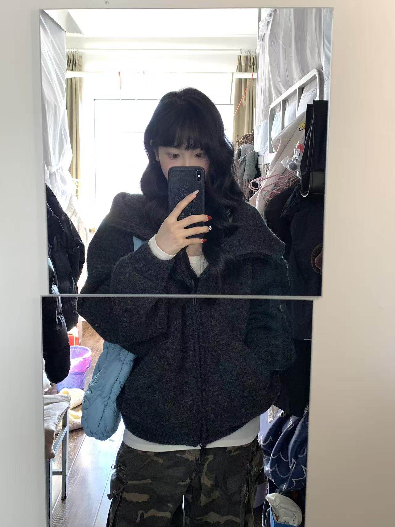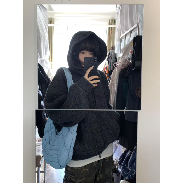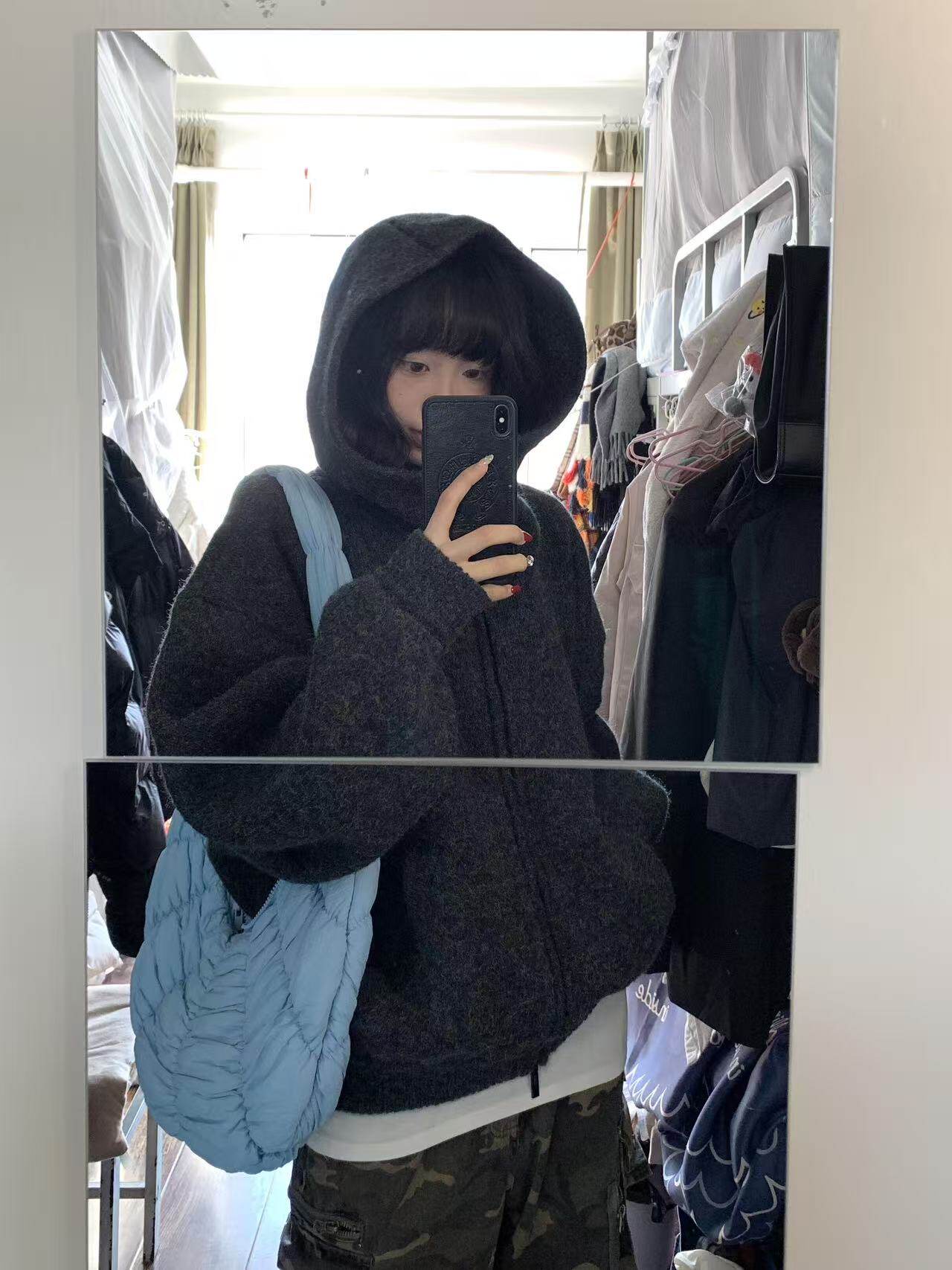 灰色連帽超好看厚毛衣女款2025新款冬季穿搭慵懶高級感針織衫外套