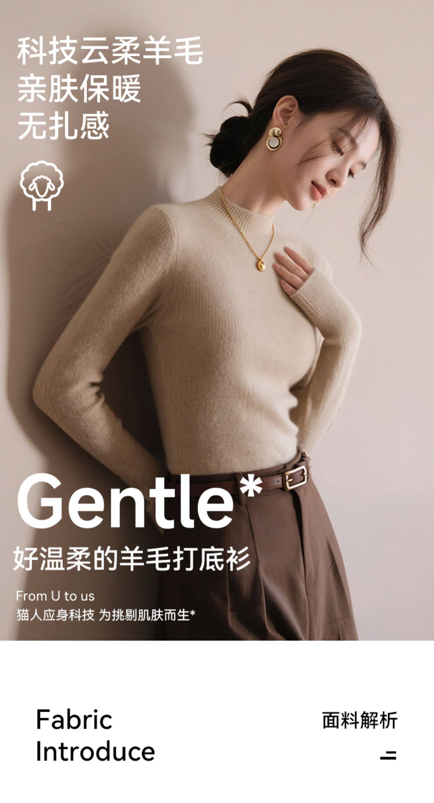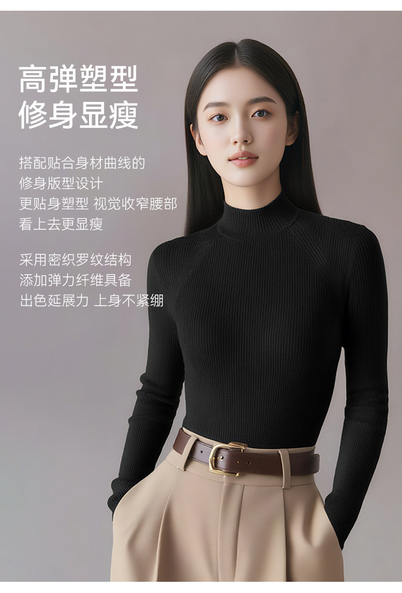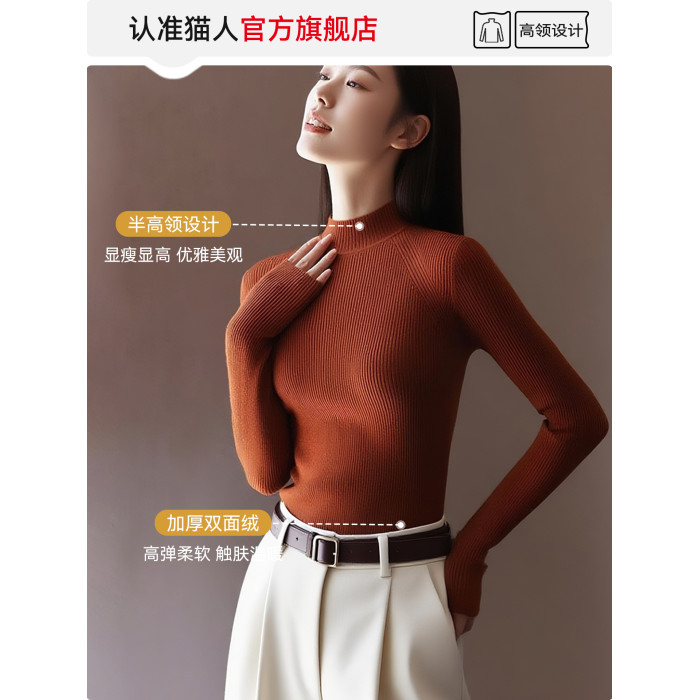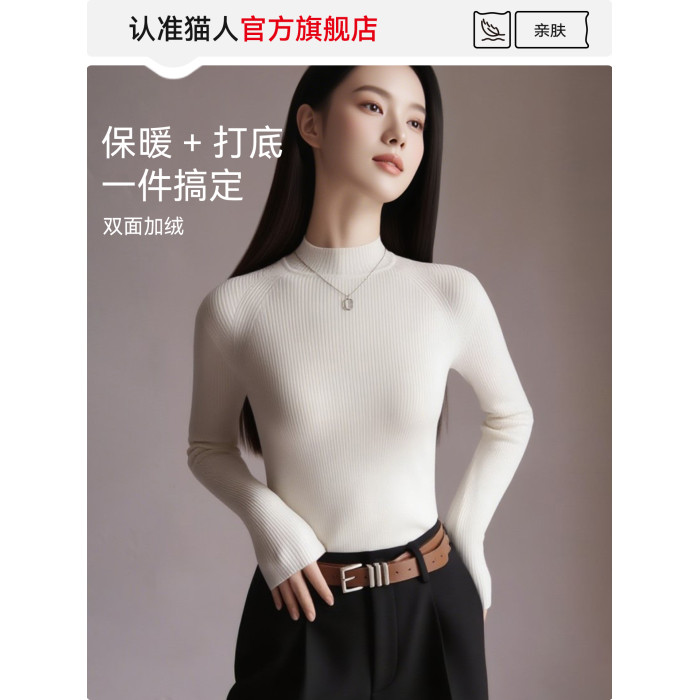 貓人打底衫女半高領黑色內搭高級感秋冬針織毛衣女2026含羊毛上衣