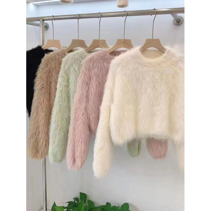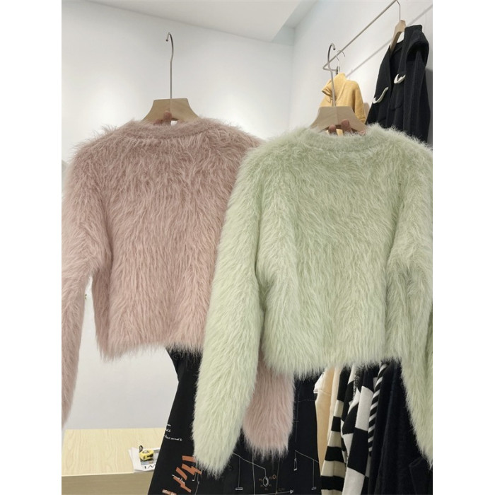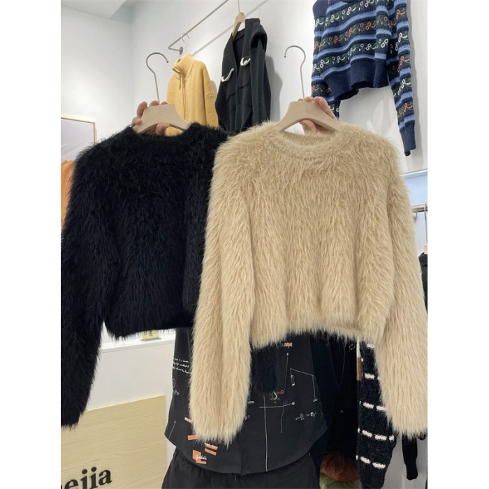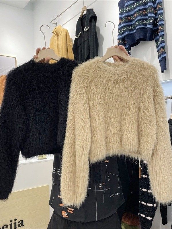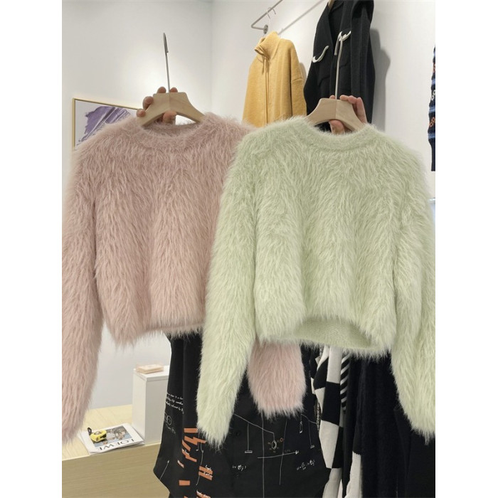 秋冬氣質高級感水貂毛軟糯毛茸茸短款毛衣女春秋甜辣小短款上衣