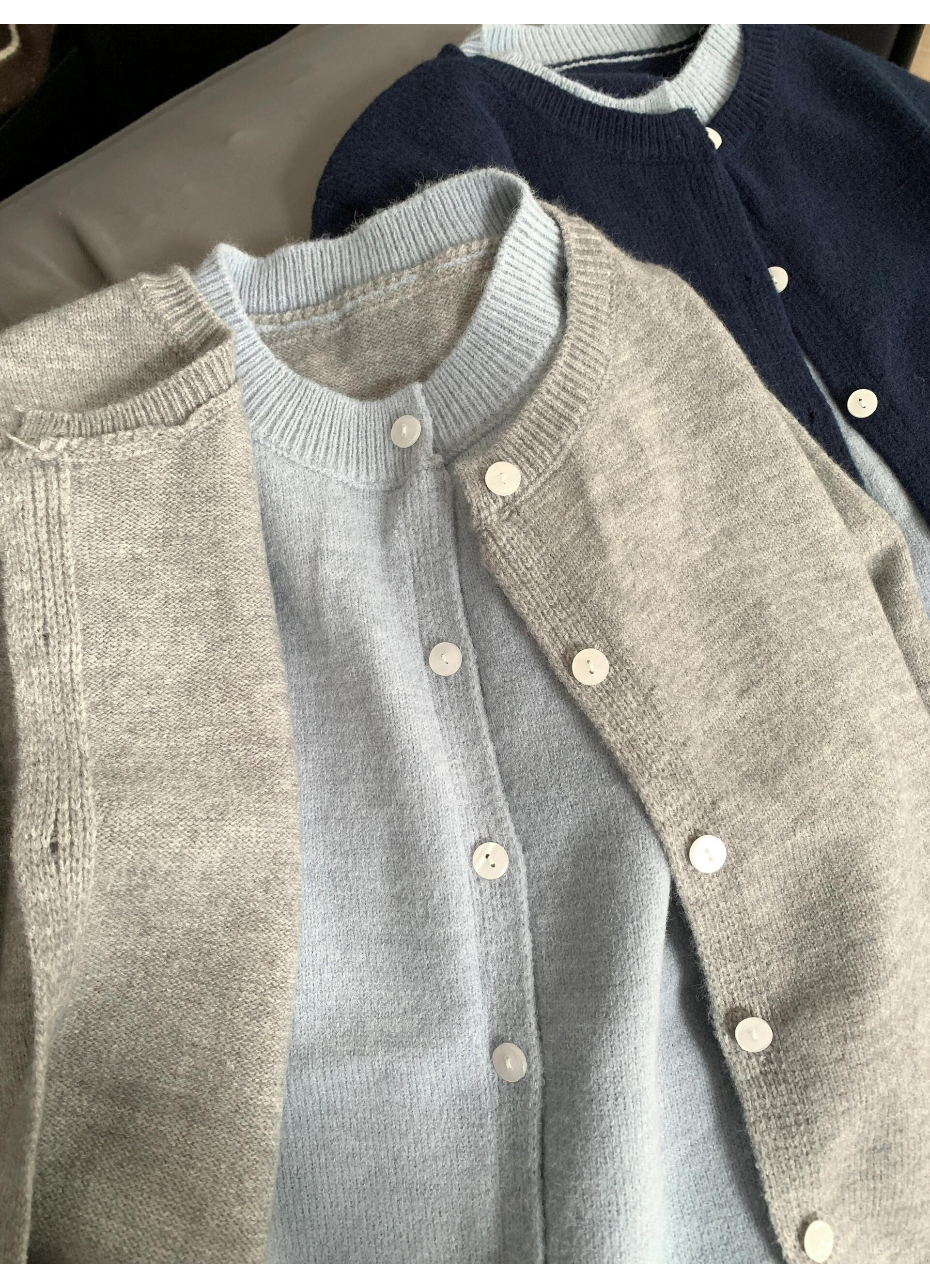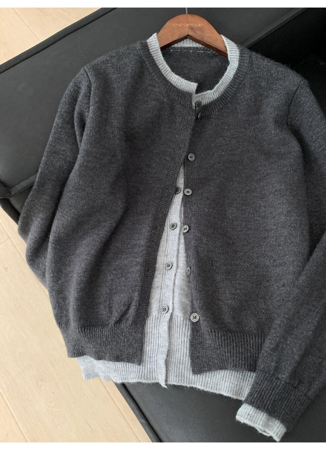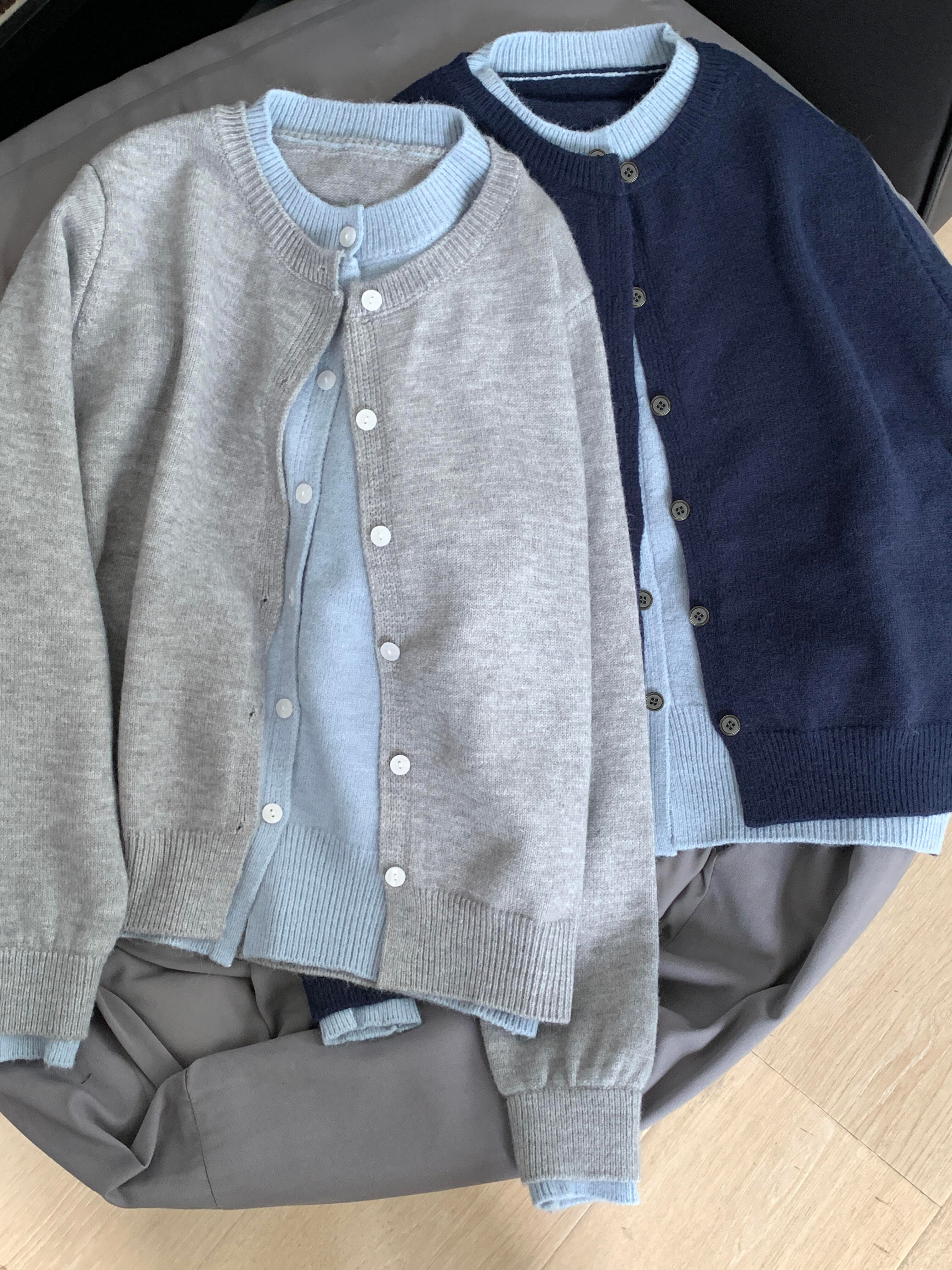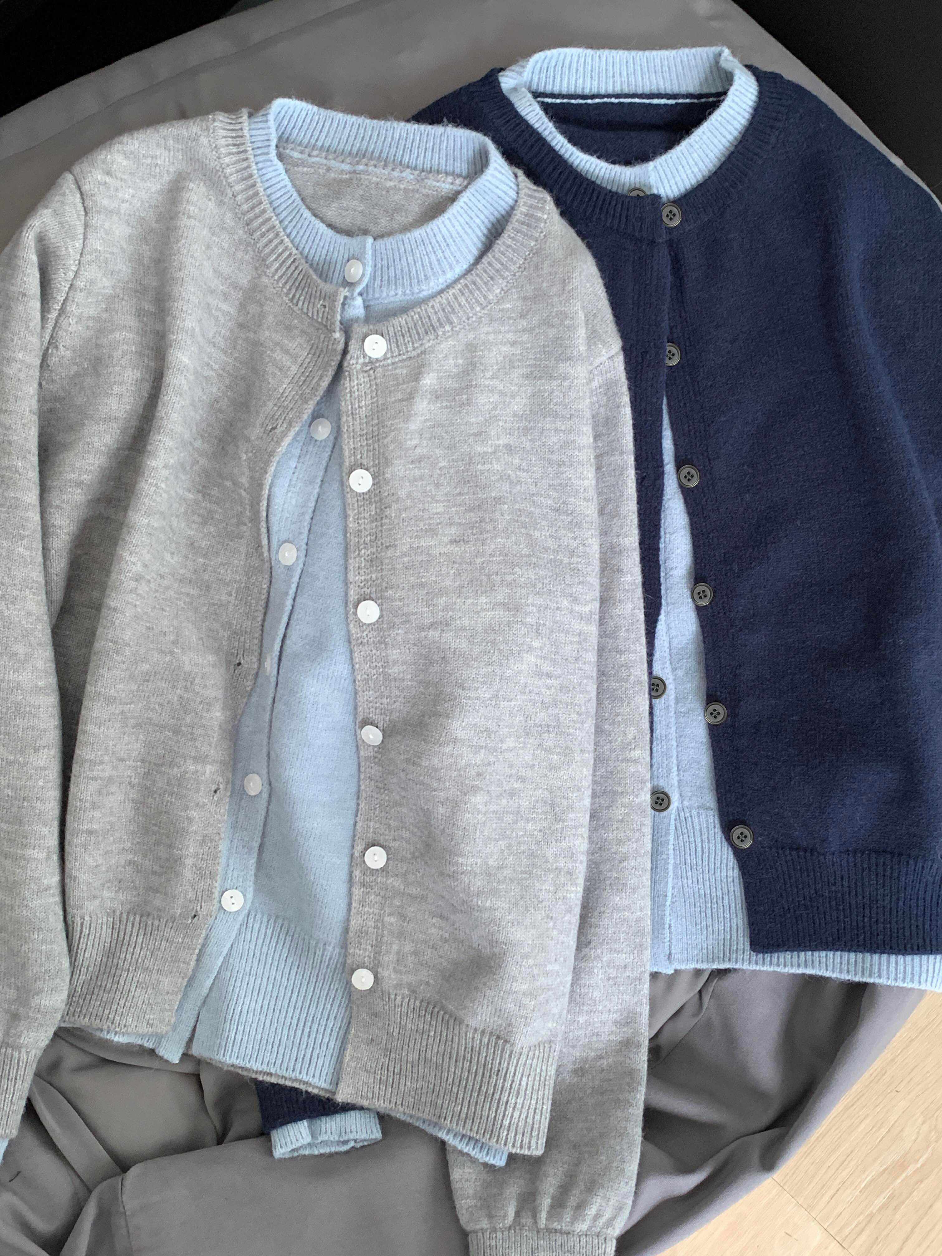 韓系假兩件撞色針織外套開衫女春秋chill慵嬾松弛感毛衣紐釦上衣