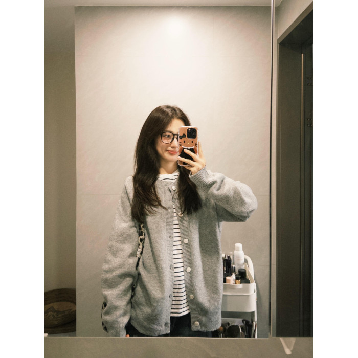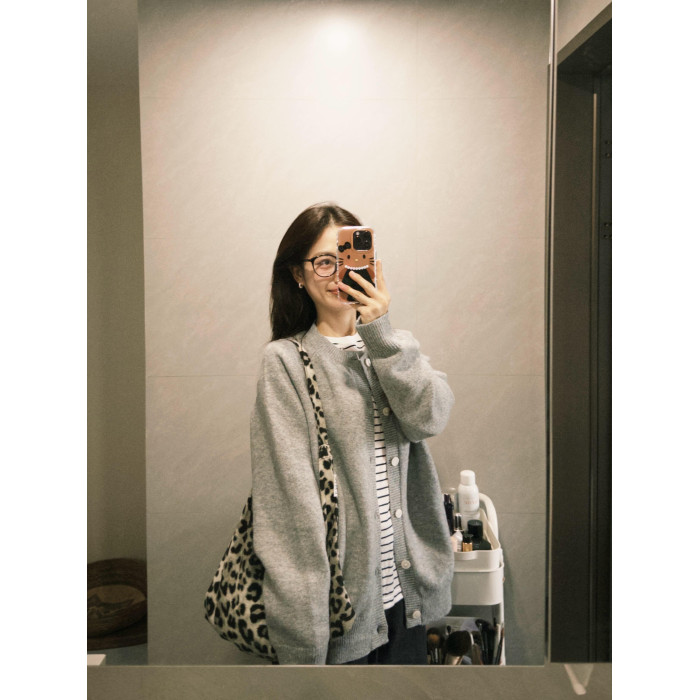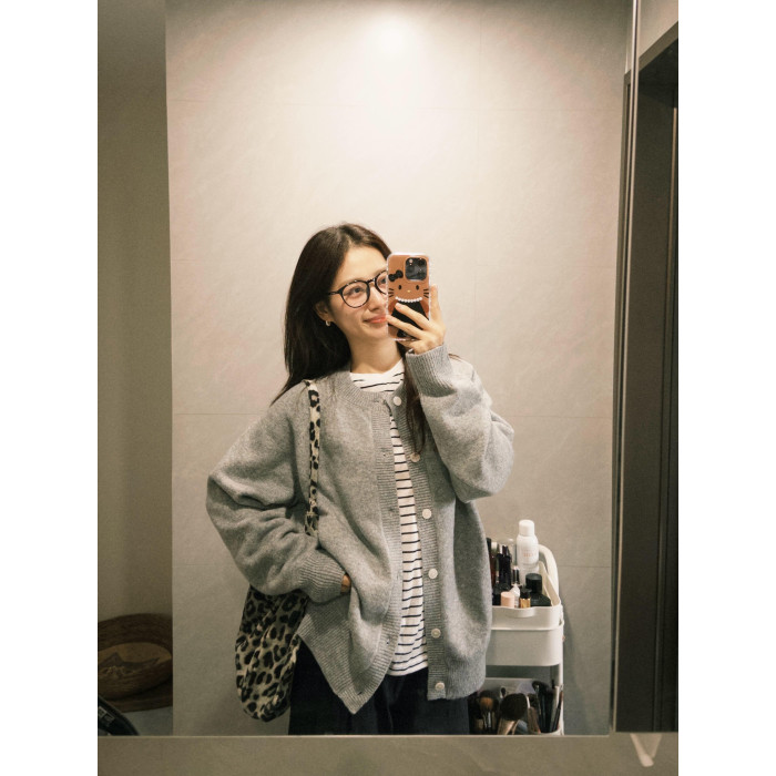 韓系早秋季復古灰色針織開衫毛衣女裝寬松外搭慵懶風休閒外套上衣