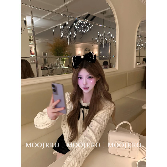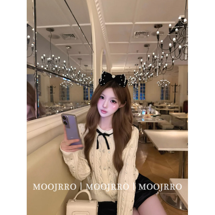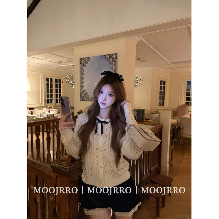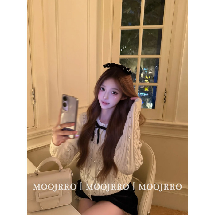 小香風燙鑽長袖針織開衫女秋季千金純欲氣質修身短款毛衣外套上衣