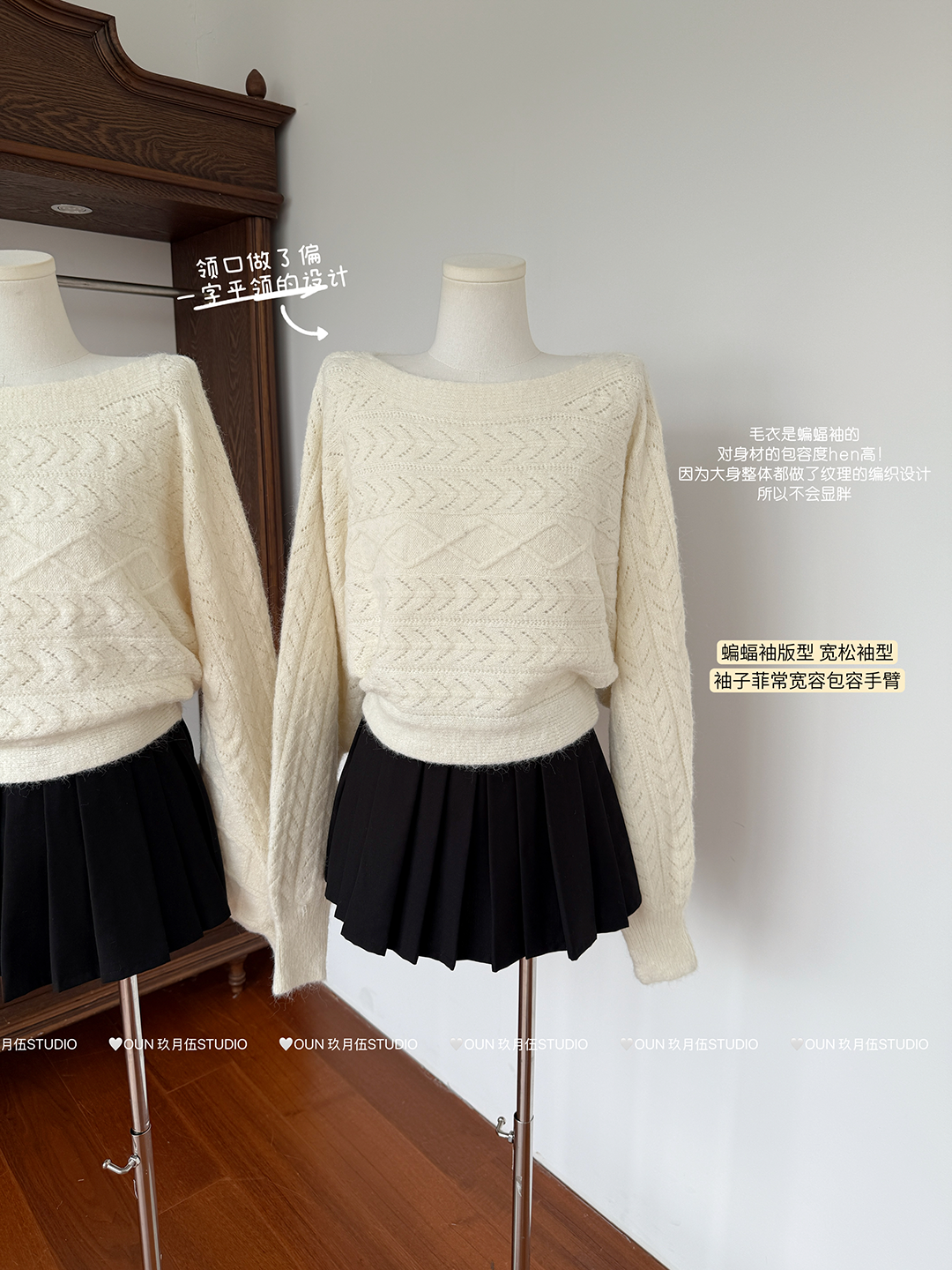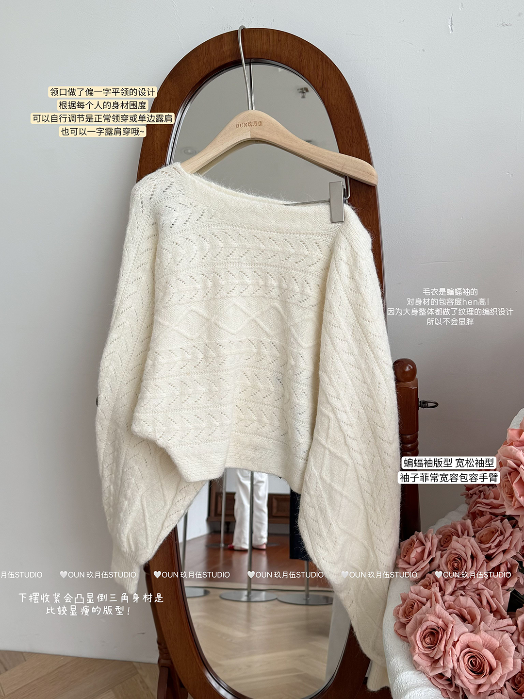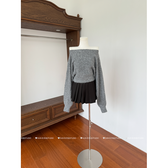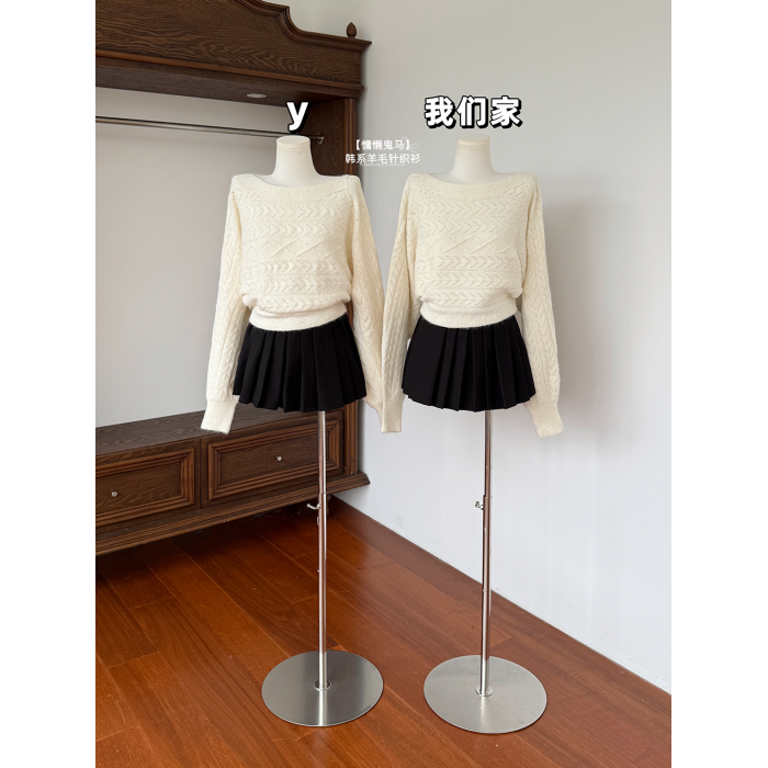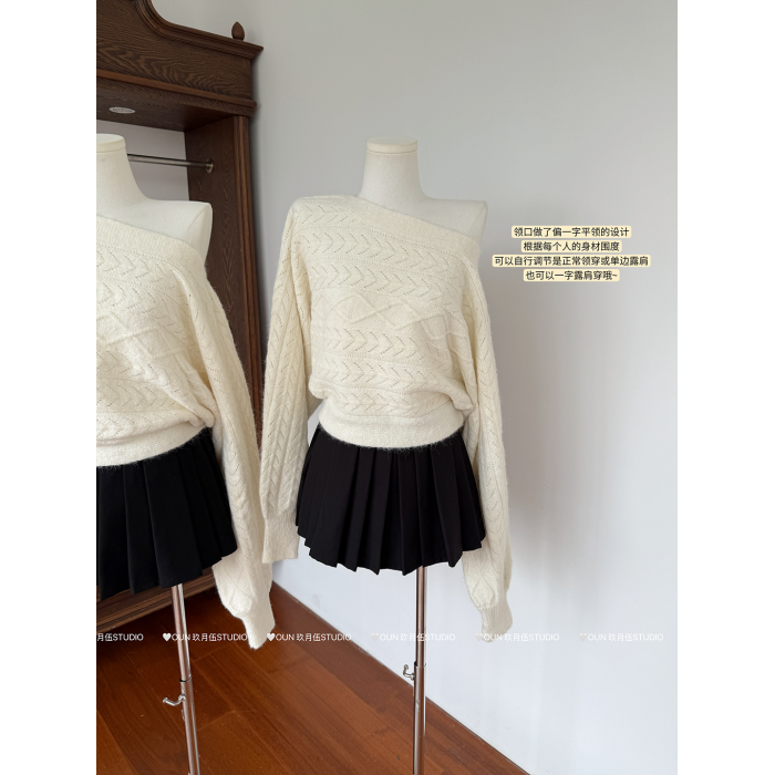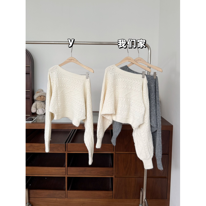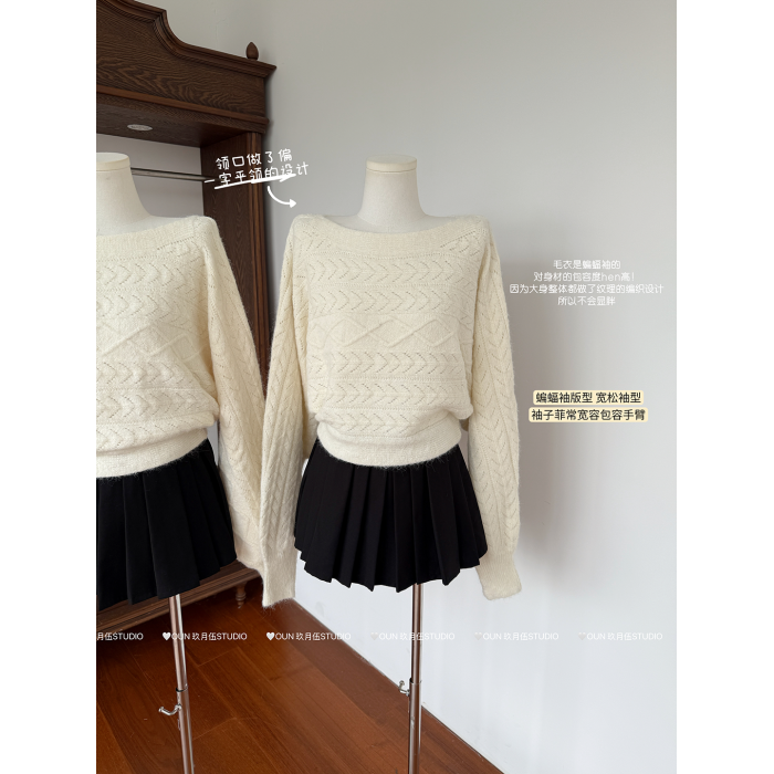 玖月伍【慵懶鬼馬】秋季韓系羊毛針織衫女蝙蝠袖長袖毛衣百搭上衣