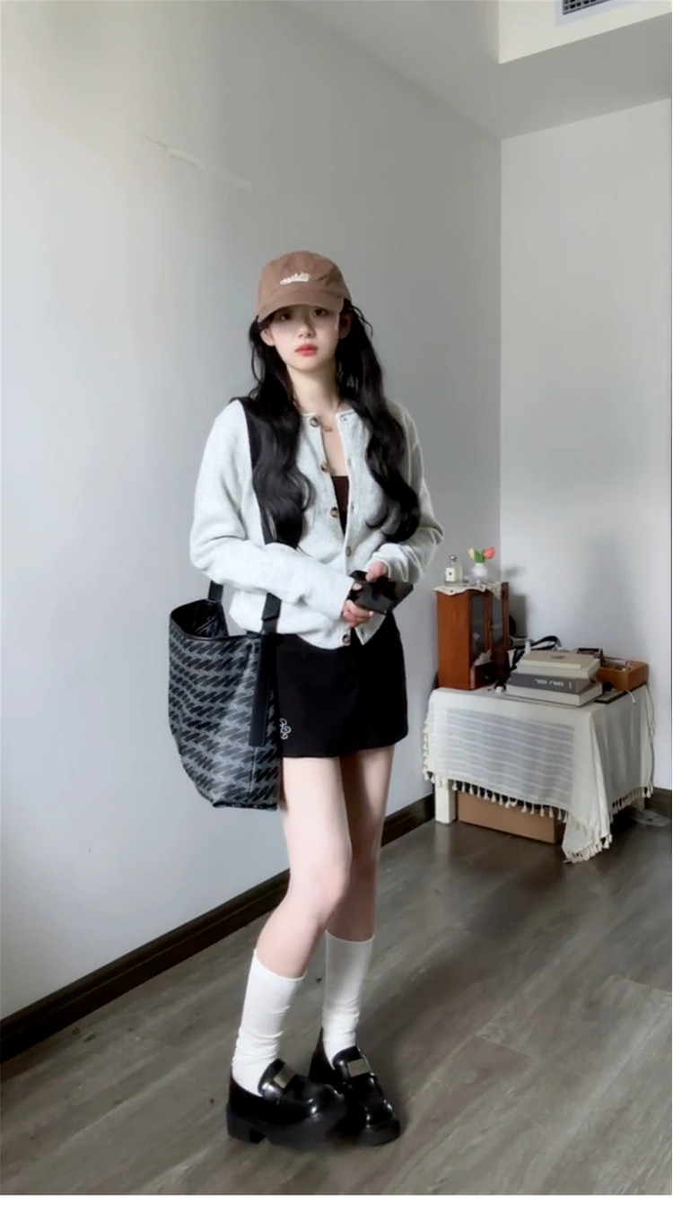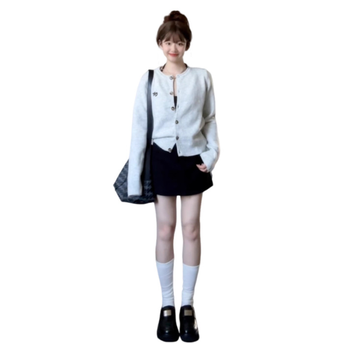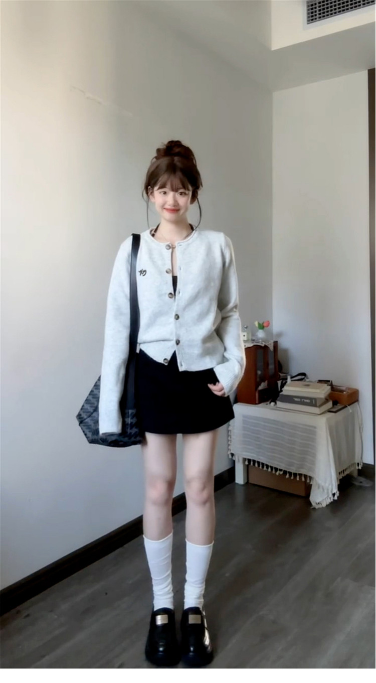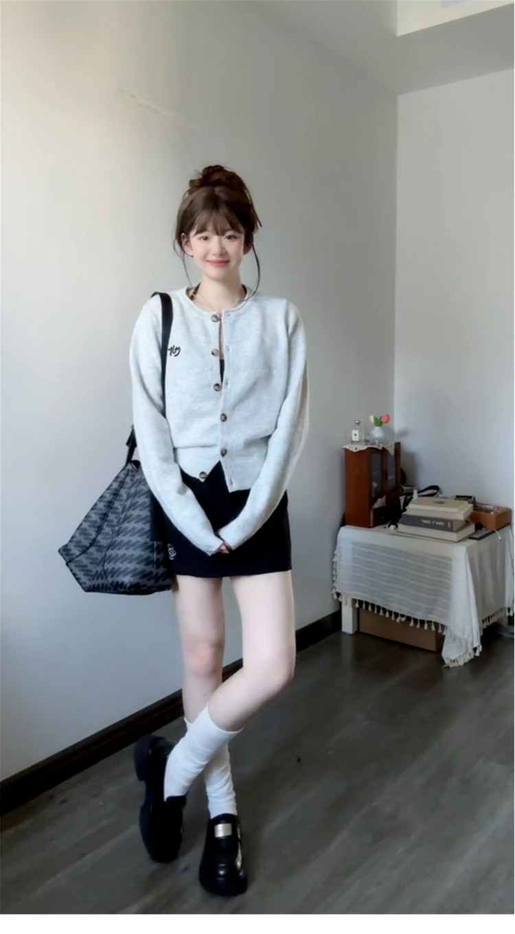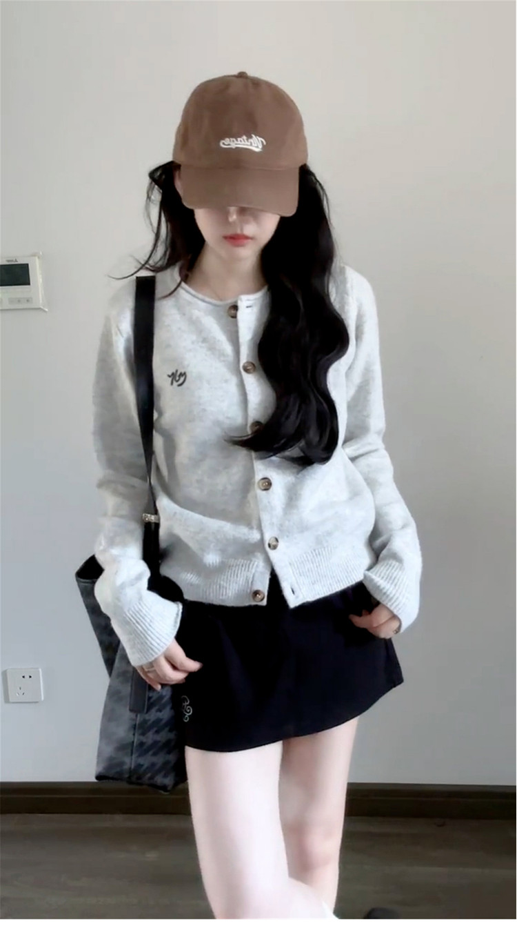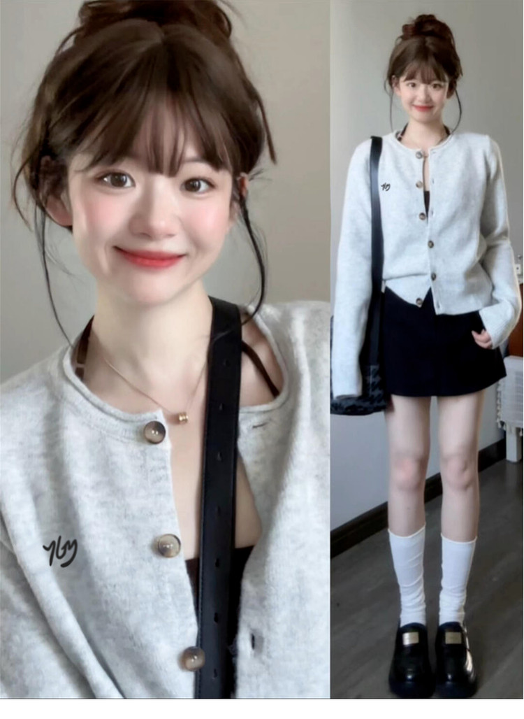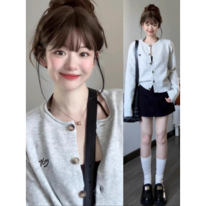 韓系休閒慵嬾風灰色針織開衫女秋季2025新款氣質顯瘦外搭長袖上衣