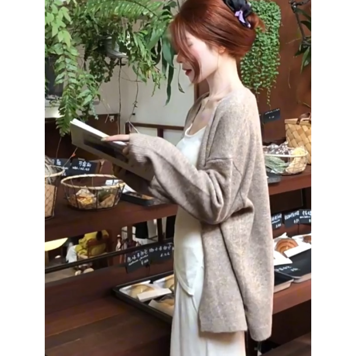 慵嬾松弛感韓系毛衣外套針織開衫女2025春秋季新款寬鬆溫柔風上衣