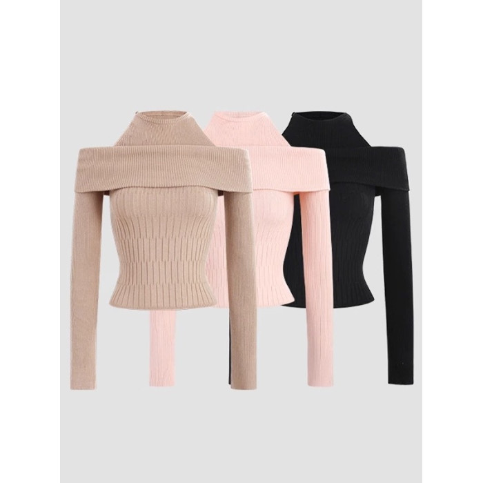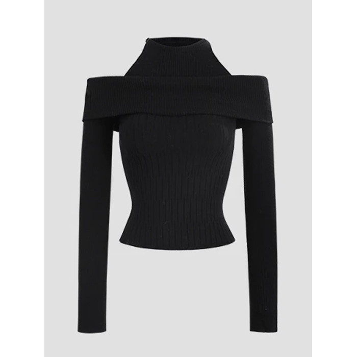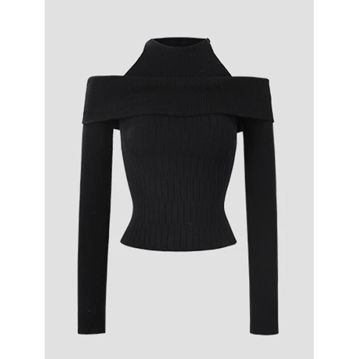假兩件韓系針織衫女早秋季2025新款chic毛衣內搭打底衫一字肩上衣