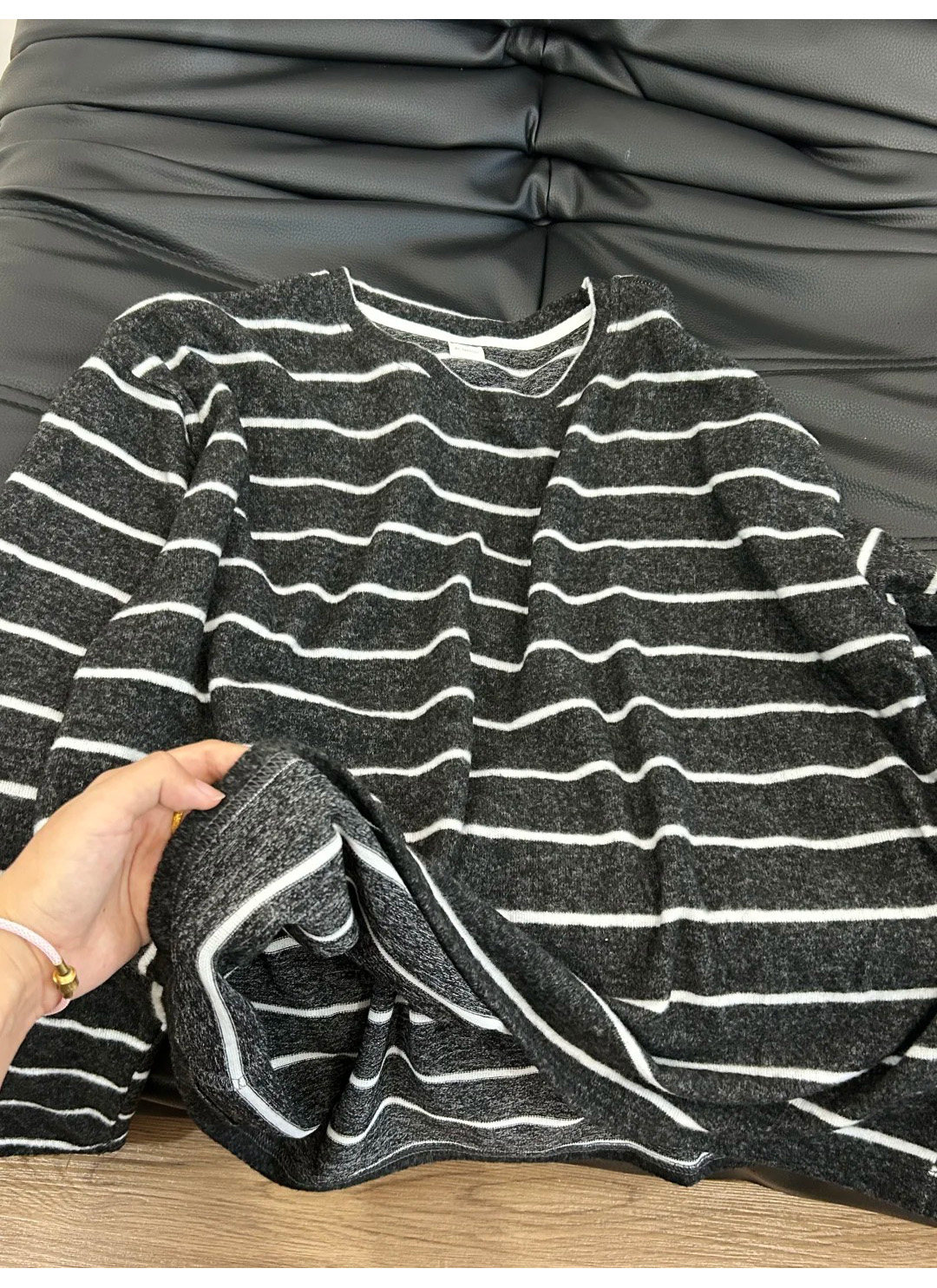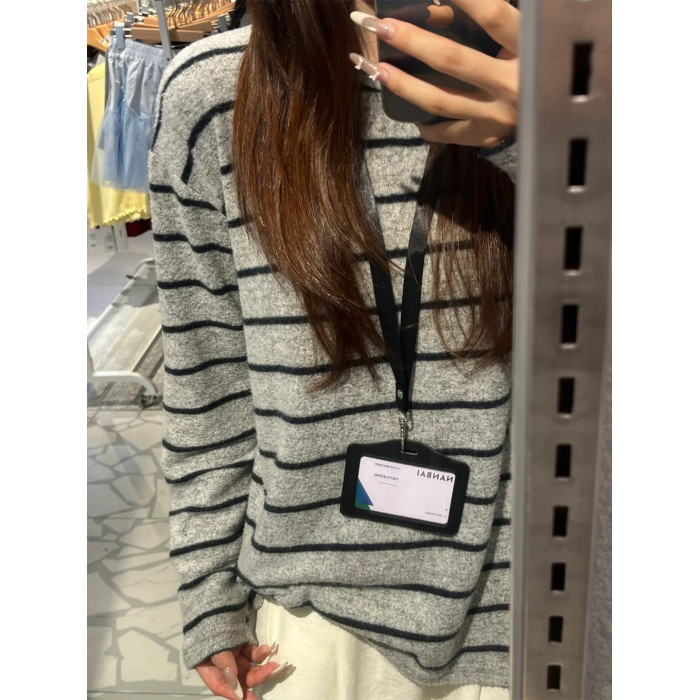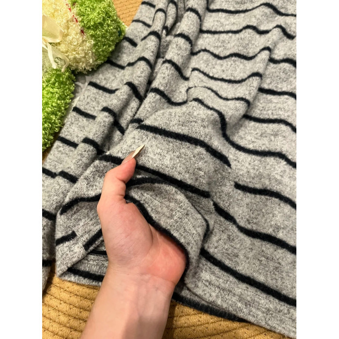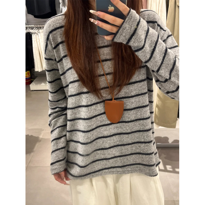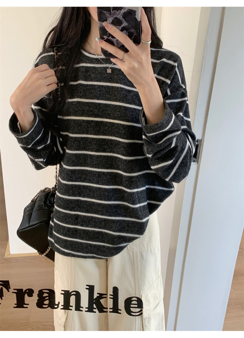 垂感軟糯加厚磨毛T恤女秋季松弛感針織內搭條紋撞色寬松長袖上衣