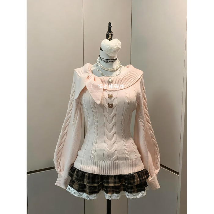 原創秋冬古早vintage毛衣奈奈風早秋學院風兔耳套頭收腰針織衫女
