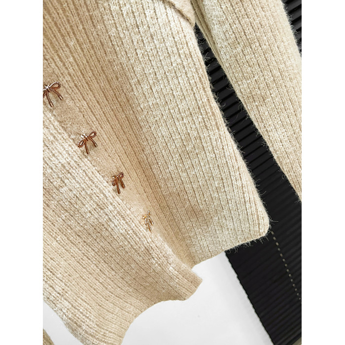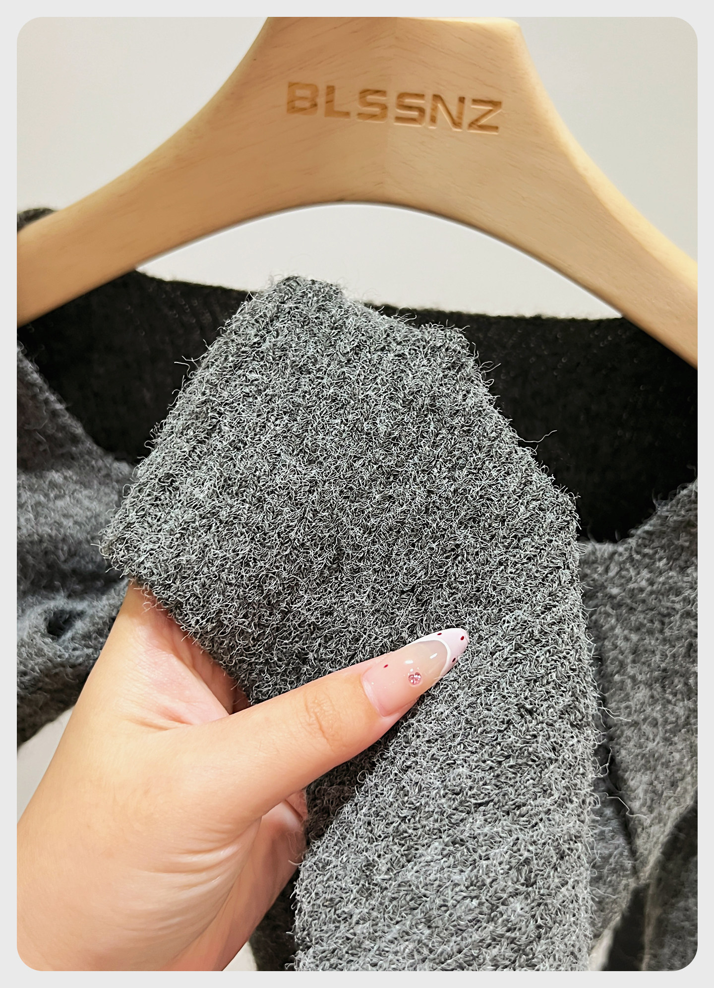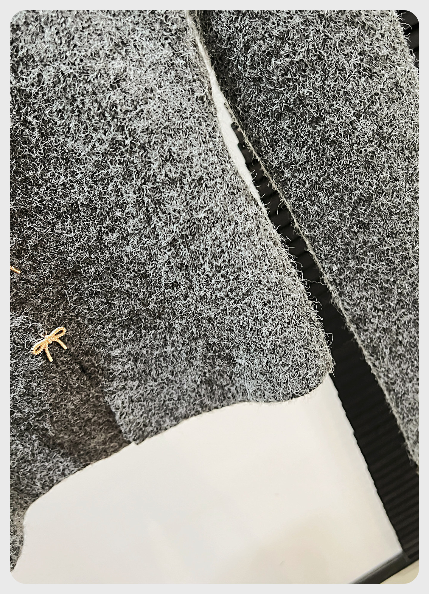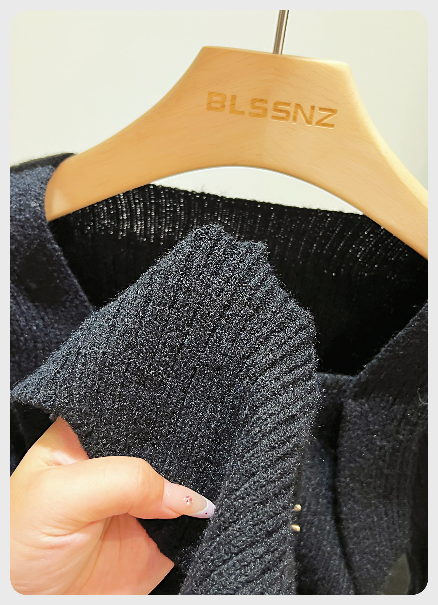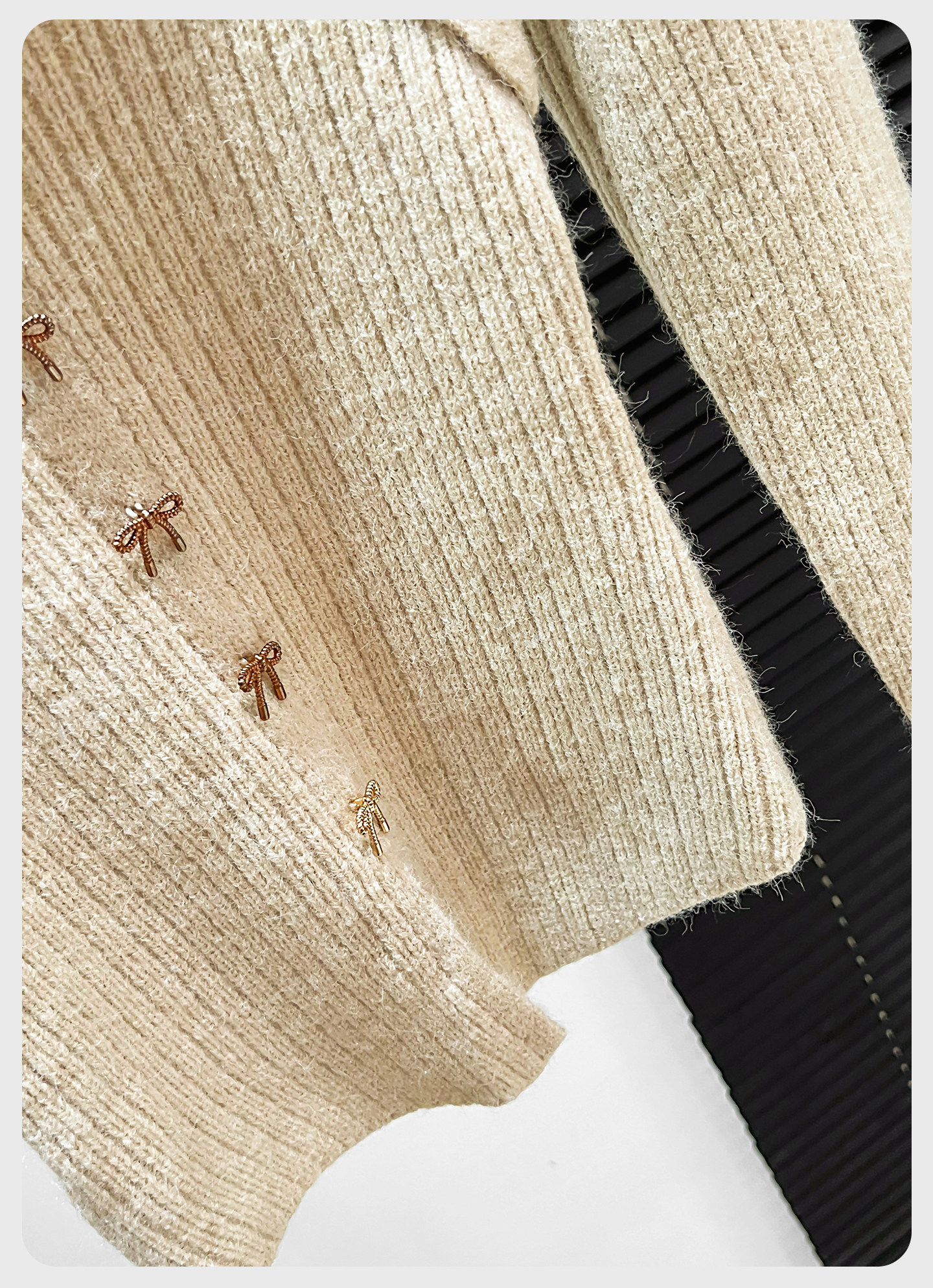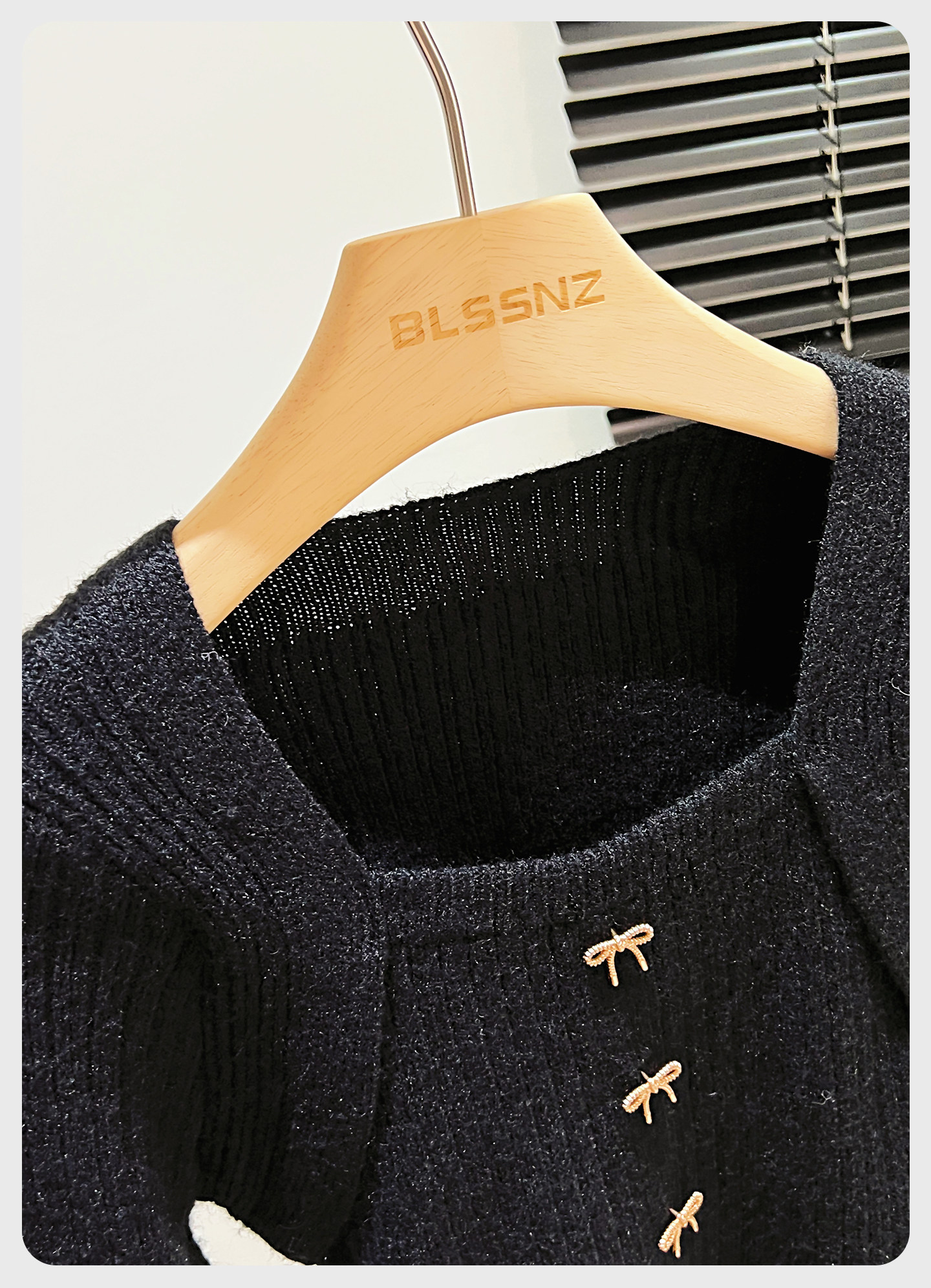 復古灰色蝴蝶結方領針織衫毛衣女秋冬季修身打底衫女內搭針織上衣