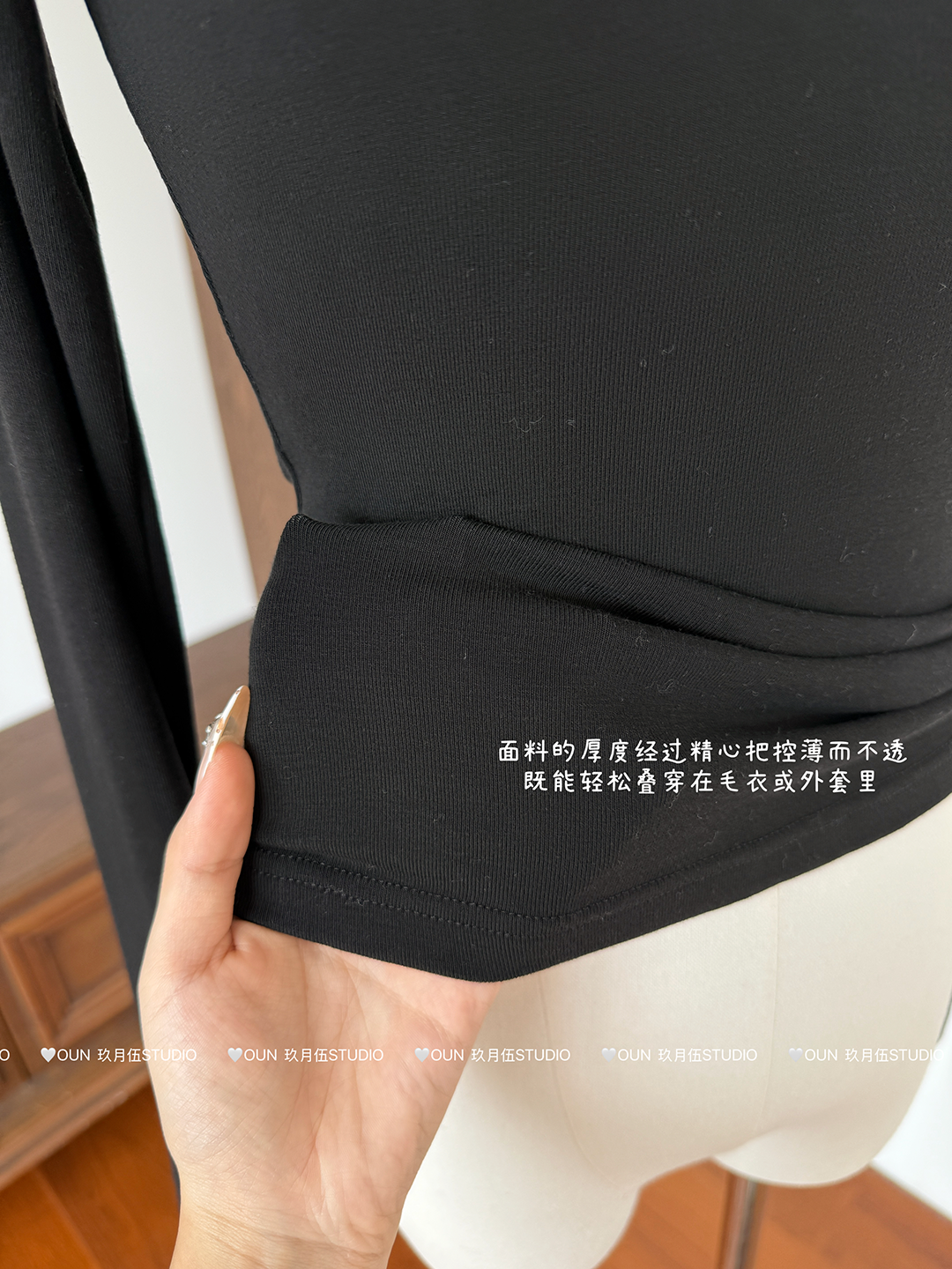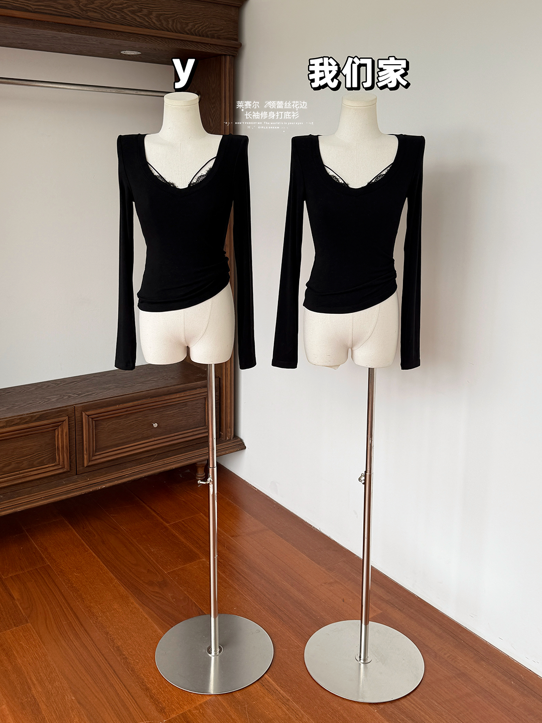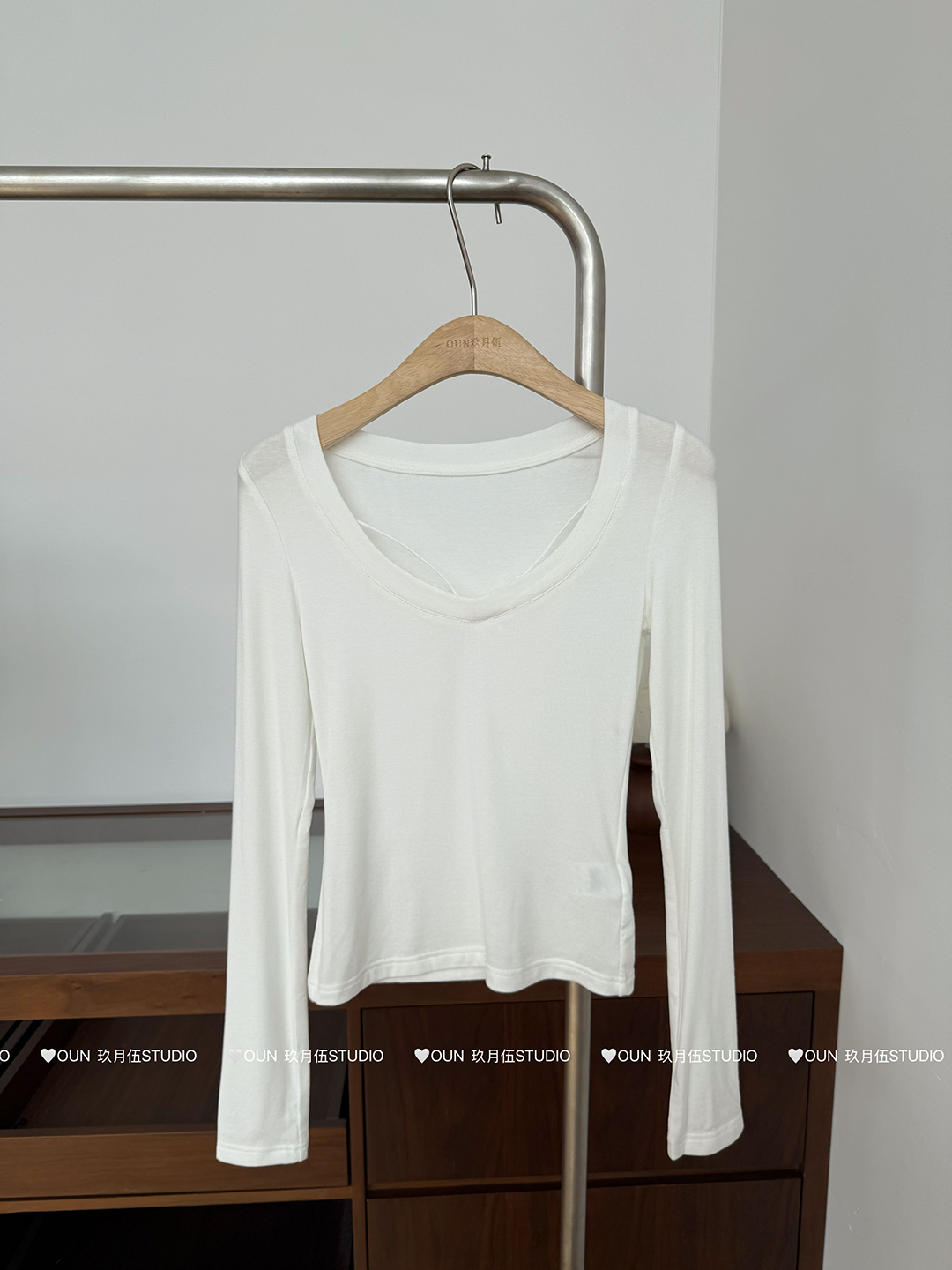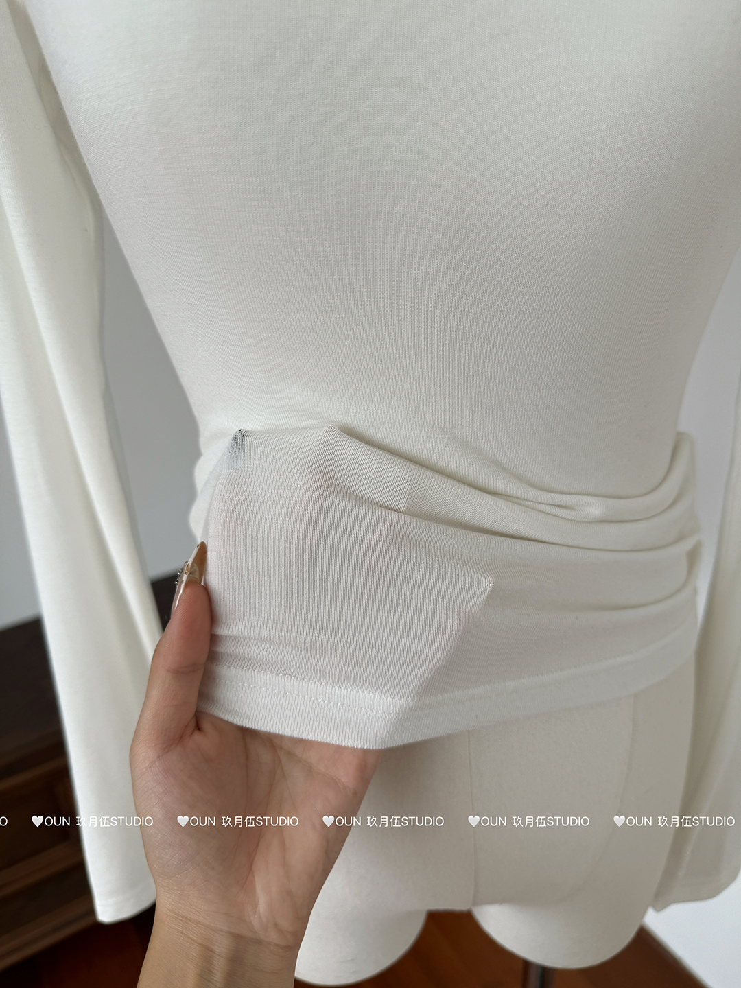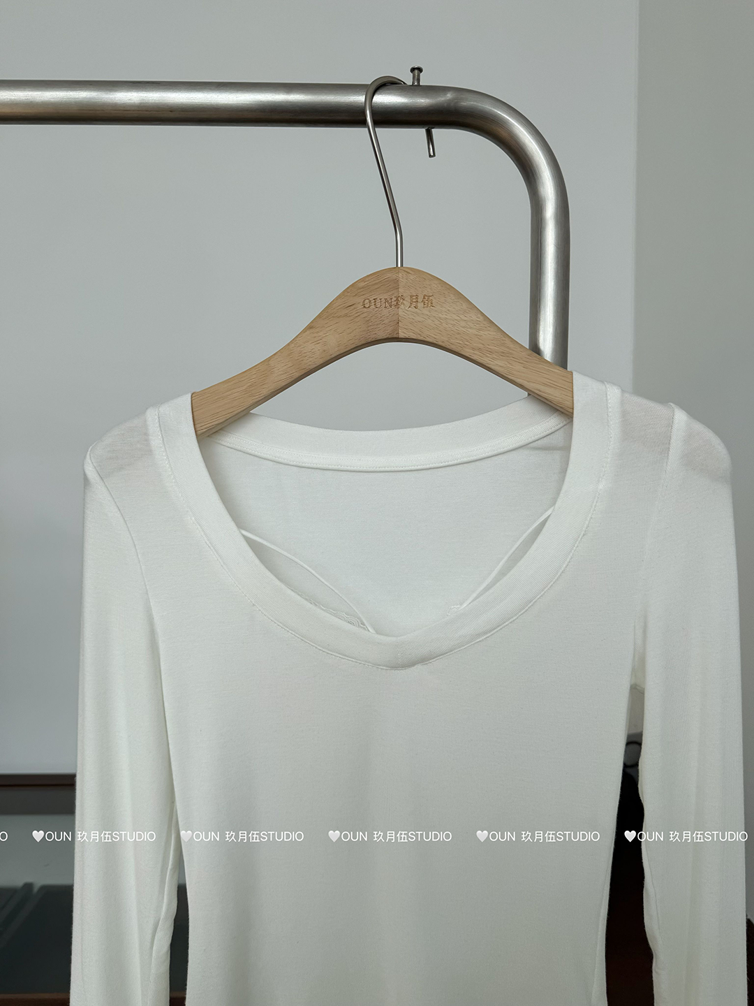 玖月伍 萊賽爾V領蕾絲花邊長袖修身打底衫百搭簡約外穿針織衫上衣