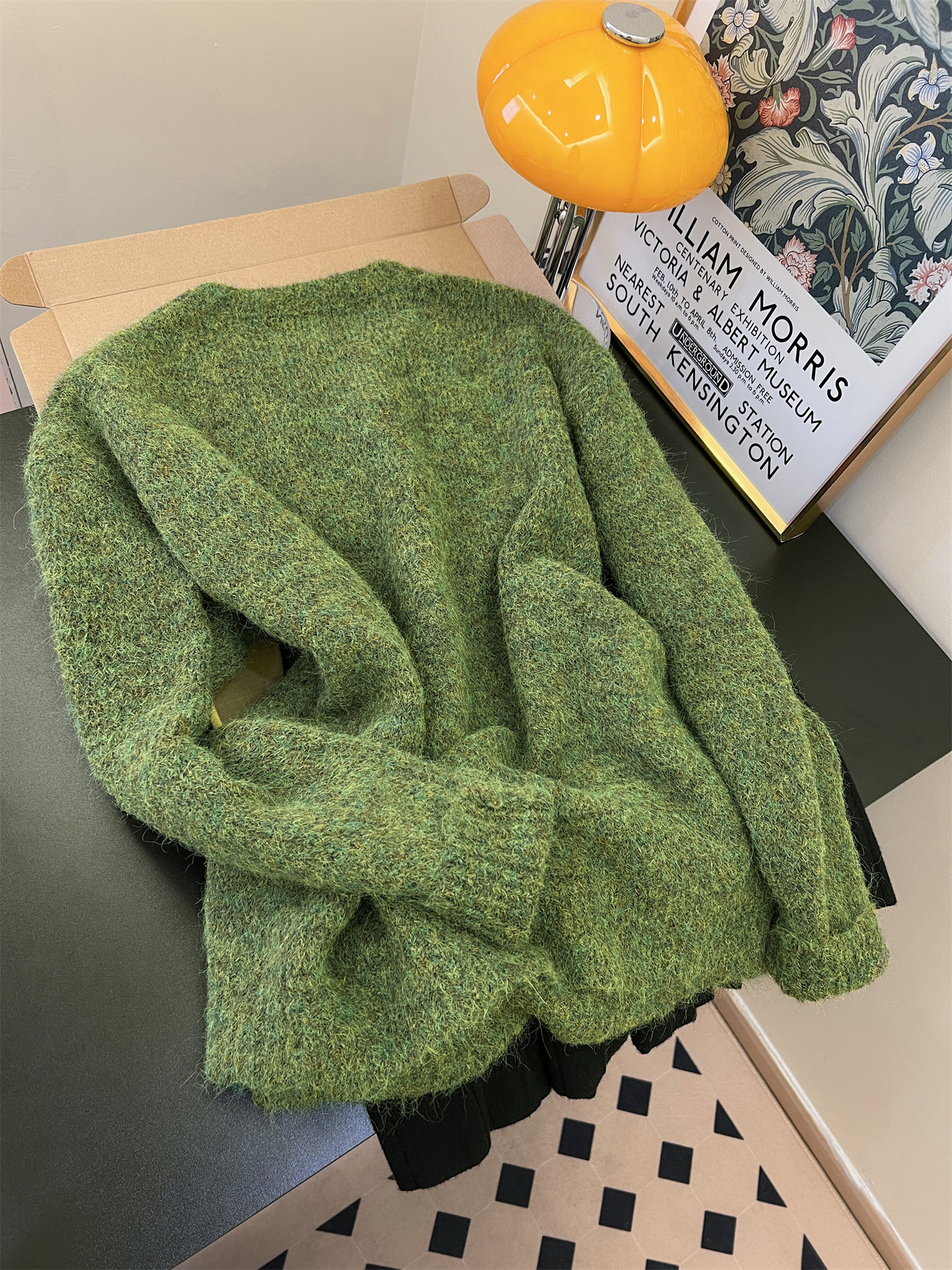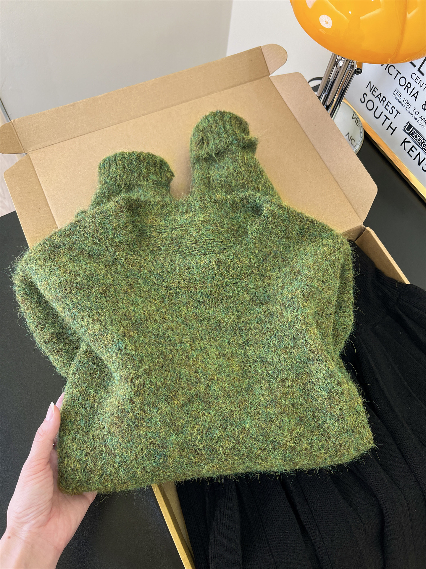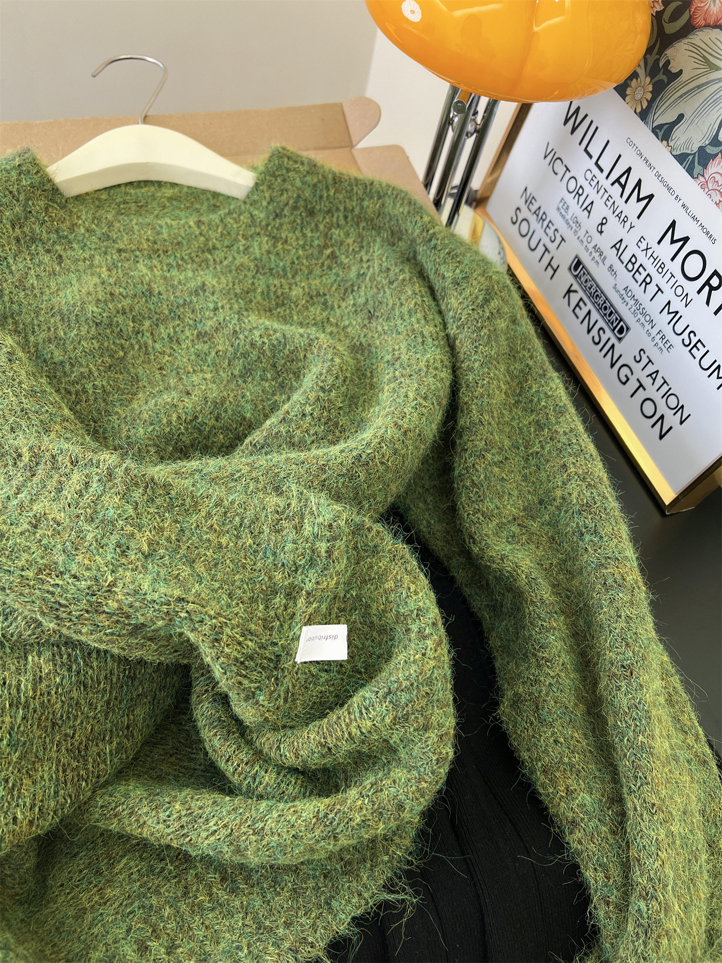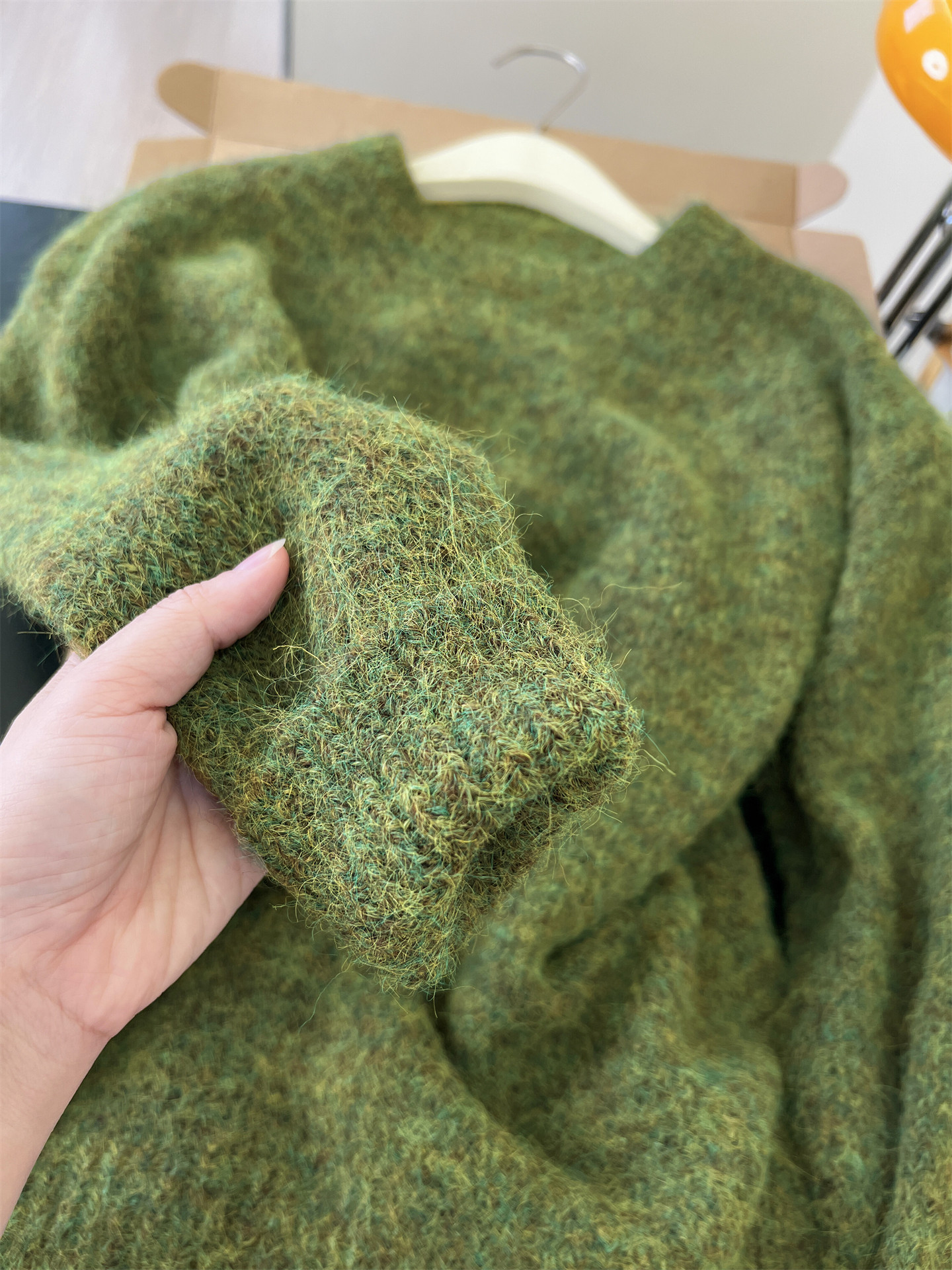 牛油果聖誕綠慵懶毛絨絨毛衣外套女秋冬加厚保暖針織衫巨好看上衣