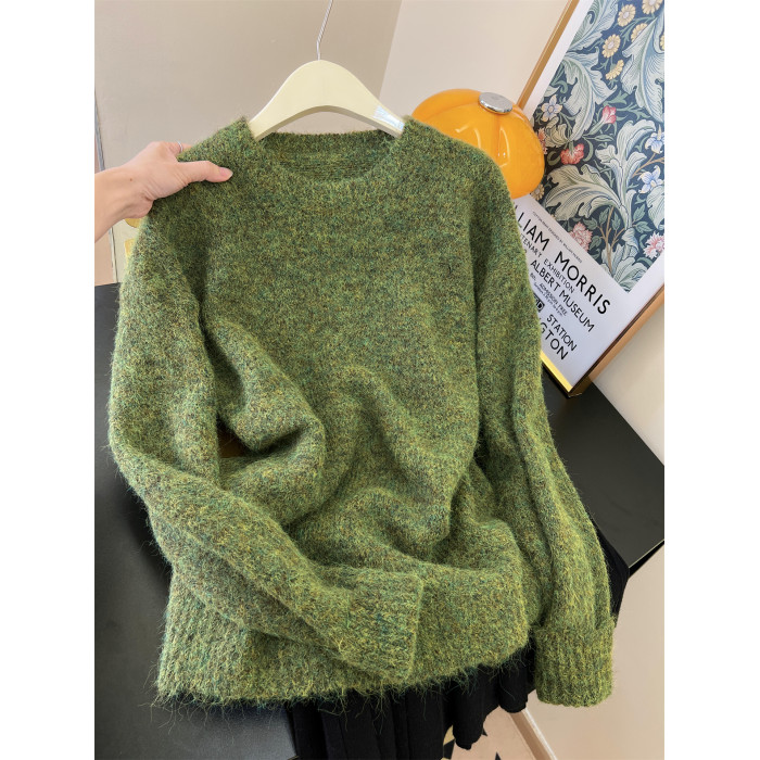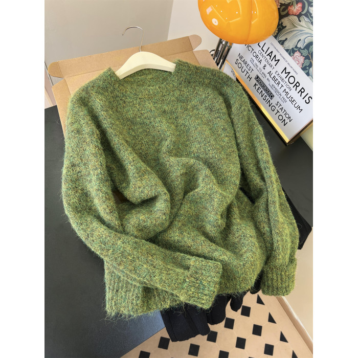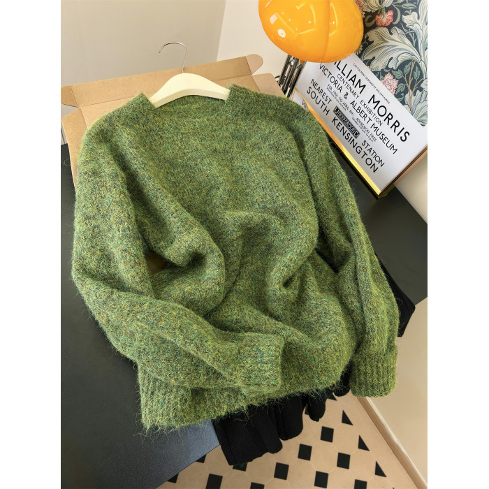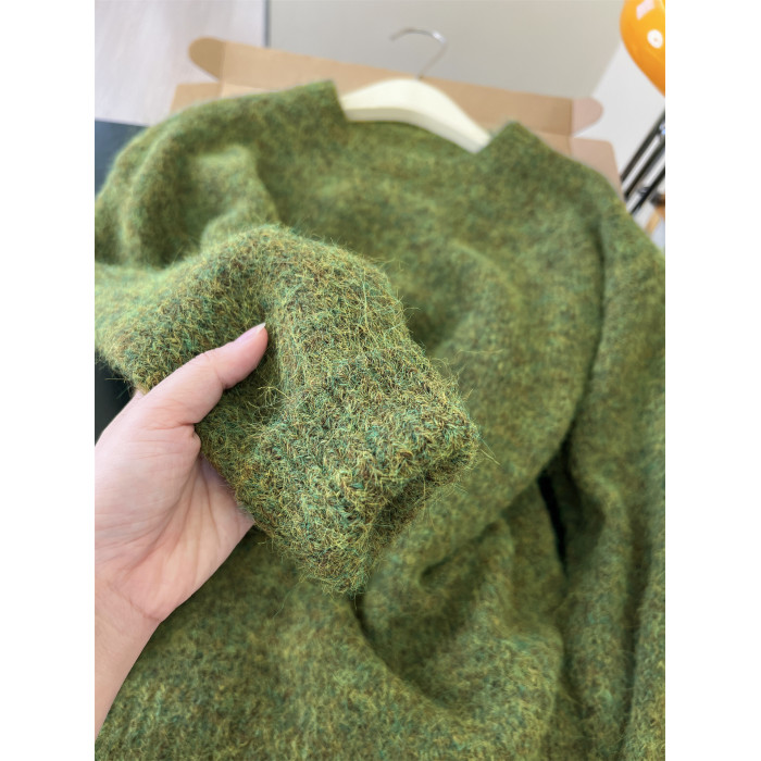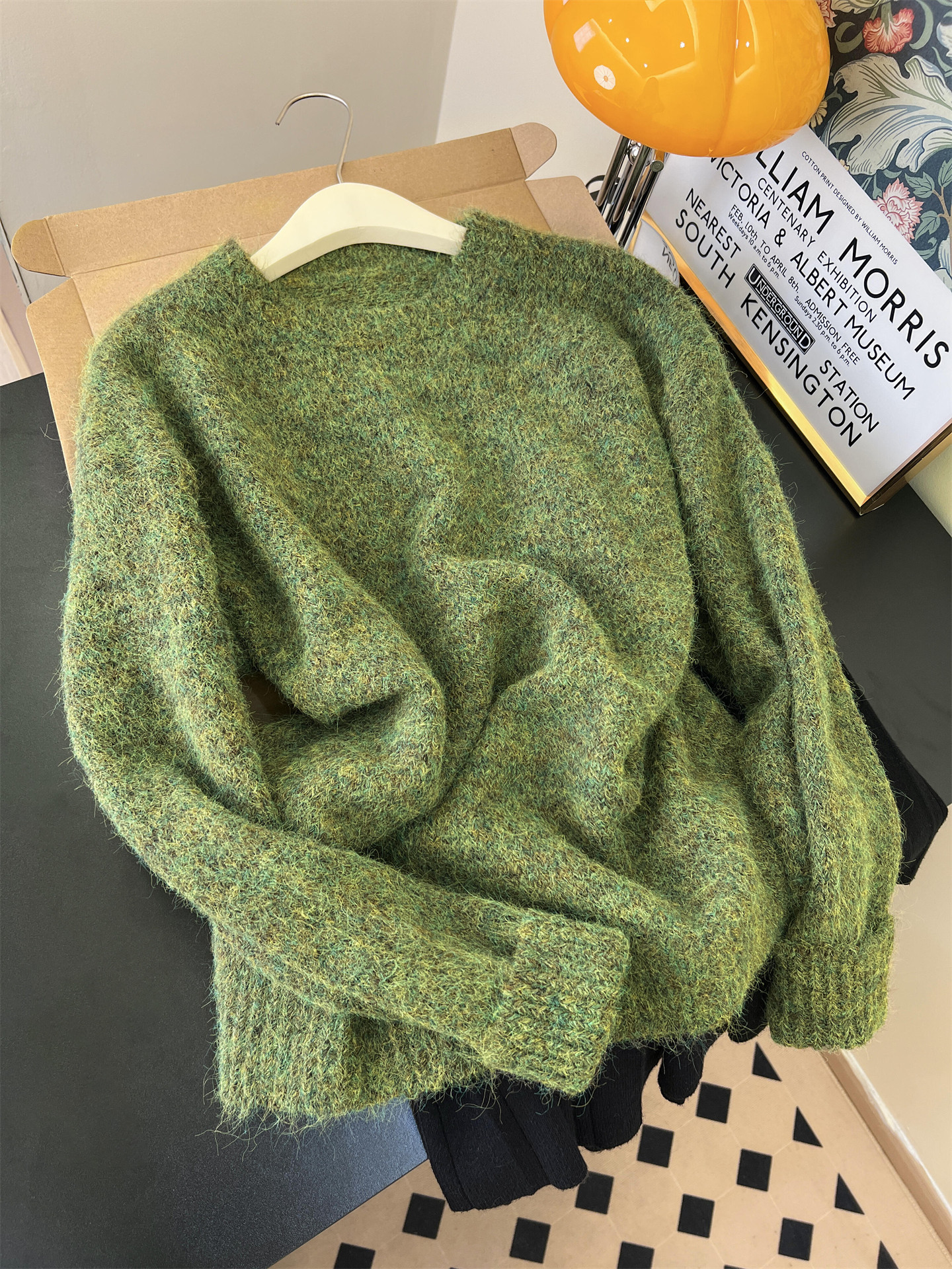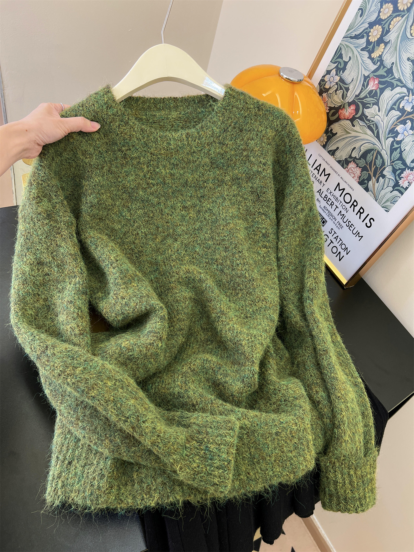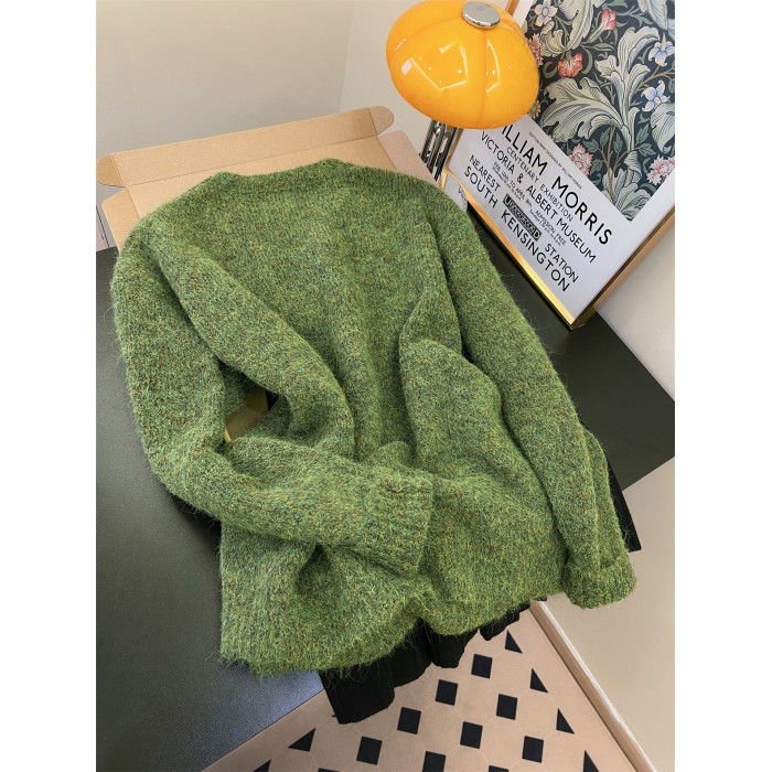 牛油果聖誕綠慵懶毛絨絨毛衣外套女秋冬加厚保暖針織衫巨好看上衣